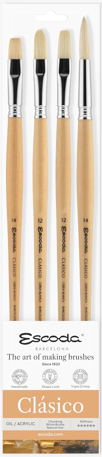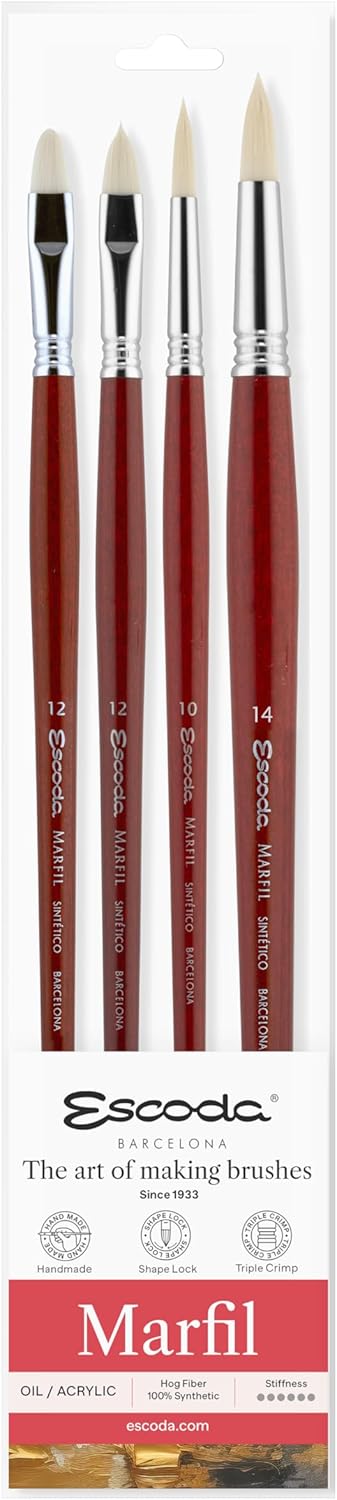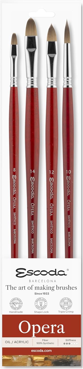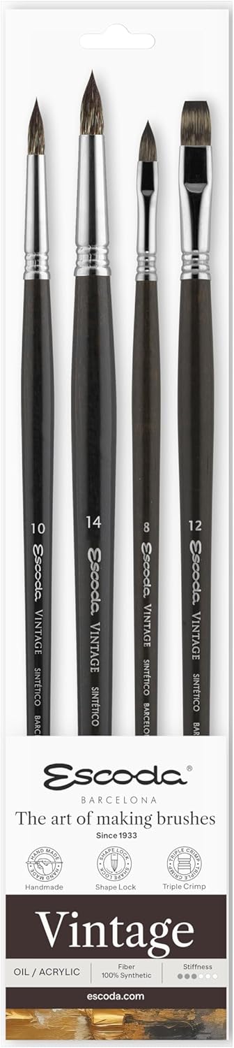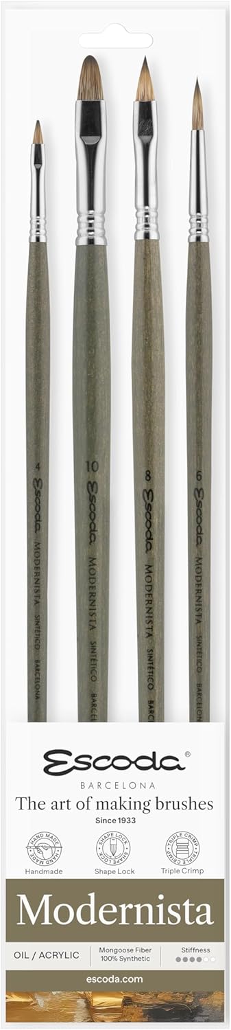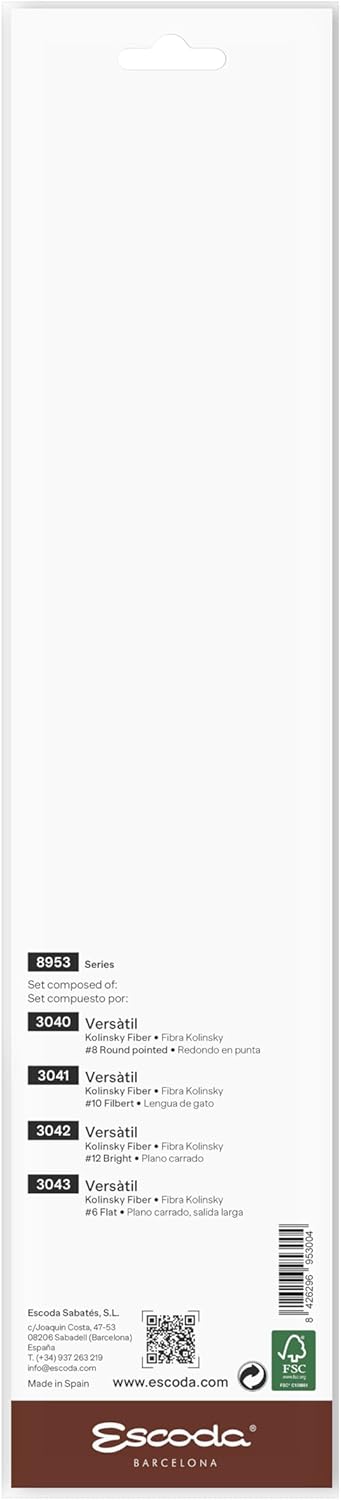 Escoda | Oil and Acrylic | Versàtil Series Set for Oil and Acrylic | size 6,8,10,12 | 4 brushes | synthetic Kolinsky | round pointed + filbert + bright + bright long length
