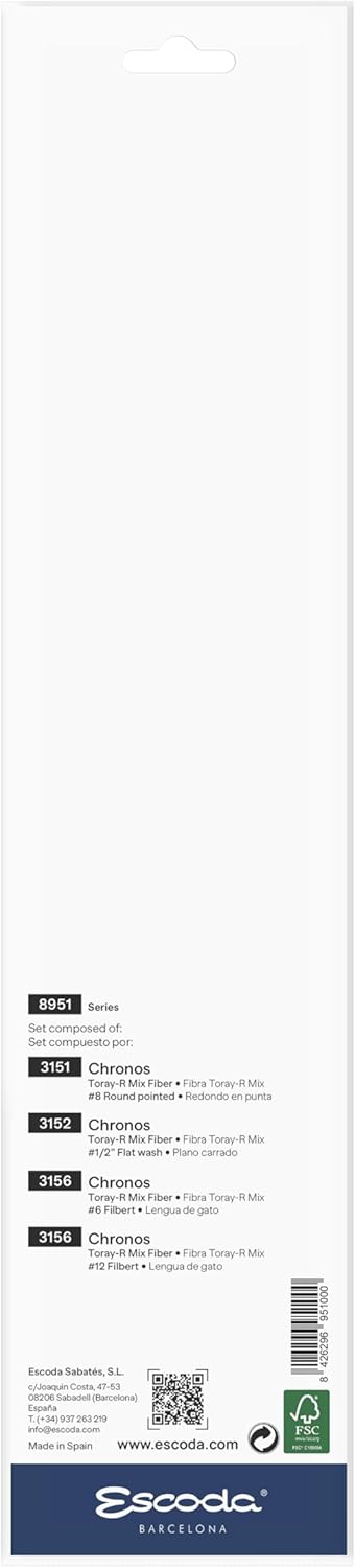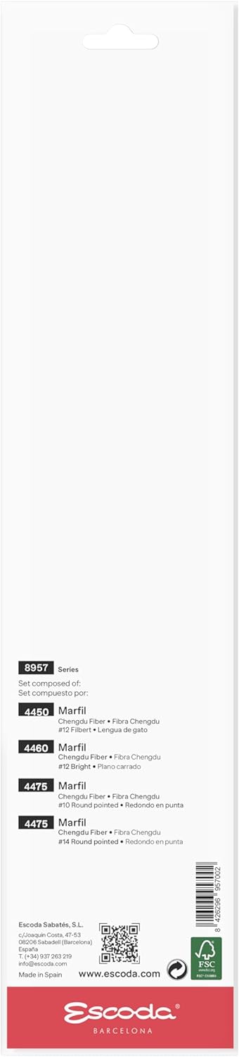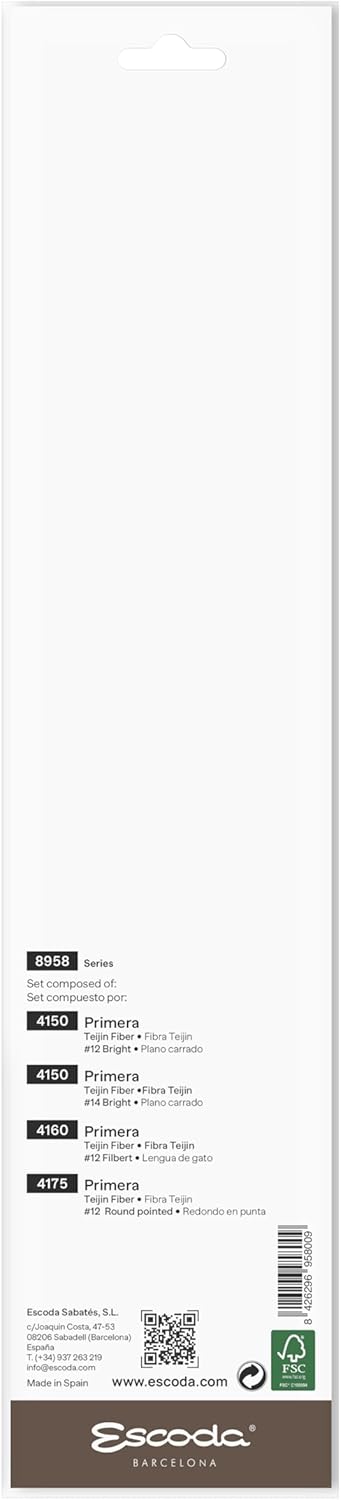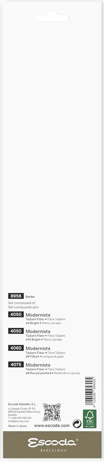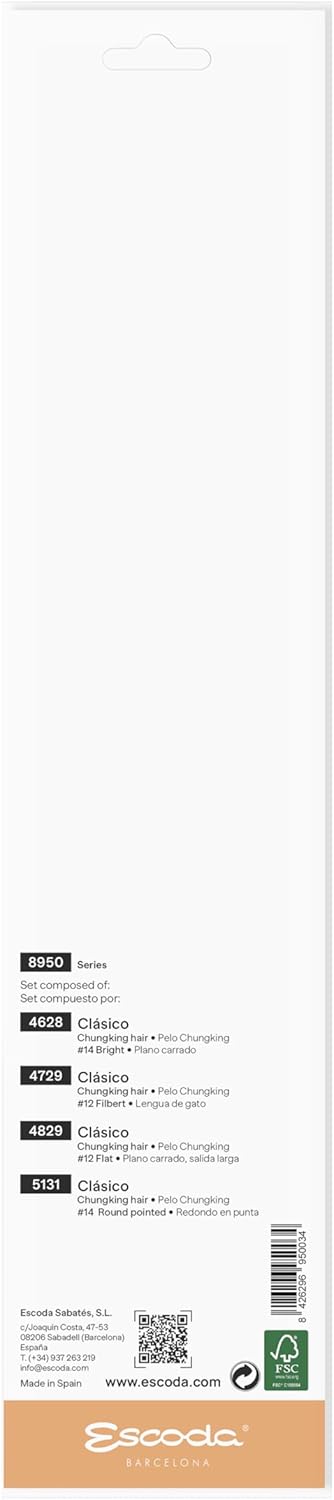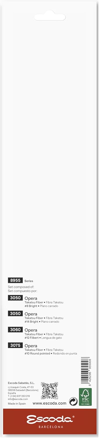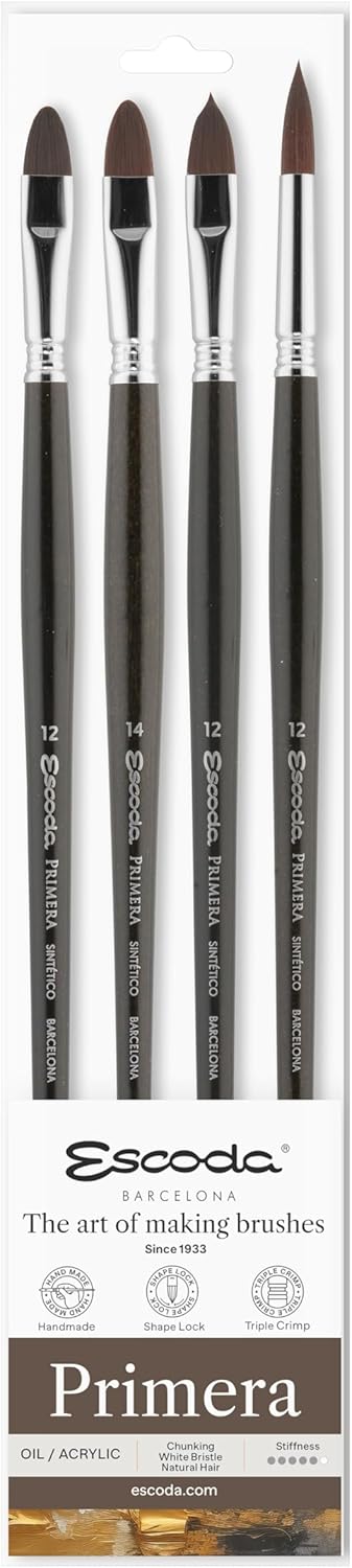 Escoda | Oil and Acrylic | Versàtil Series Set for Oil and Acrylic | size 6,8,10,12 | 4 brushes | synthetic Kolinsky | round pointed + filbert + bright + bright long length