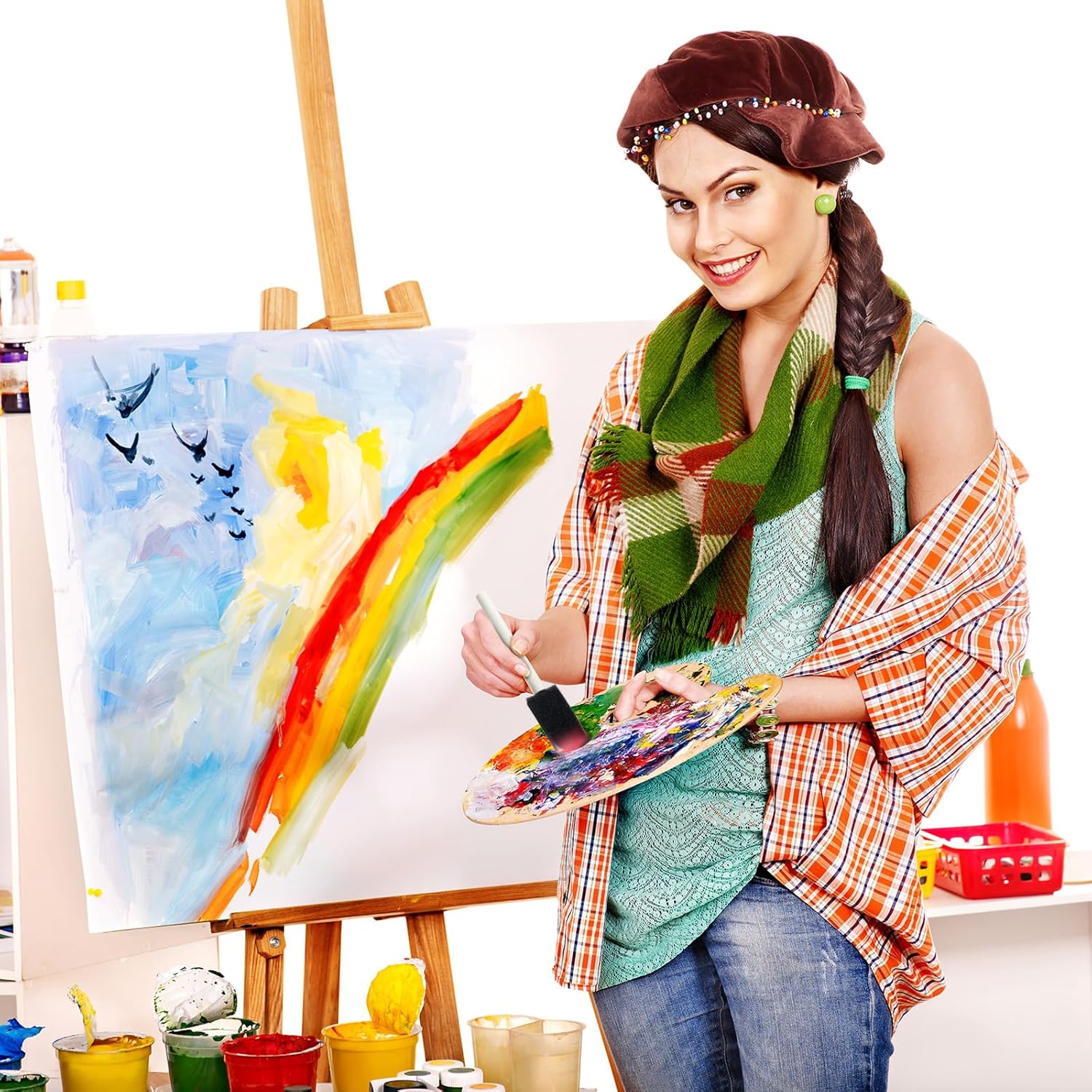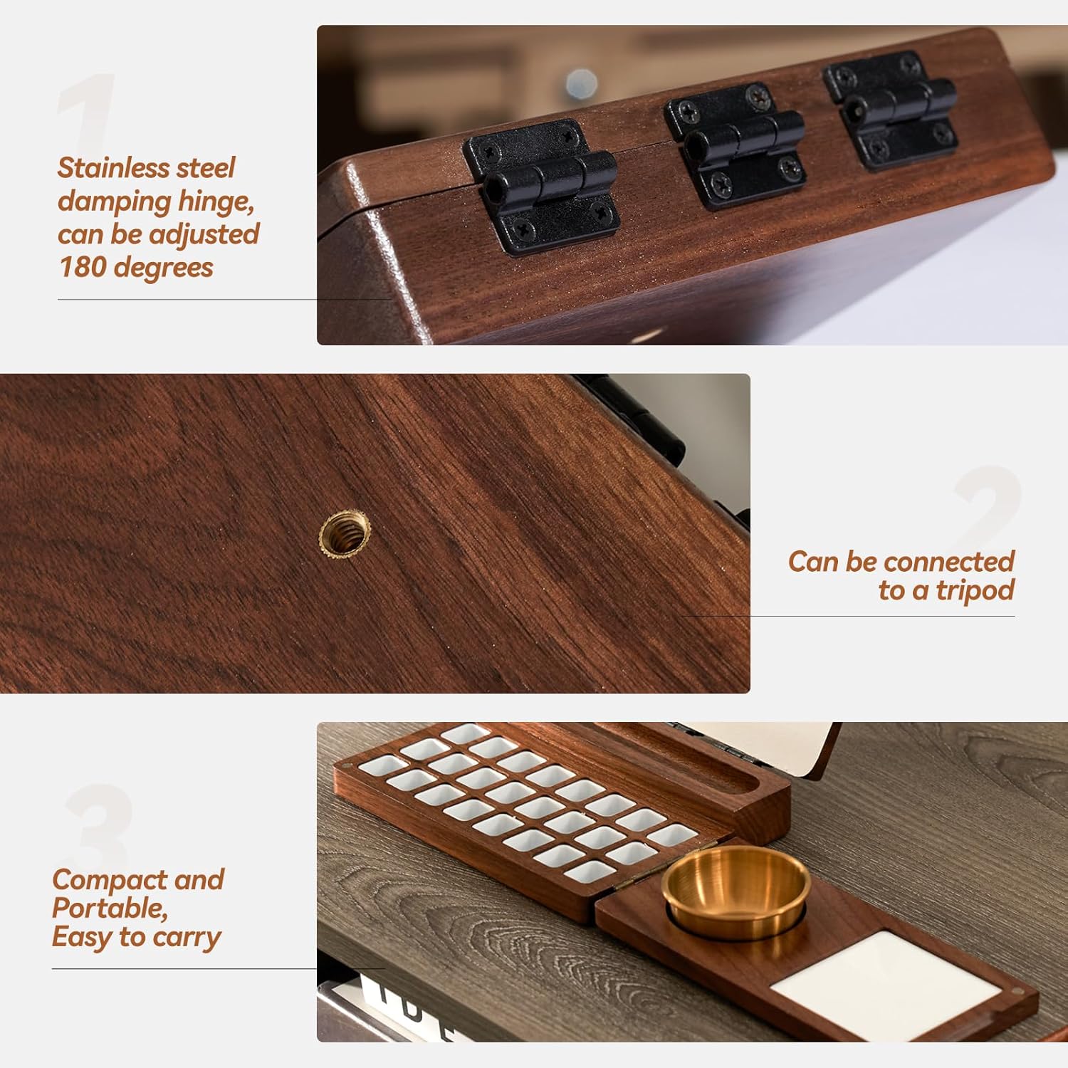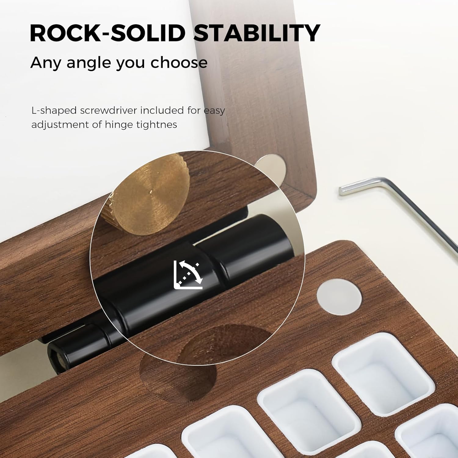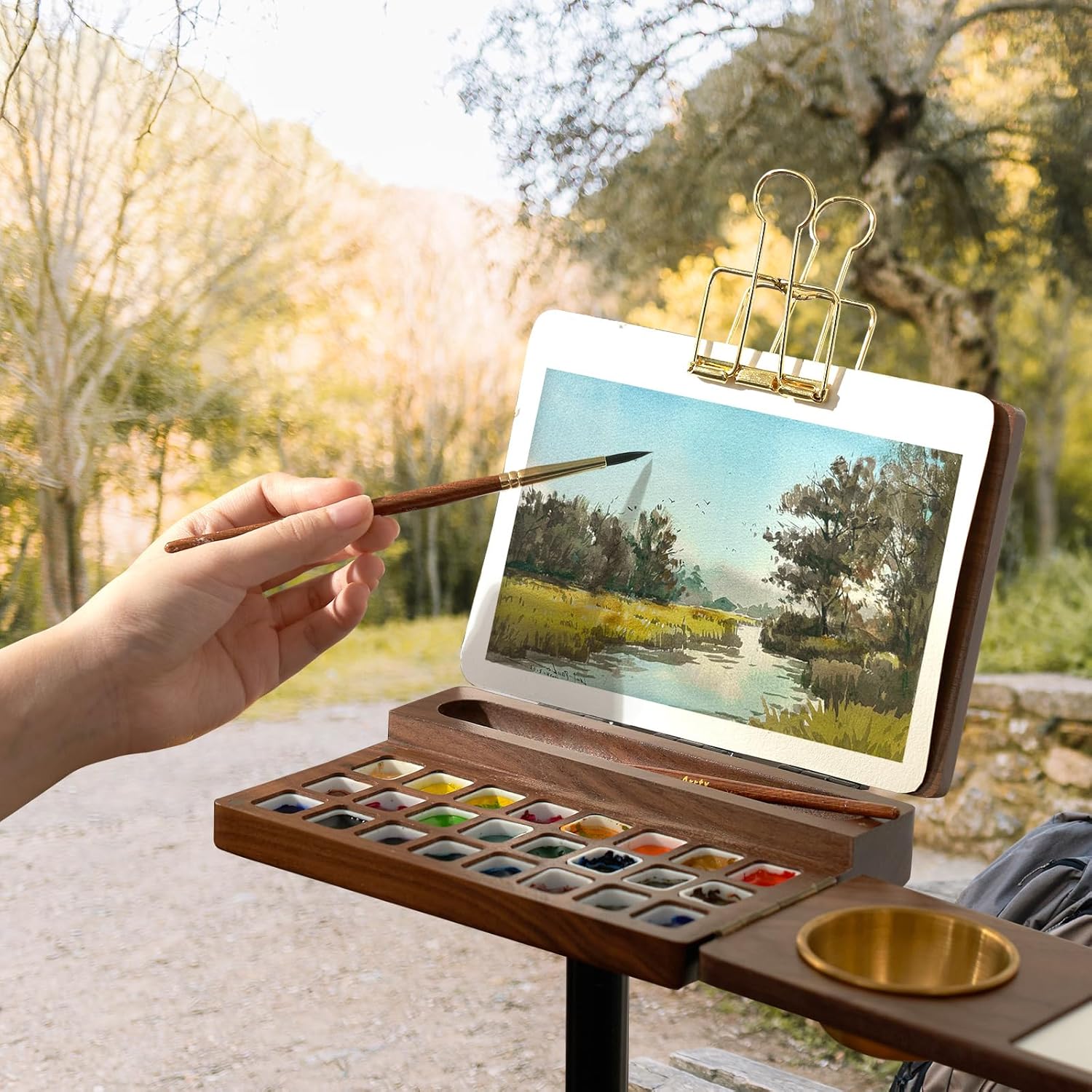 36-Grid Empty Watercolor Palette Box for Travel, Walnut Wood Artist Palette Tray Kit with Wash Jar, 9 Pen Holders, for Acrylic Gouache Water Color Painting