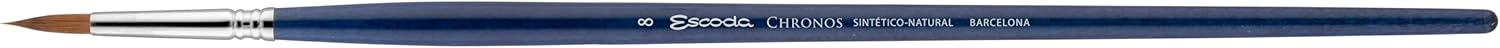 Escoda Optimo Series 1310 Artist Watercolor & Acrylic Short Handle Paint Brush, Pure Kolinsky, Liner, Size 8