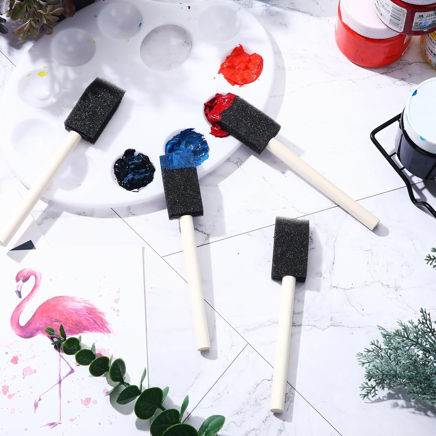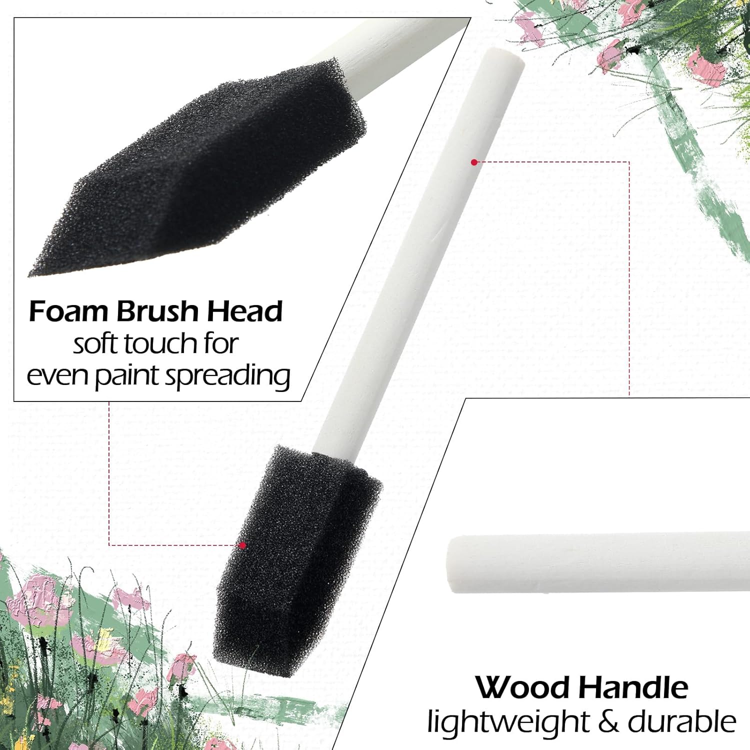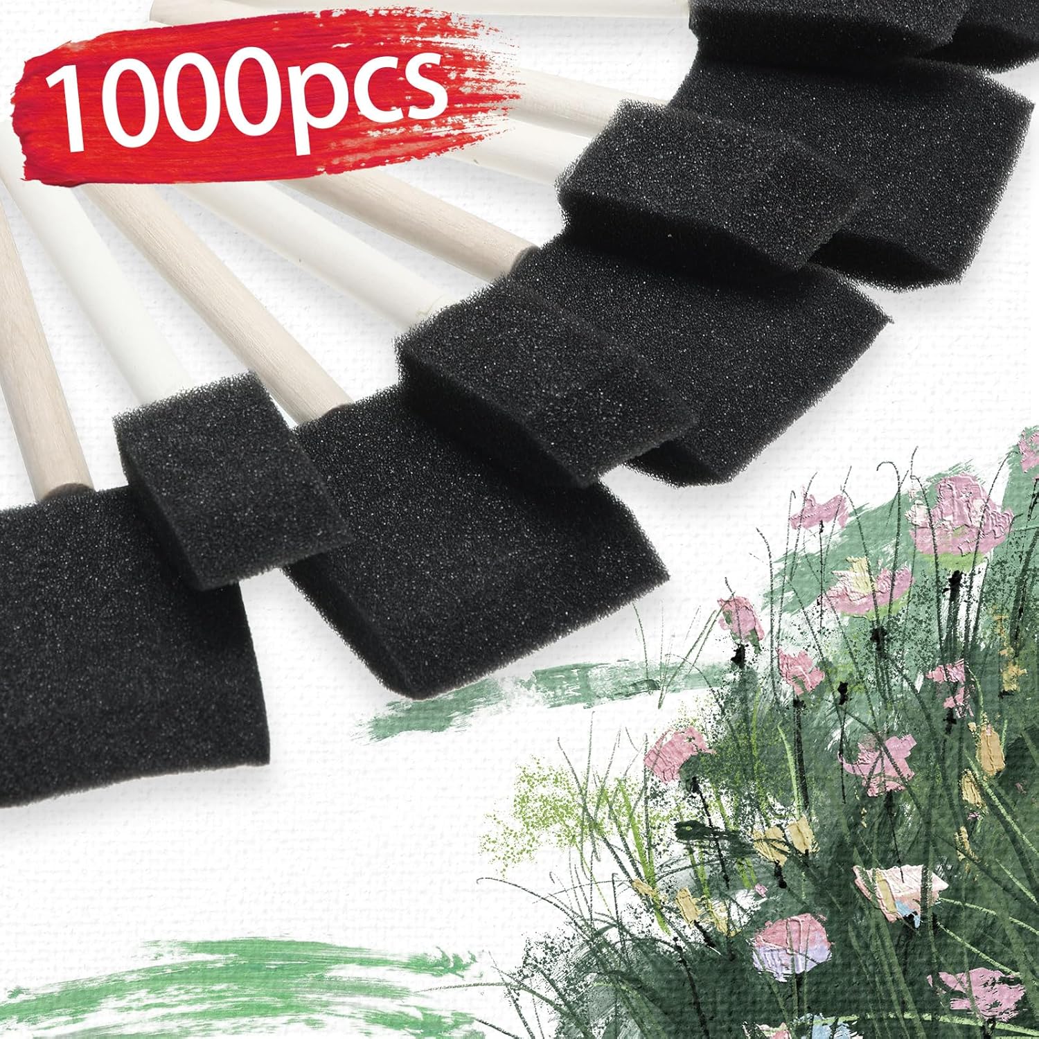 Leinuosen 1000 Pcs Black Foam Brush Bulk Sponge Paint Brush with Handle 1inch Wood Grip Foam Art Paintbrushes for Paint Crafts Art Acrylics Stains