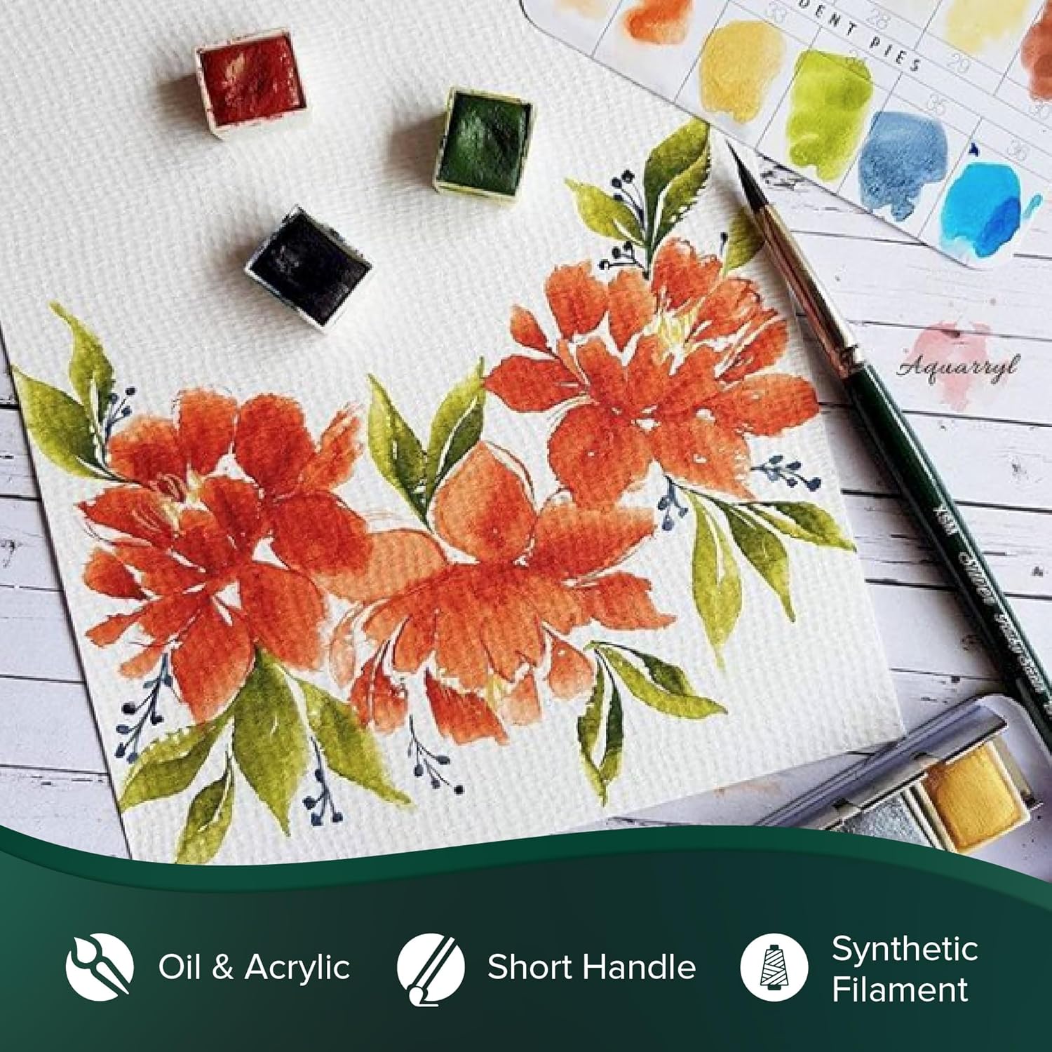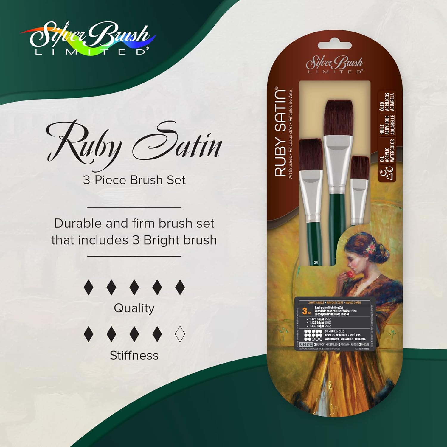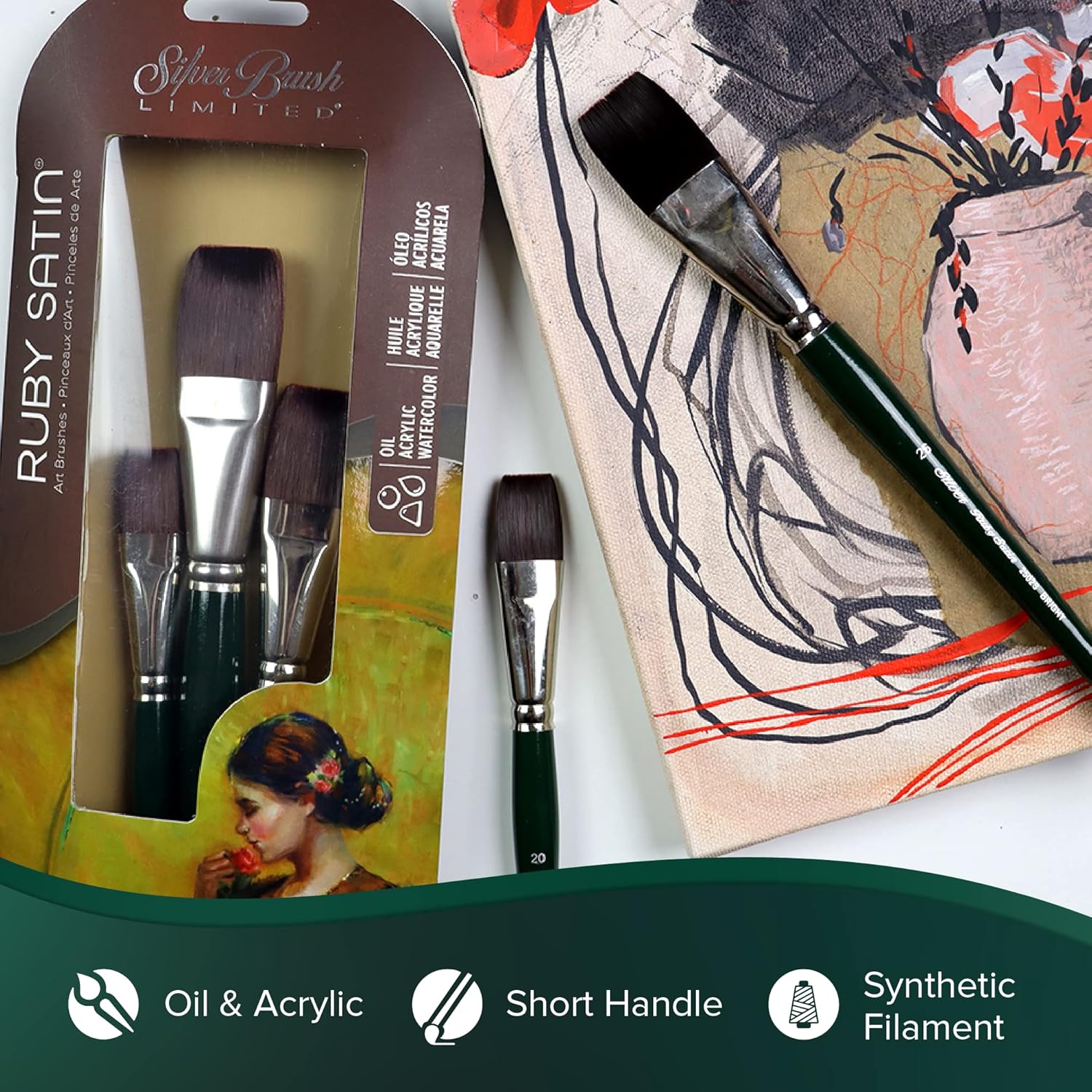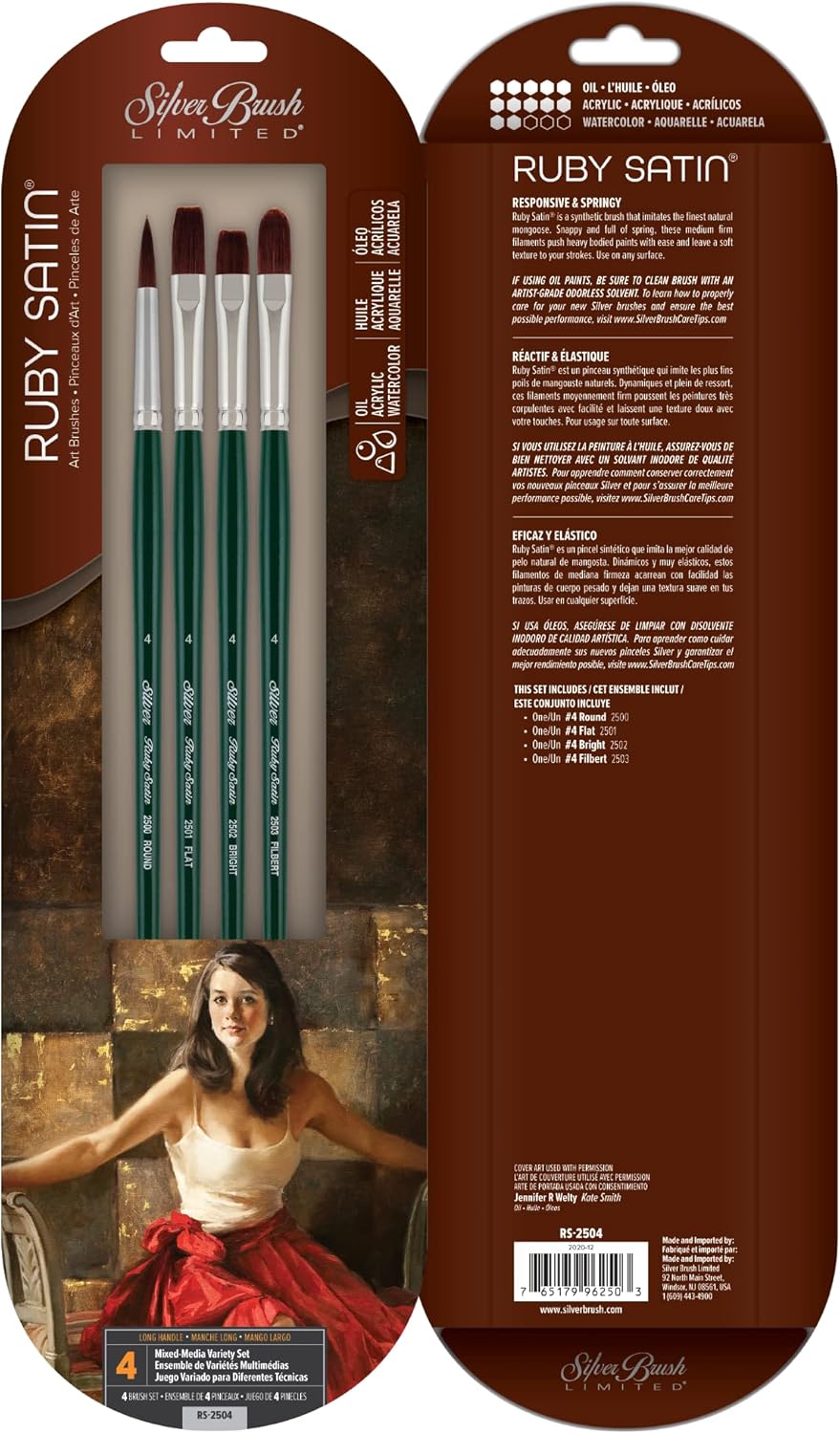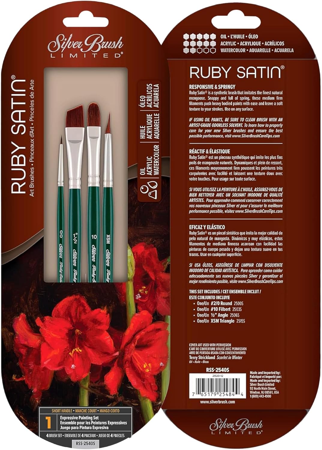 Silver Brush Limited RS-2596 Ruby Satin Size 6 Variety Set, 5pc Premium Long Handle Brushes with Stiff and Flexible Synthetic Bristles, Round, Flat, Bright, Filbert & Cat's Tongue for Oil and Acrylic