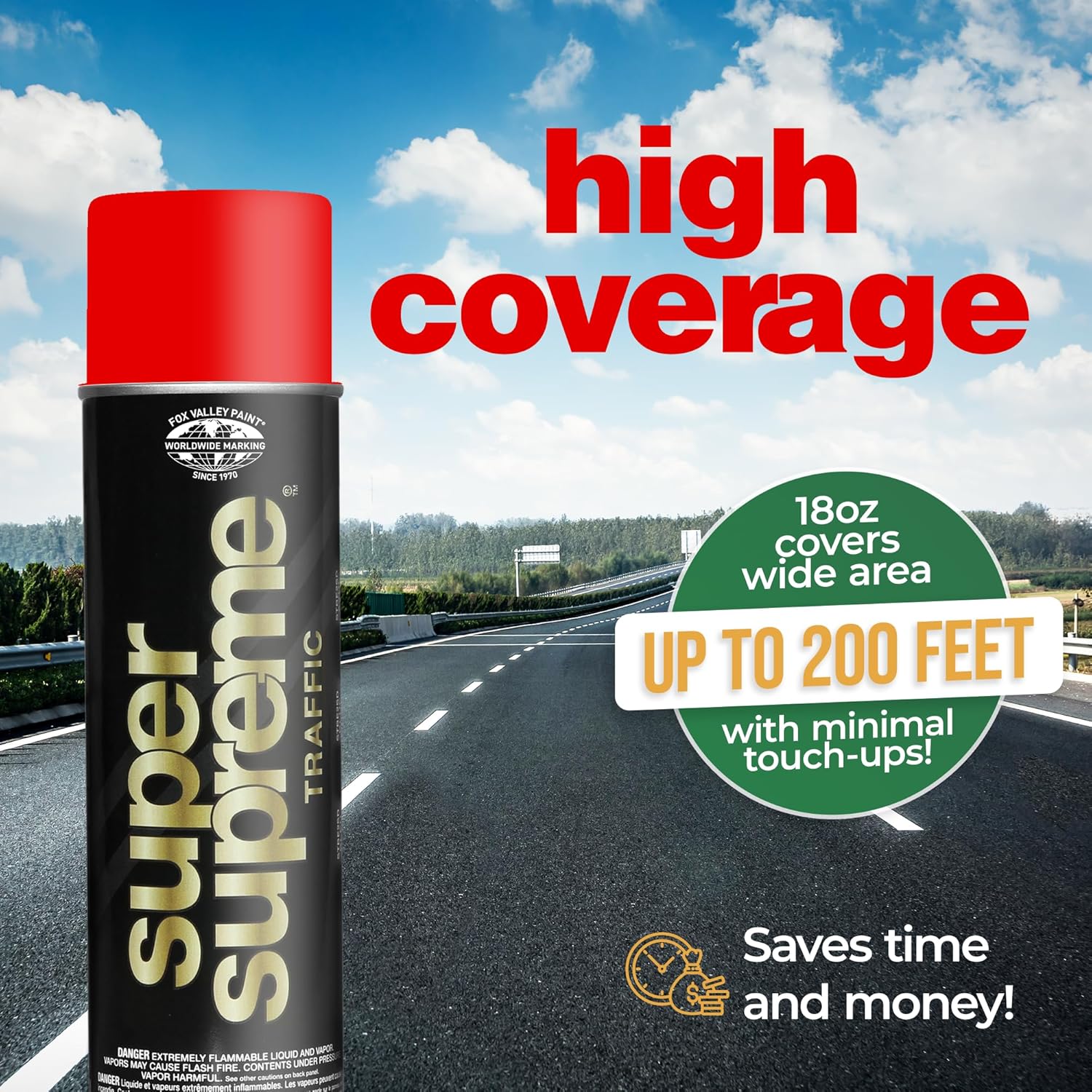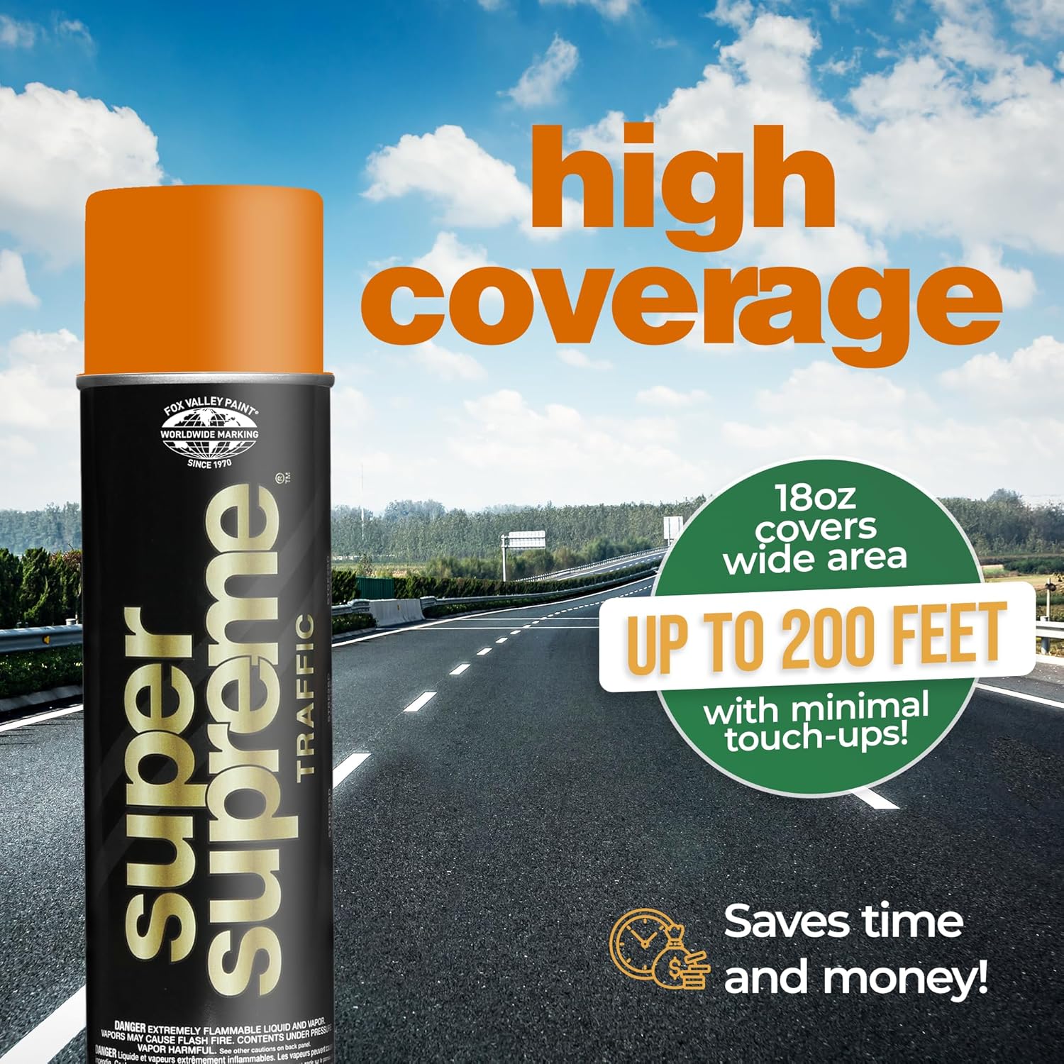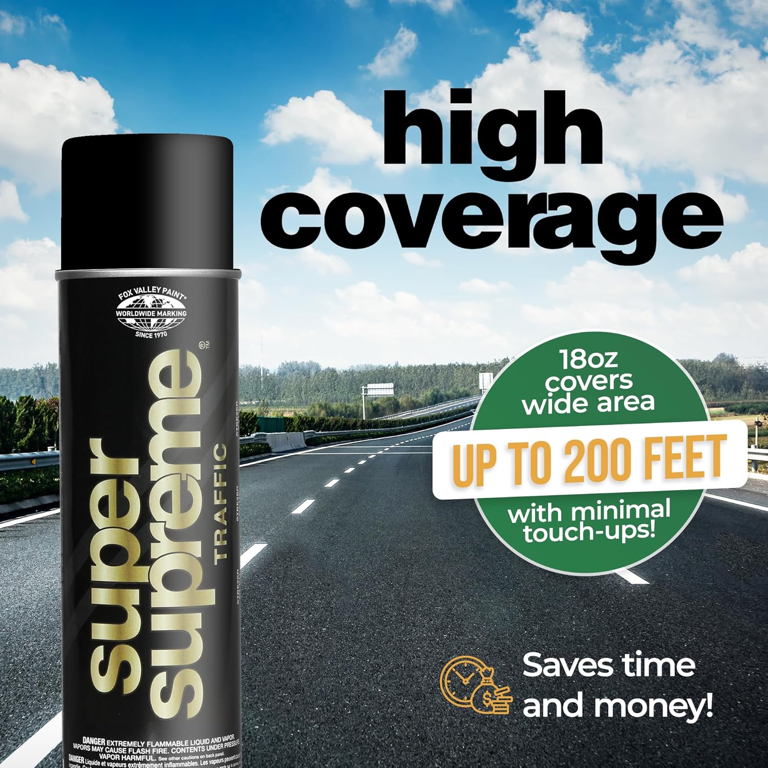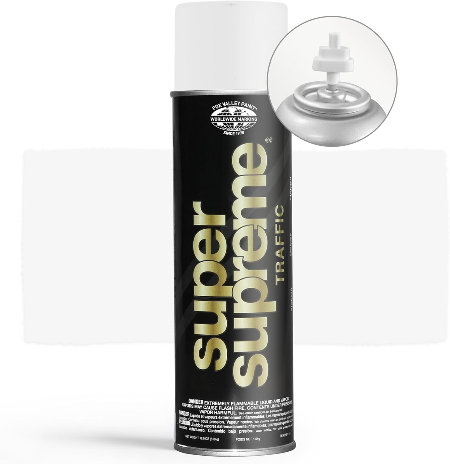 Fox Valley Super Supreme Traffic Marking Spray Paint – Fast-Drying, Long Lasting, Durable & Weather-Resistant - Marking Paint for Roads, Parking Lots, Sidewalks & Factory Floors, 18oz (6-Pack, White)