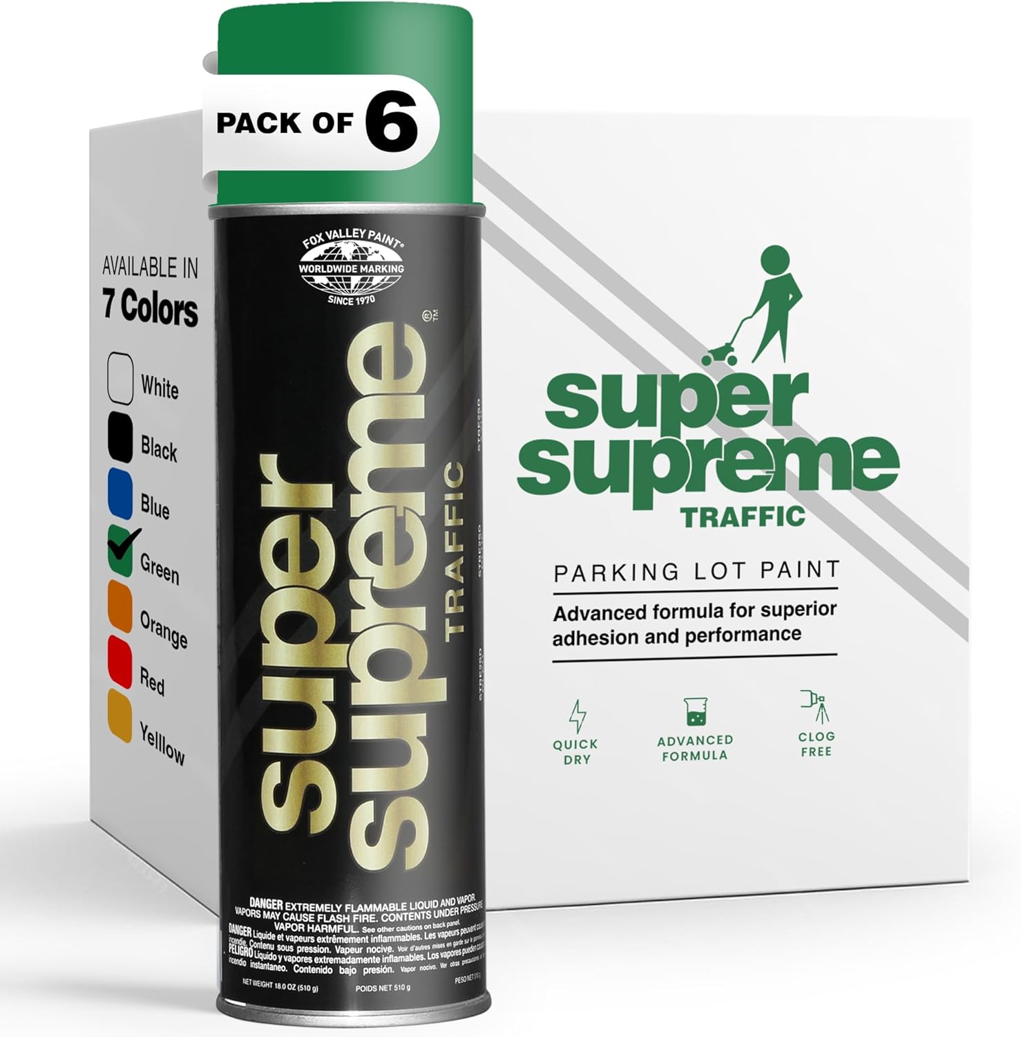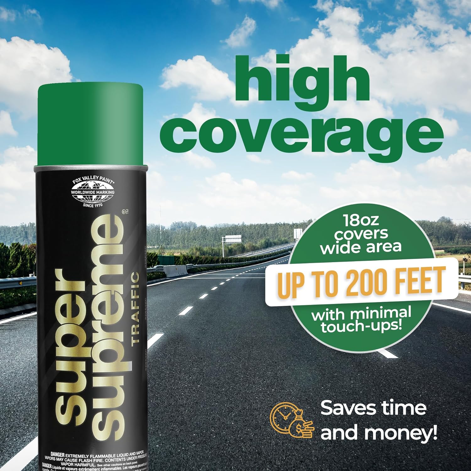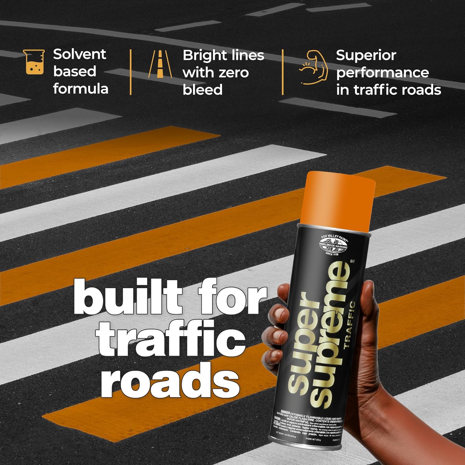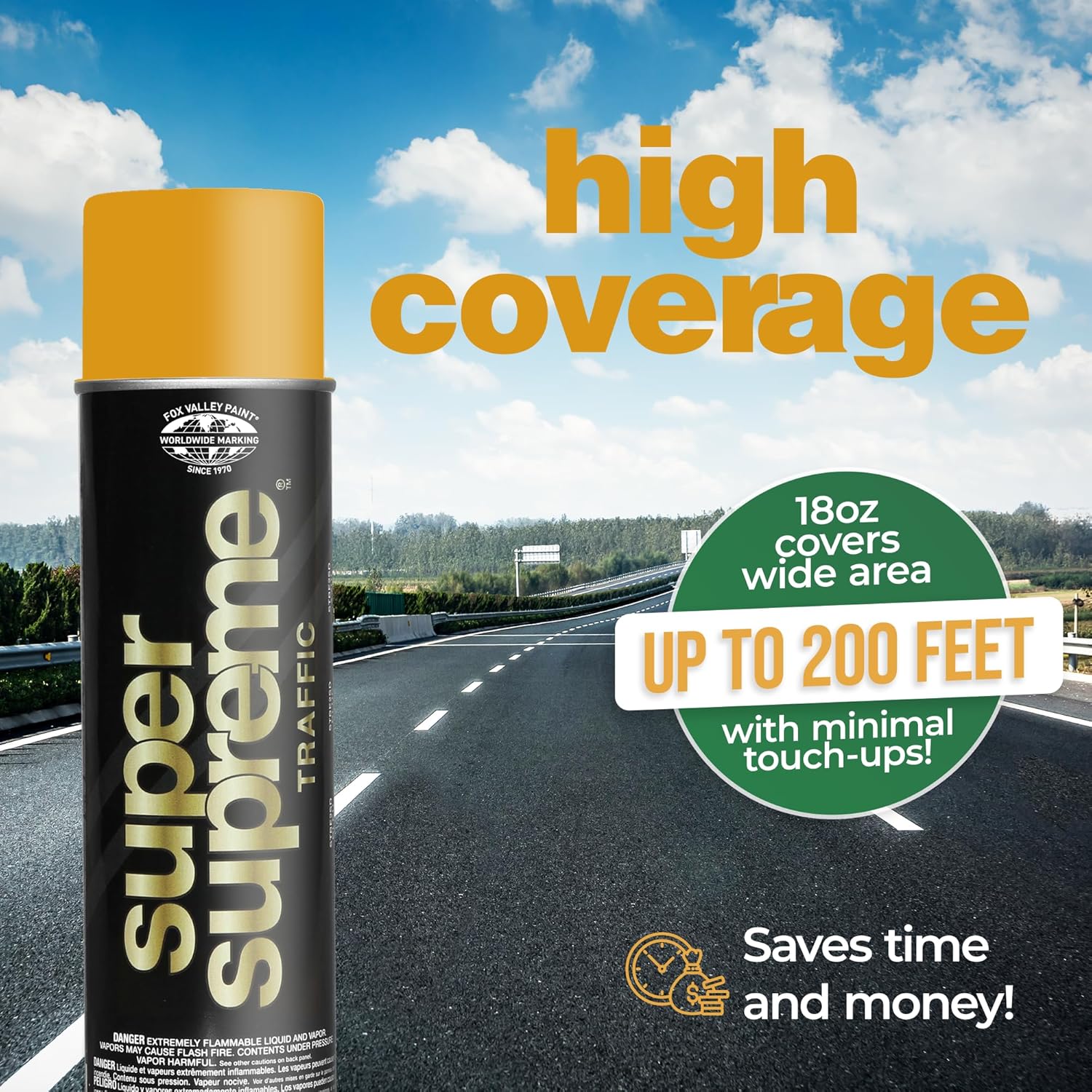 Fox Valley Super Supreme Traffic Marking Spray Paint – Fast-Drying, Long Lasting, Durable & Weather-Resistant - Marking Paint for Roads, Parking Lots, Sidewalks & Factory Floors, 18oz (6-Pack, White)
