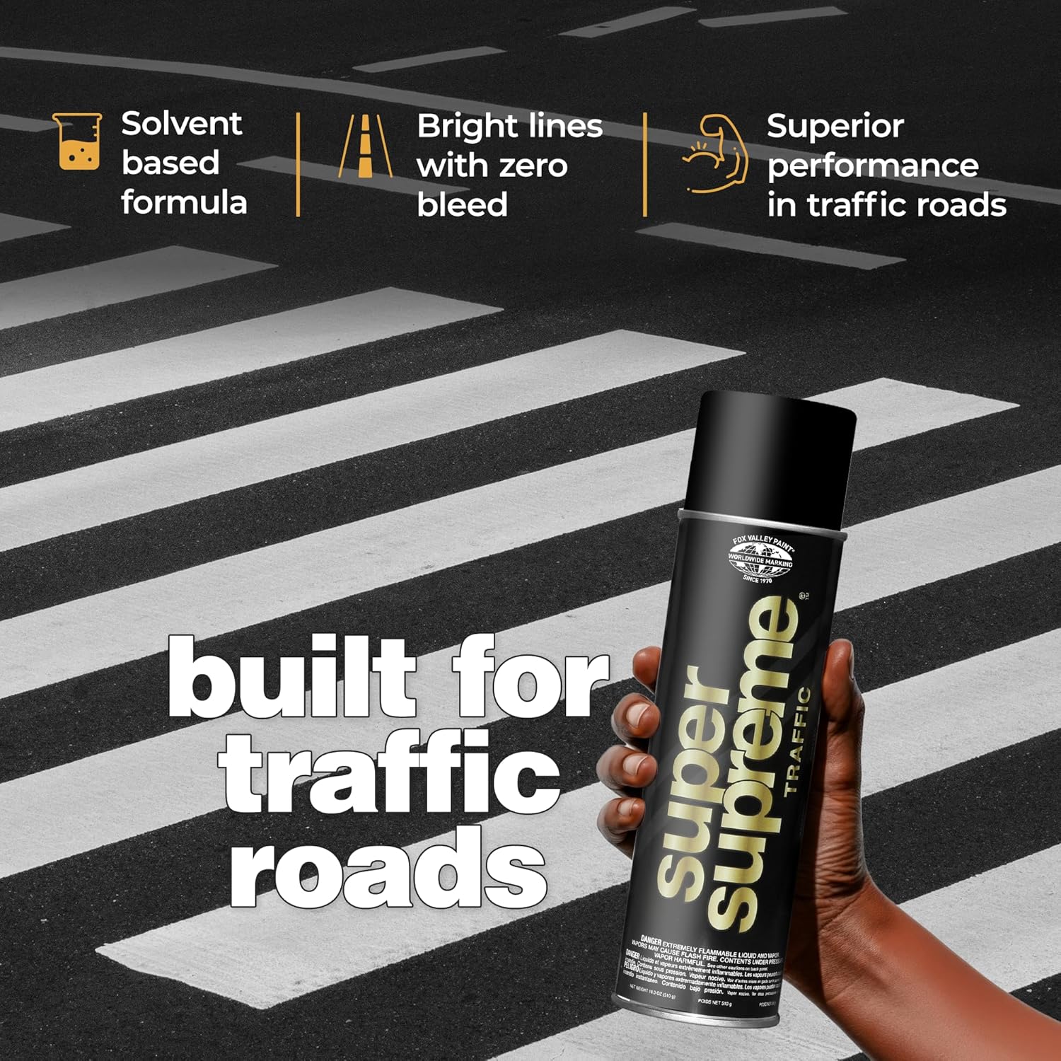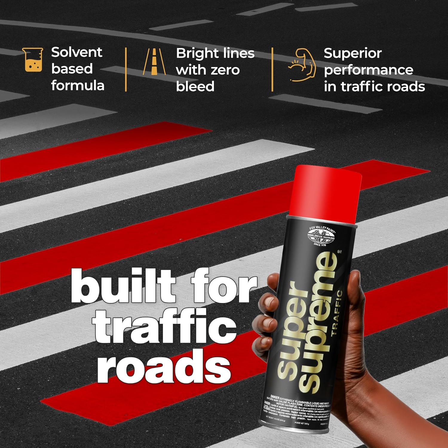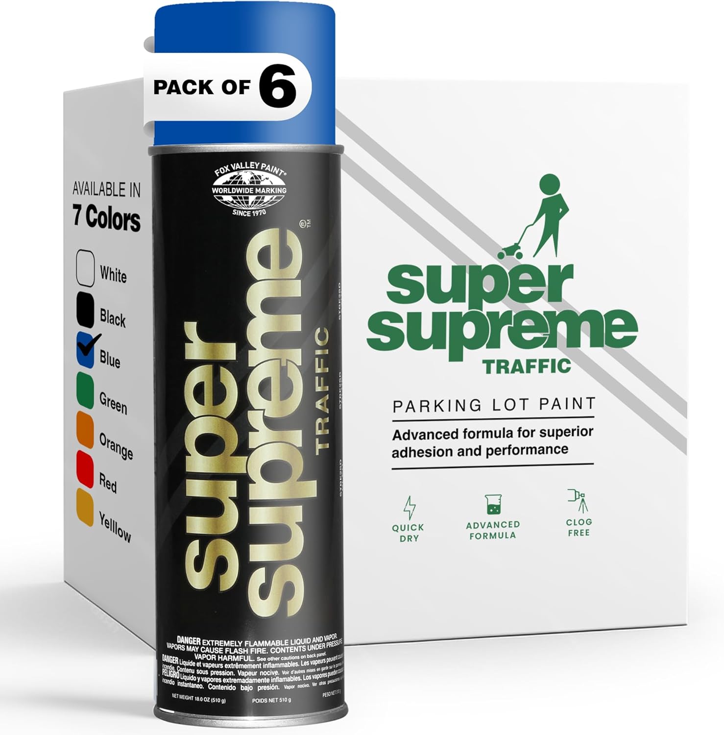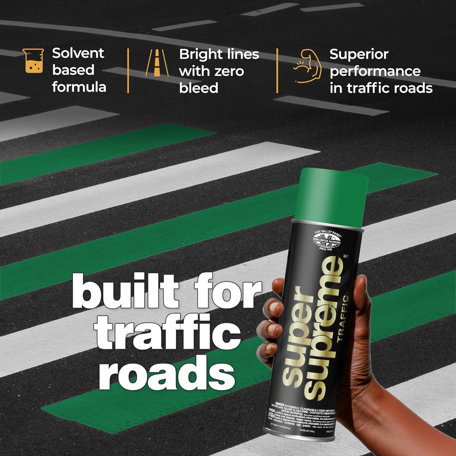 Fox Valley Super Supreme Traffic Marking Spray Paint – Fast-Drying, Long Lasting, Durable & Weather-Resistant - Marking Paint for Roads, Parking Lots, Sidewalks & Factory Floors, 18oz (6-Pack, White)