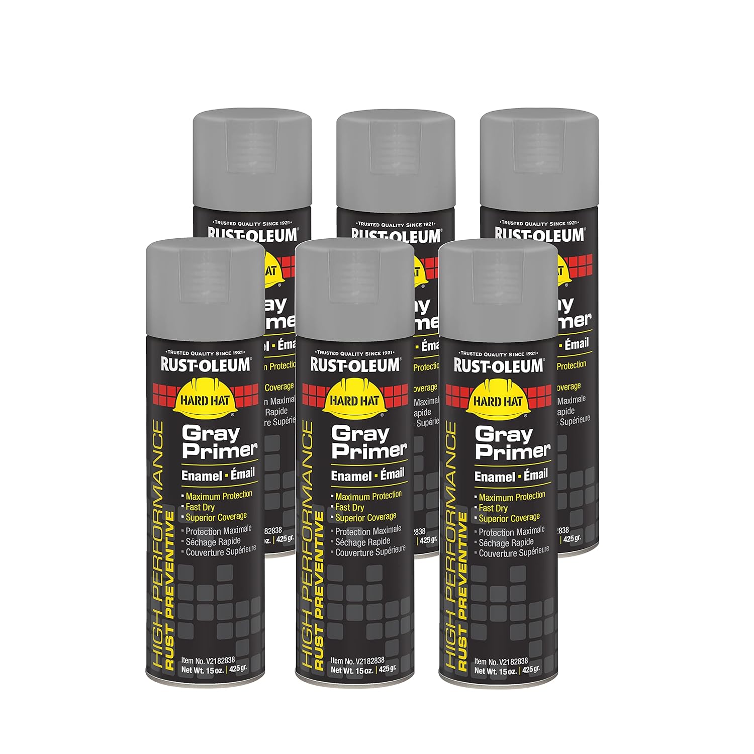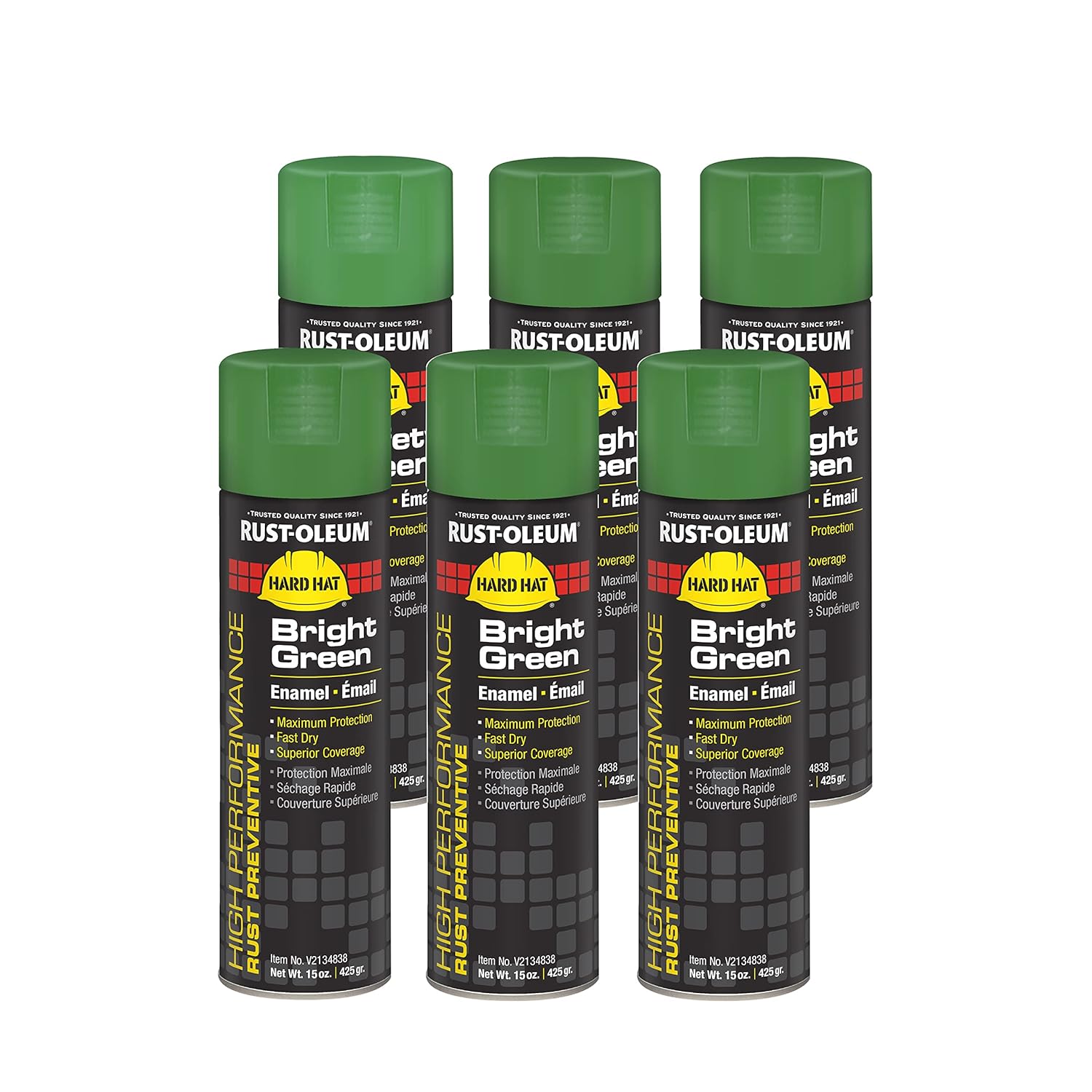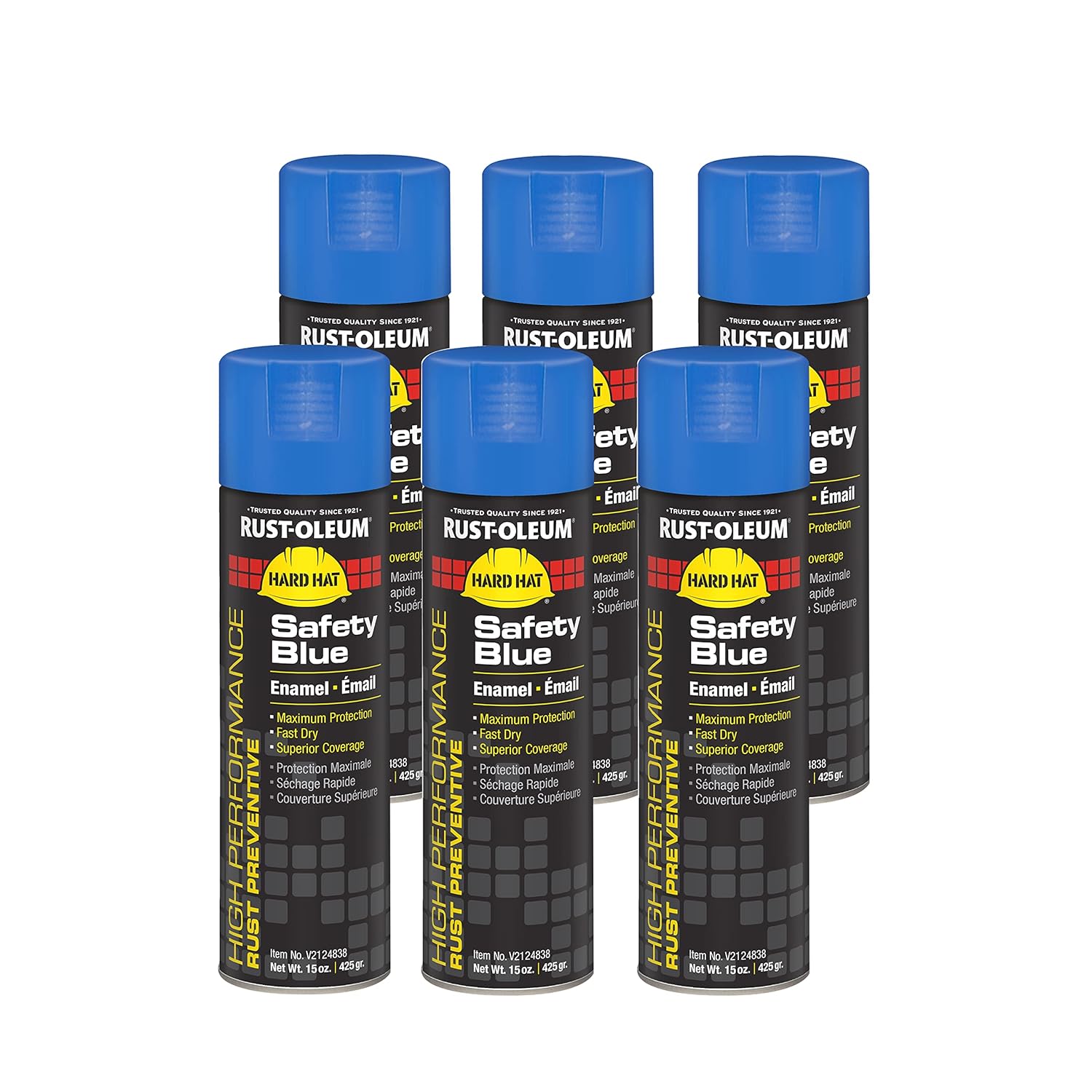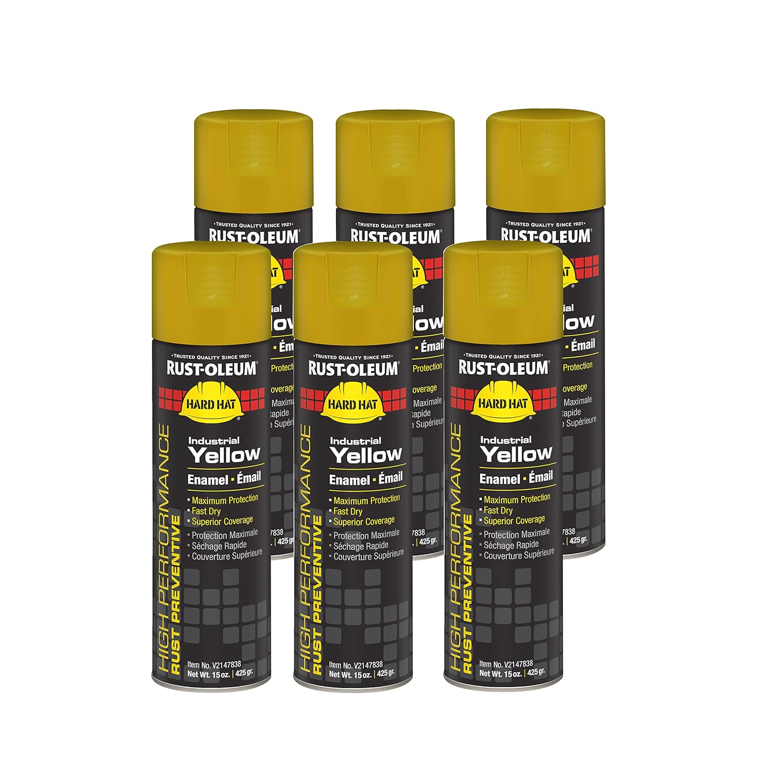 Rust-Oleum V2143838 High Performance V2100 System Rust Preventive Enamel Spray Paint, 20 fl. oz. container, 15 oz. fill,, Safety Yellow, 6-Pack