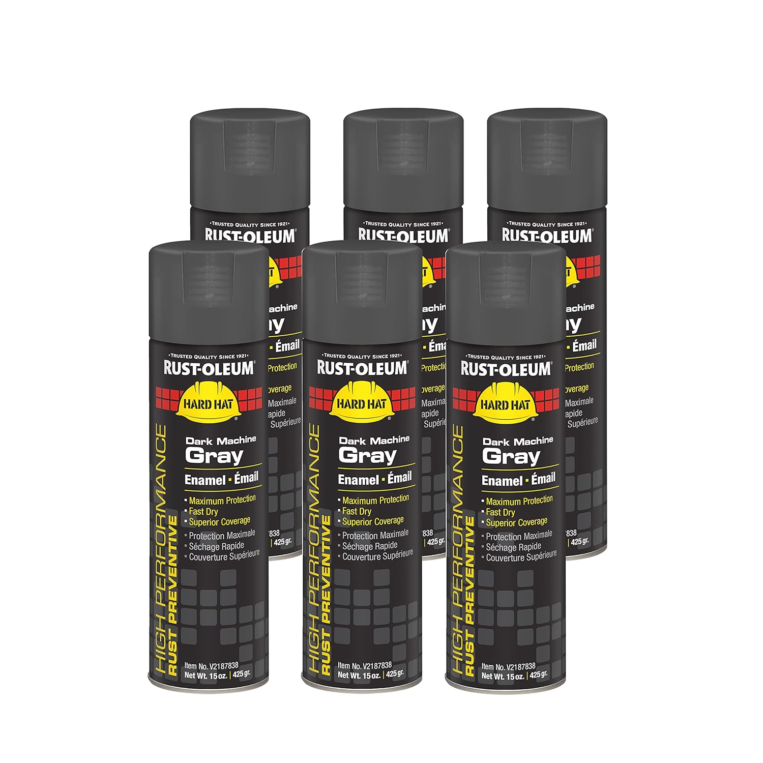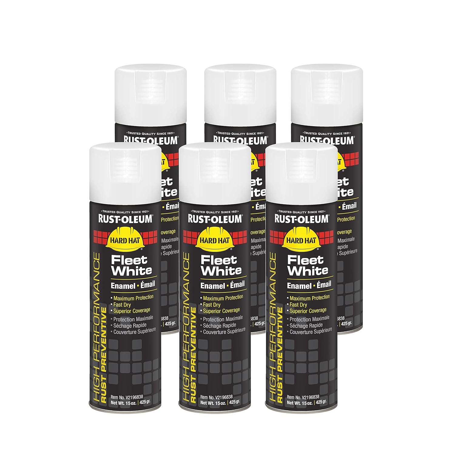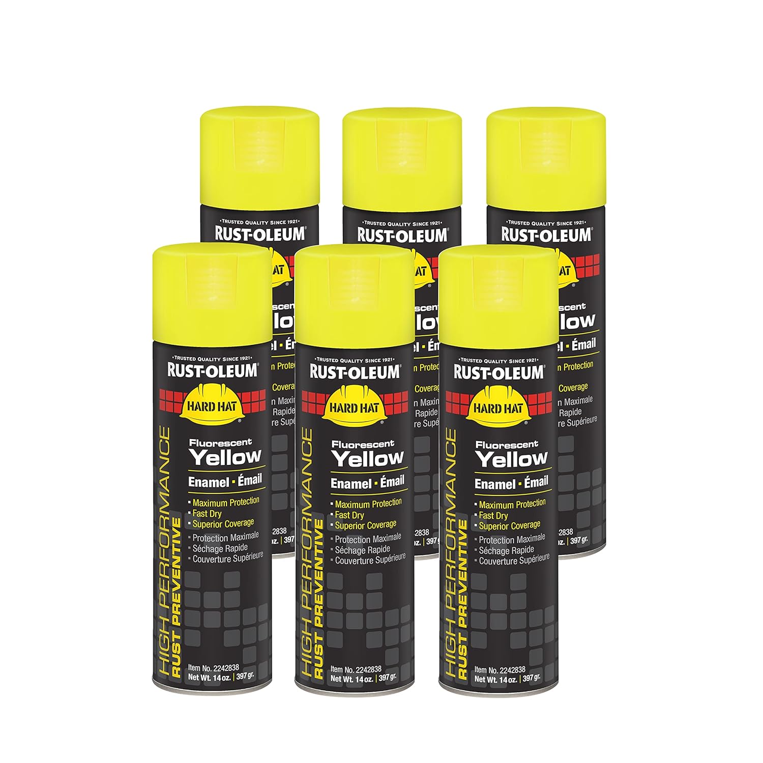 Rust-Oleum V2143838 High Performance V2100 System Rust Preventive Enamel Spray Paint, 20 fl. oz. container, 15 oz. fill,, Safety Yellow, 6-Pack