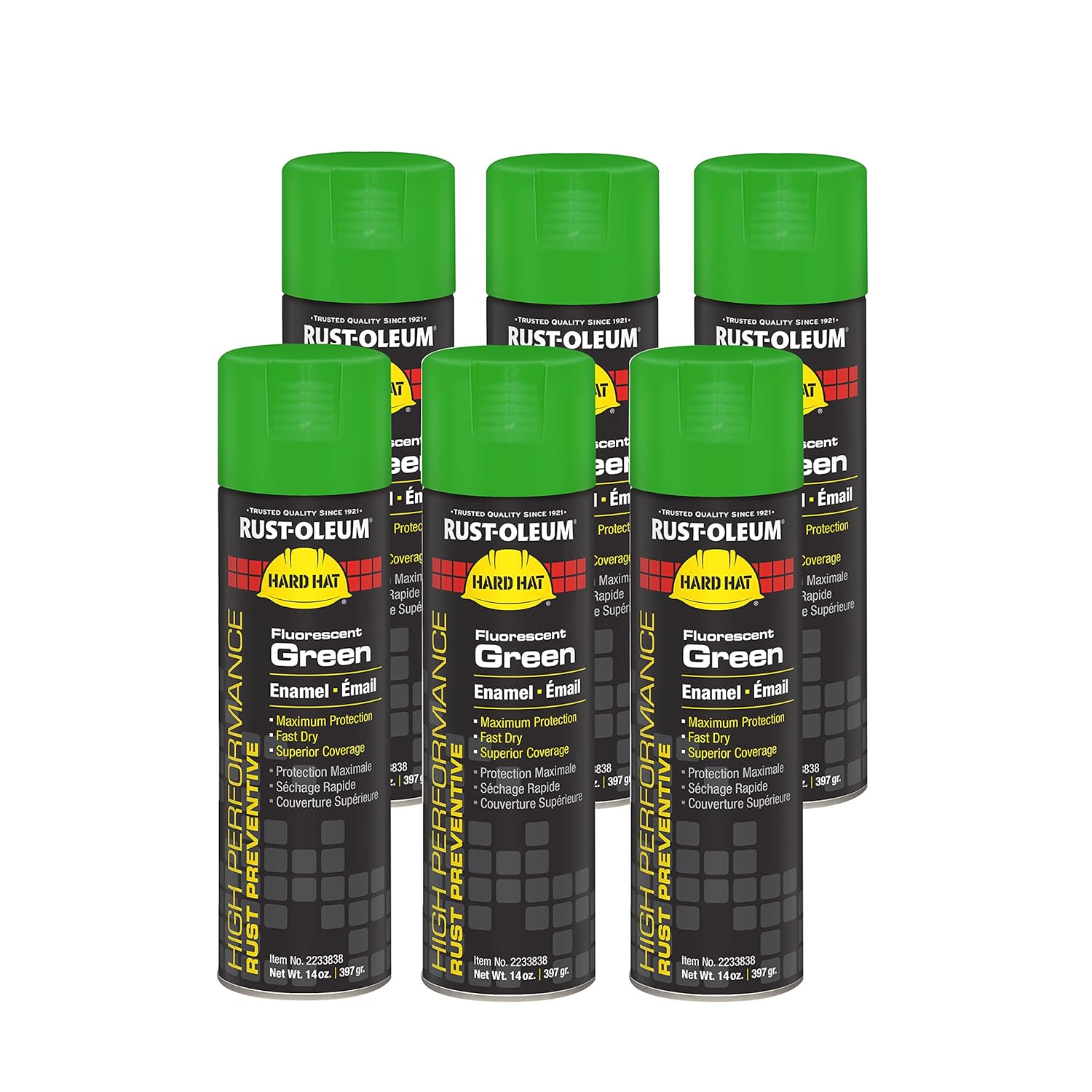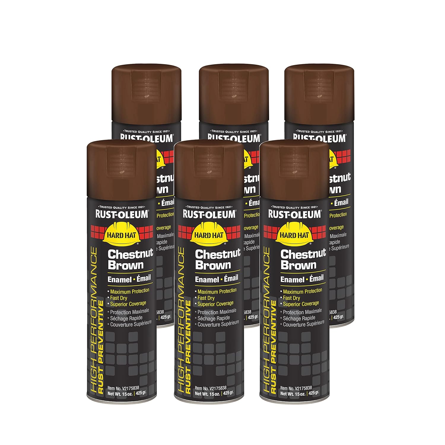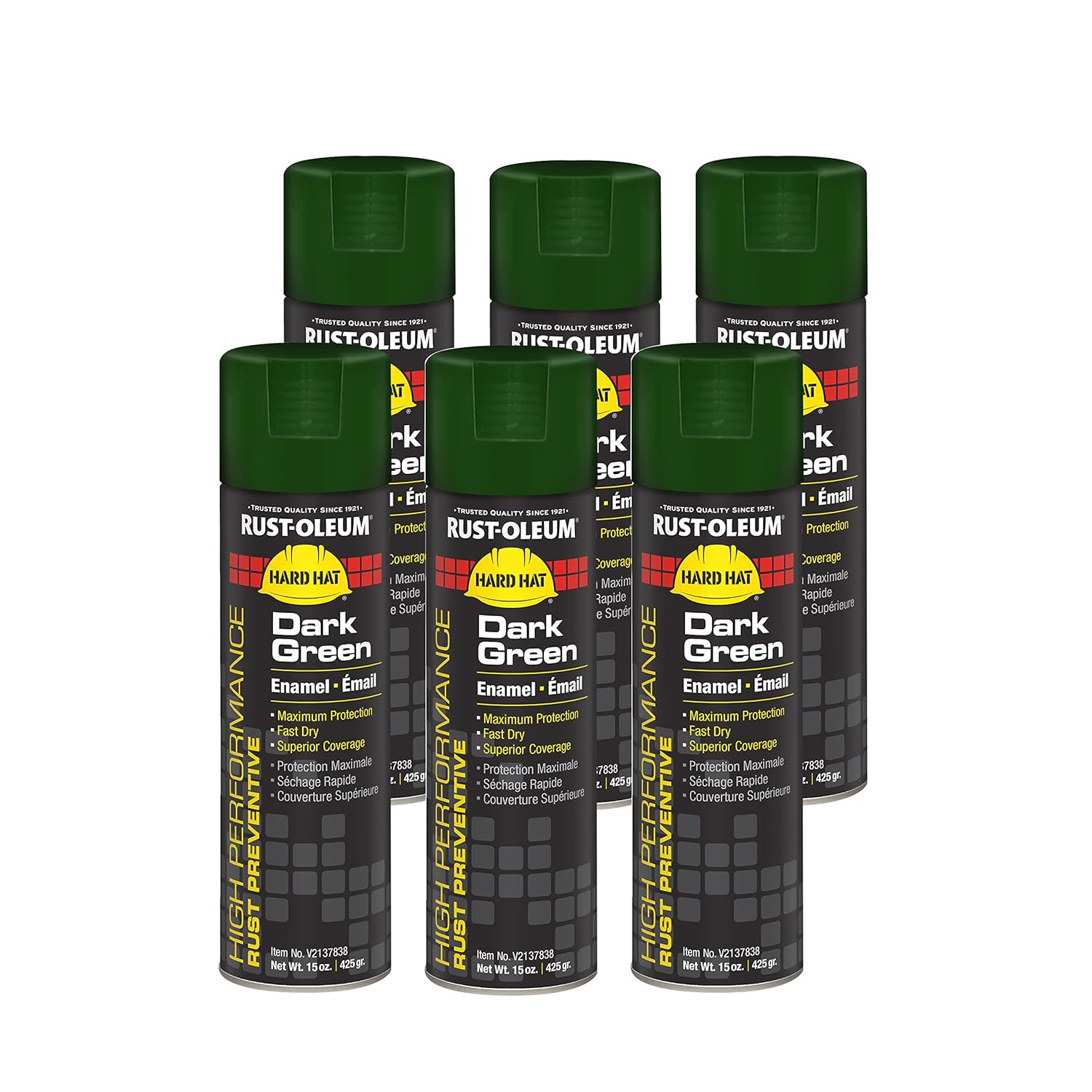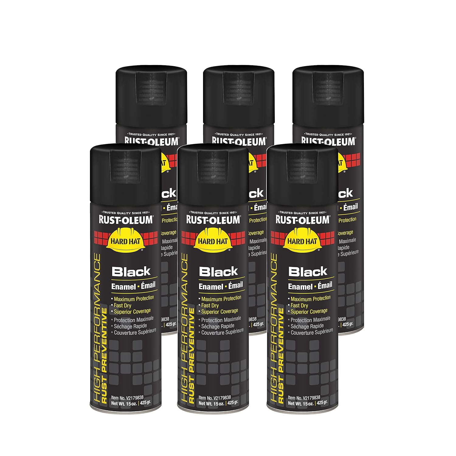 Rust-Oleum V2143838 High Performance V2100 System Rust Preventive Enamel Spray Paint, 20 fl. oz. container, 15 oz. fill,, Safety Yellow, 6-Pack