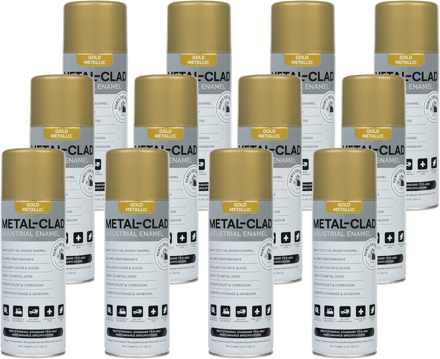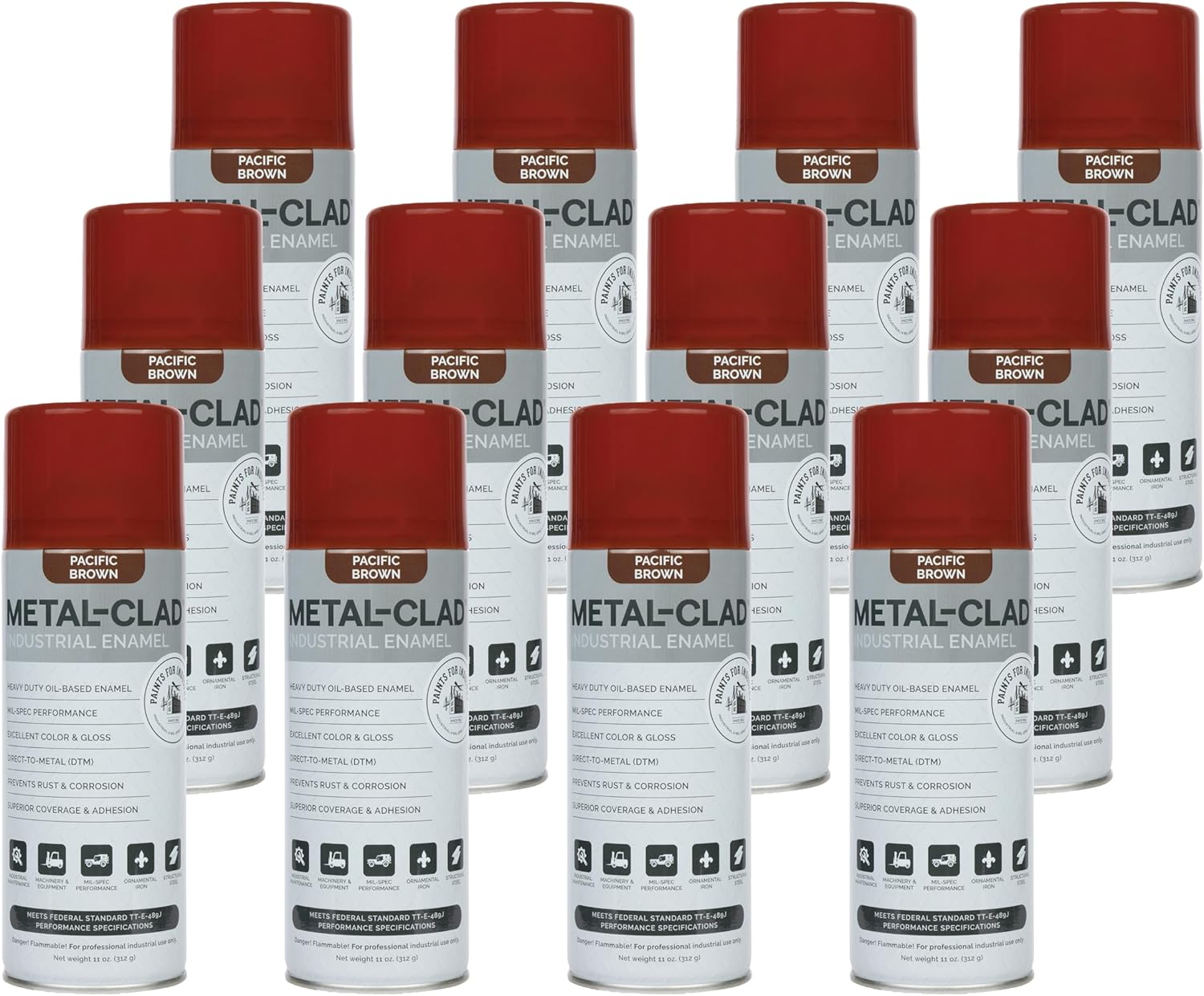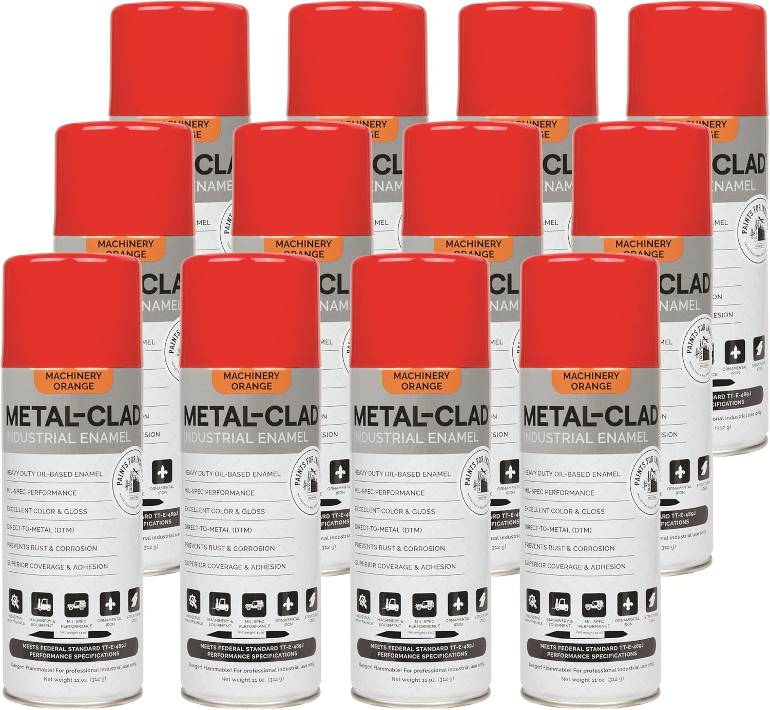 Paints For Industry Industrial Enamel, Aerosol Spray Paint - Steel Metal Iron Machinery - Case of 12 (Semi-Gloss Black) 8-S-1722CS