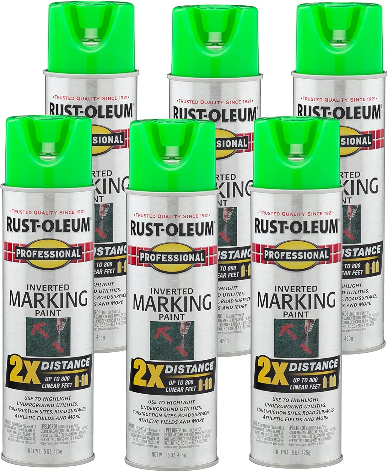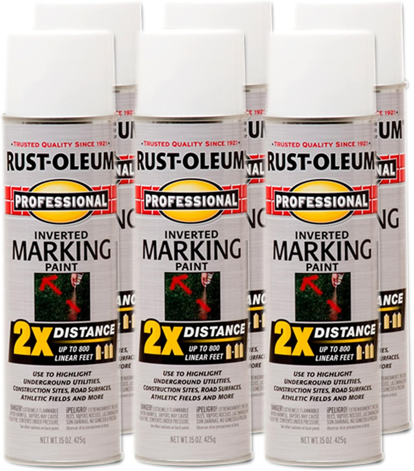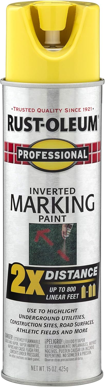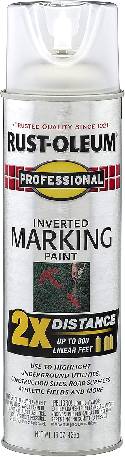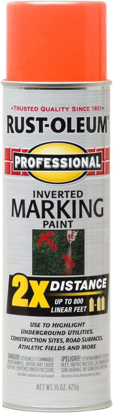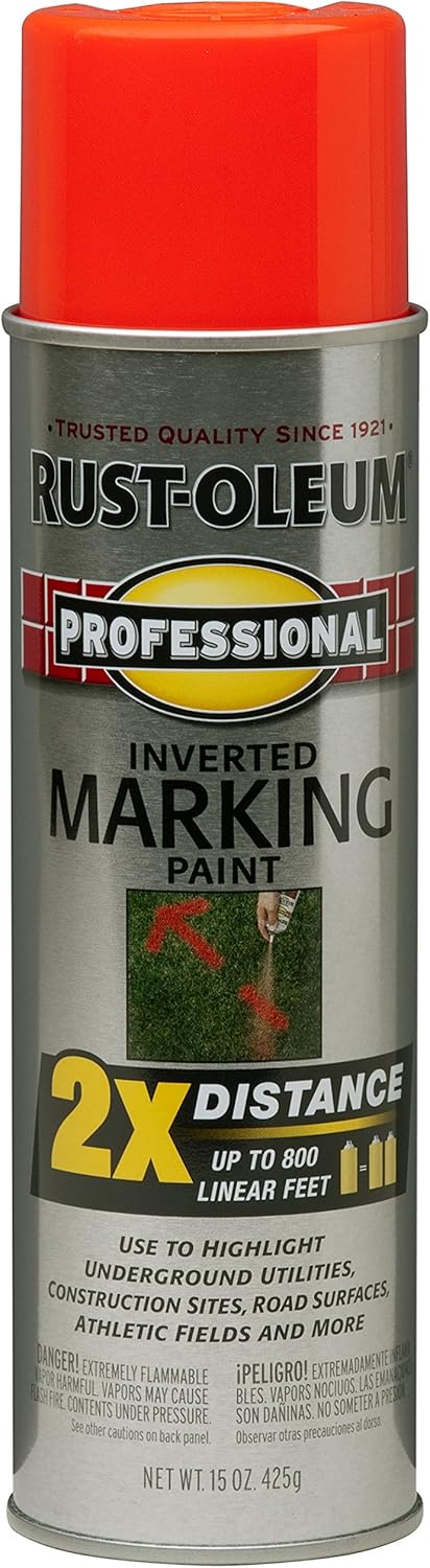 Rust-Oleum 266599-12PK Professional 2X Distance Inverted Marking Spray Paint, 15 oz, Fluorescent Red-Orange, 12 Pack