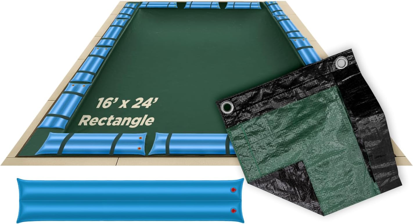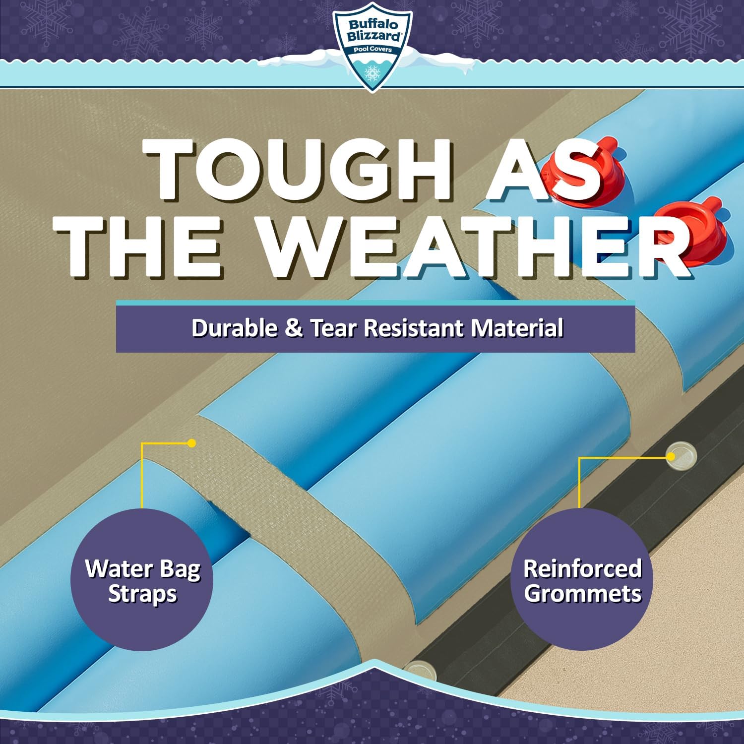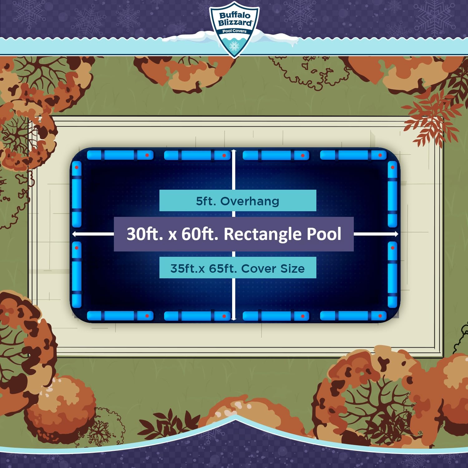 Buffalo Blizzard Deluxe Winter Cover with Water Bags Kit for 30 ft x 60 ft Rectangle In-Ground Swimming Pools | Blue/Black | All Covers Include 5 ft of Overlap to Measure 35 ft x 65 ft