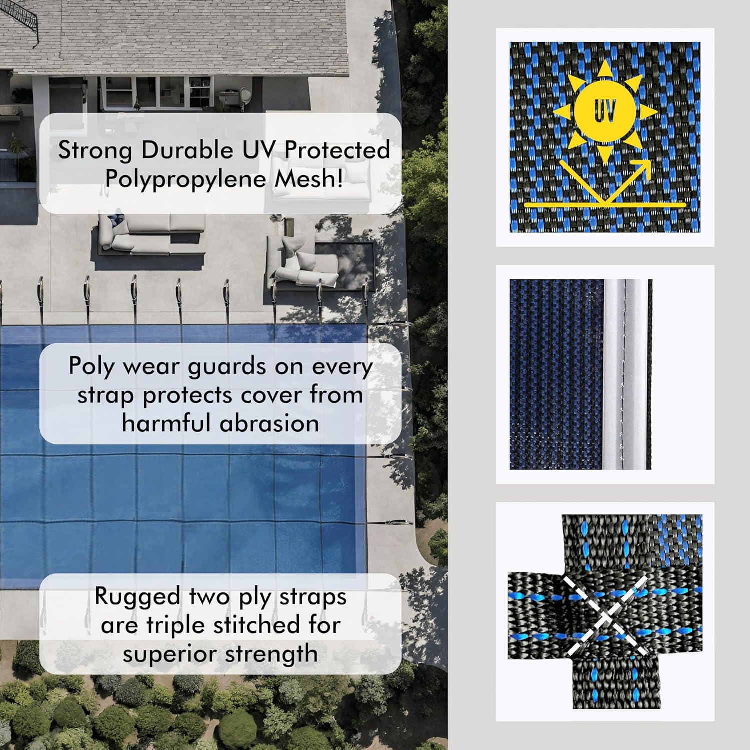 Pool Covers for Inground Pool 16x32ft CES, 5 Year Full Warranty- Mesh Winter In Ground Swimming Pool Cover, UL & ASTM Certified