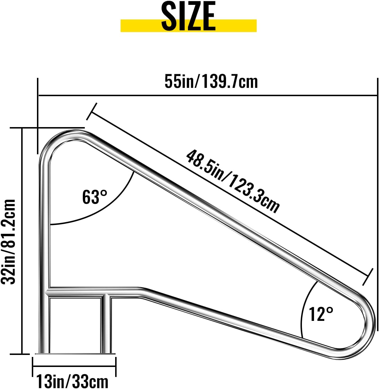 Pool Handrail 55x32, Stainless Steel Railing, 300Lbs Load Capacity, Glue Grip Cover, GRAP Rail for Pool Steps