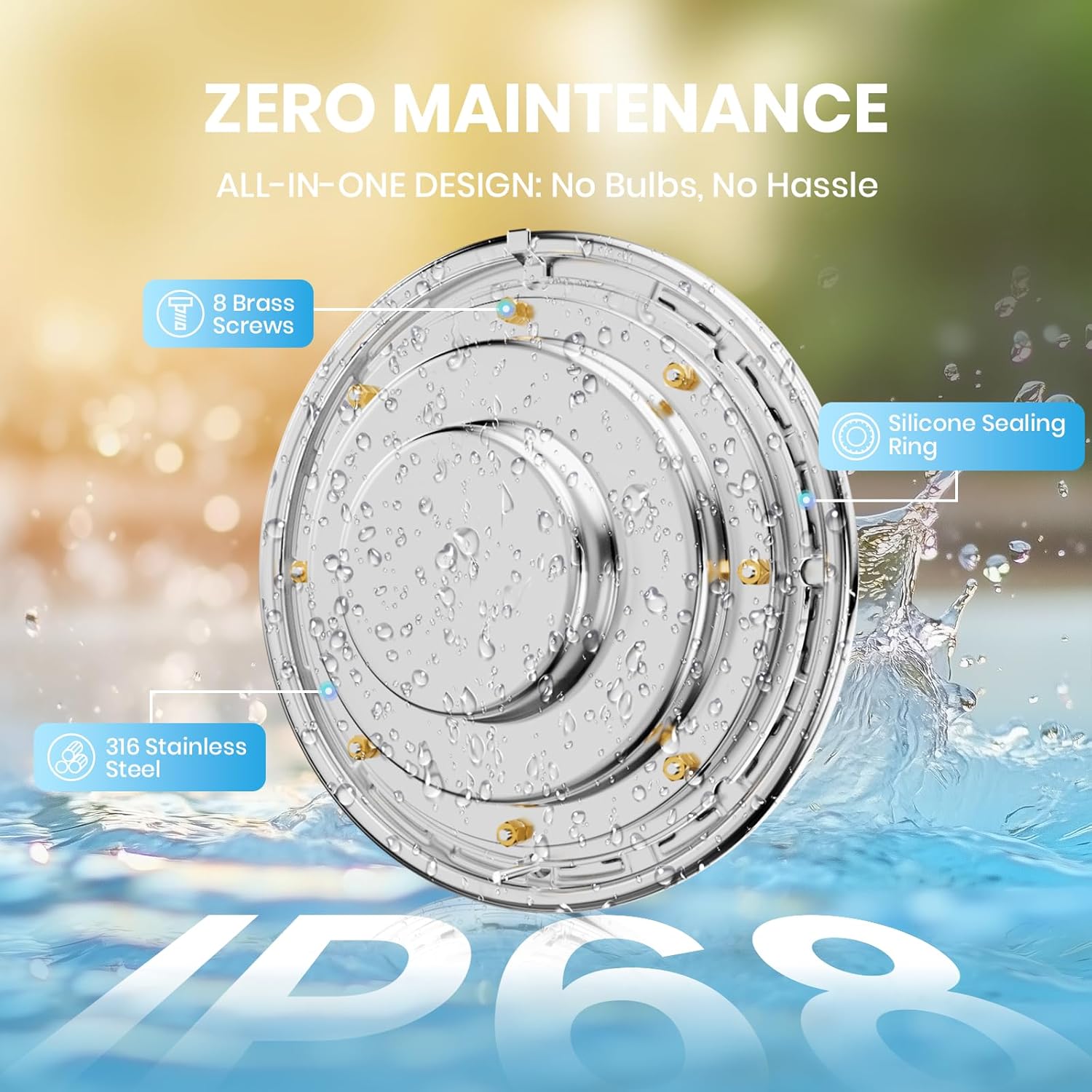 10 Inch Inground Pool Light | 12V LED RGBW Remote Control | IP68 Waterproof | 150W Equivalent |100FT