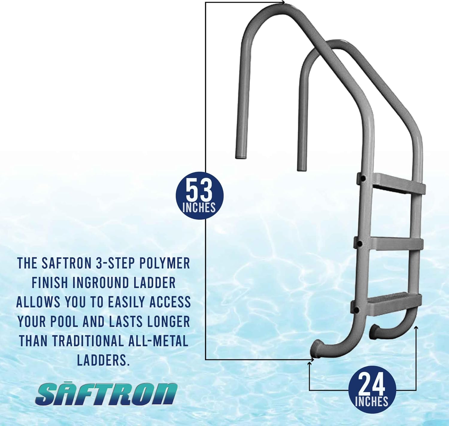 Rust Proof Saftron P-324-L3 Residential Inground White Three-Step Swimming Pool Ladder. 53" Tall x 24" Wide. (Includes Matching Escutcheons & Shipping)