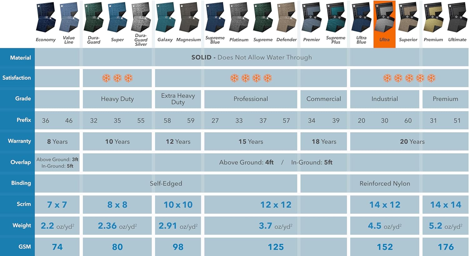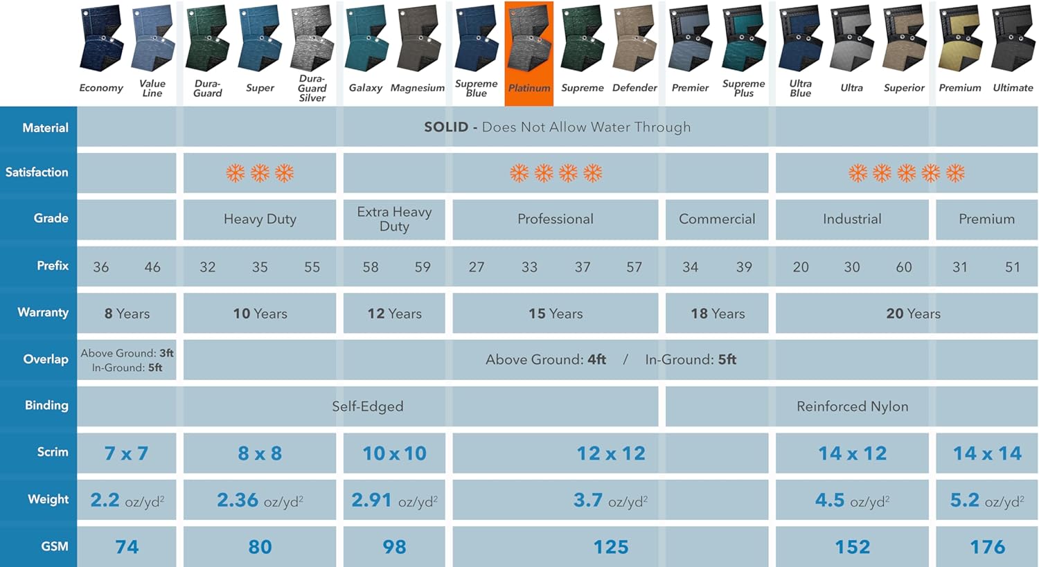 Robelle 30 ft Industrial Gray Winter Pool Cover for Above Ground Pools, 4 ft Overlap (34 ft Cover Size), Solid 14 x 12 Scrim, 4.5 oz/yd2, 20-Year Warranty, Style: 3030-4