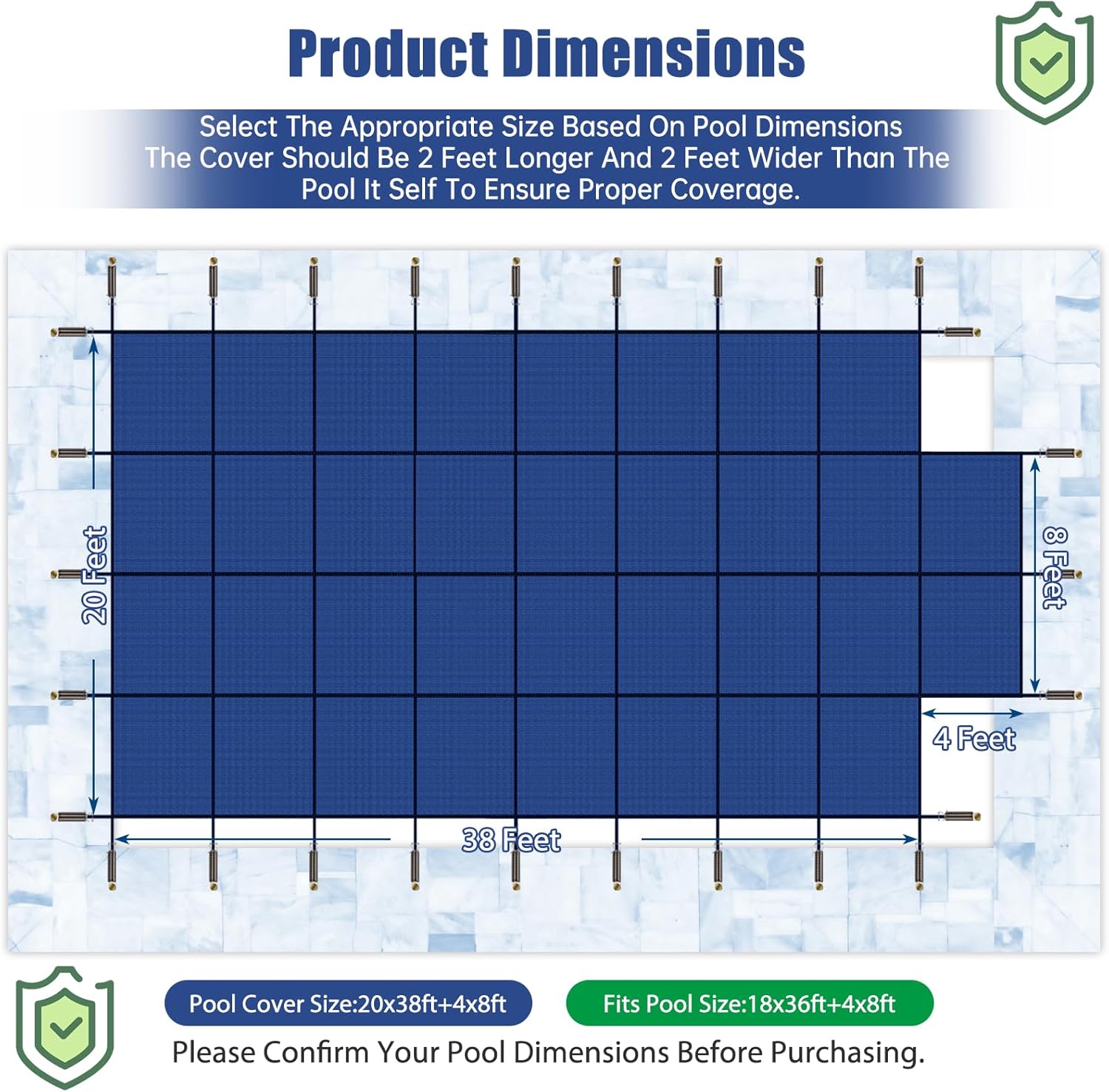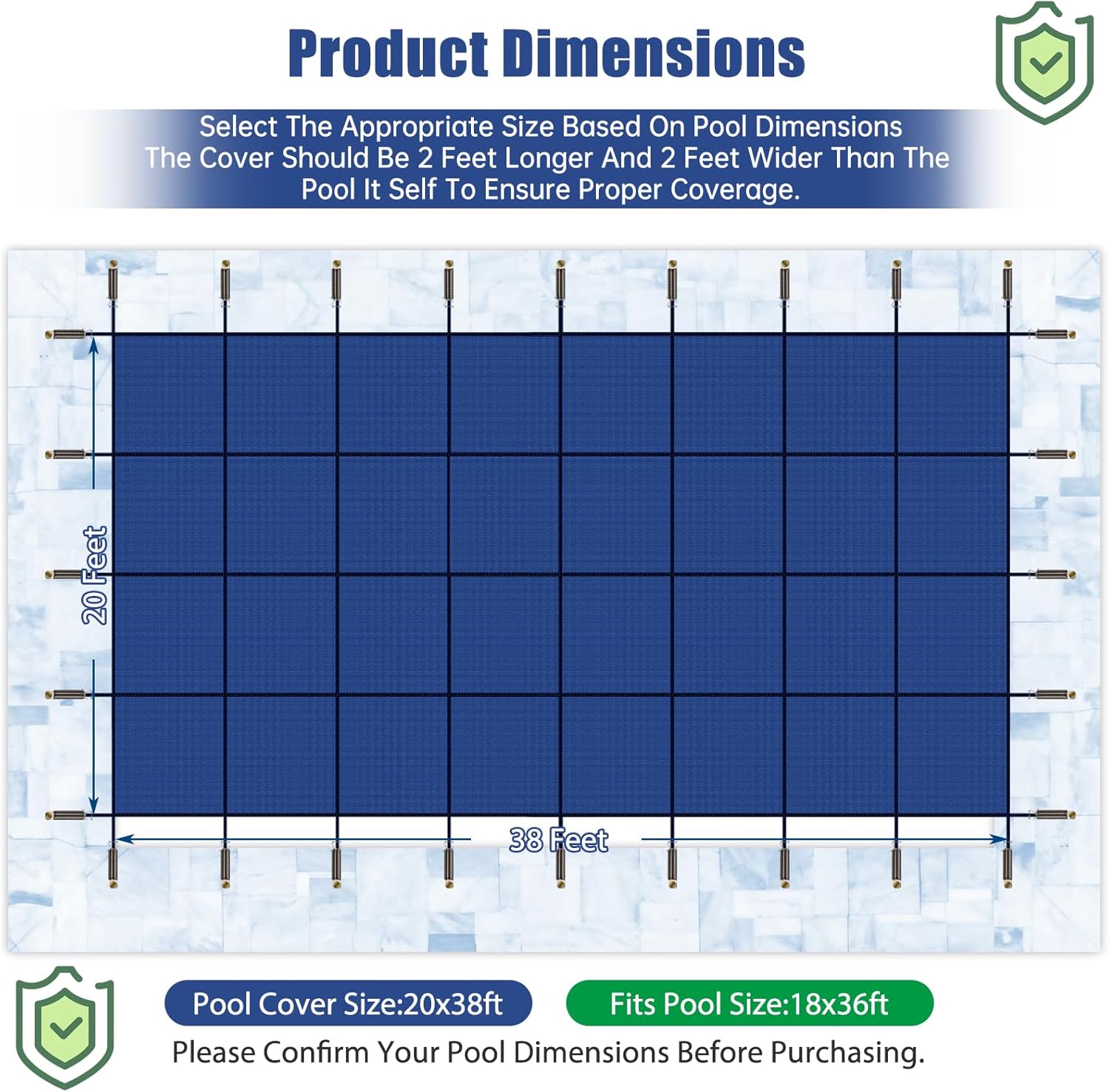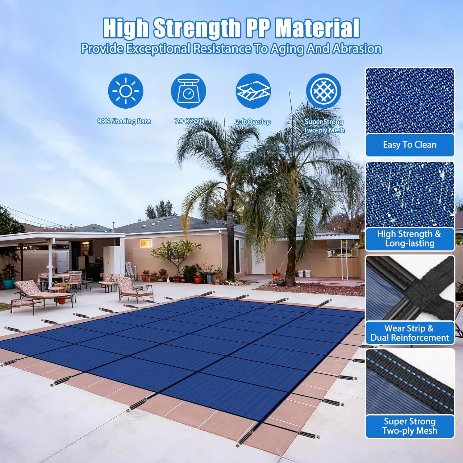Inground Pool Safety Covers, Fits 18x36ft Rectangle Swimming Pool, High Strength Mesh Safety Pool Cover, Winter Pool Safety Covers with Installation Tools (Blue, Fit 18x36ft Pool)