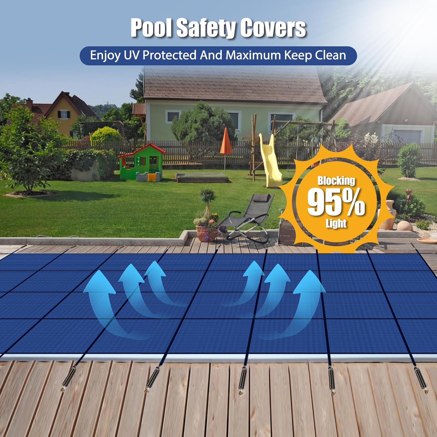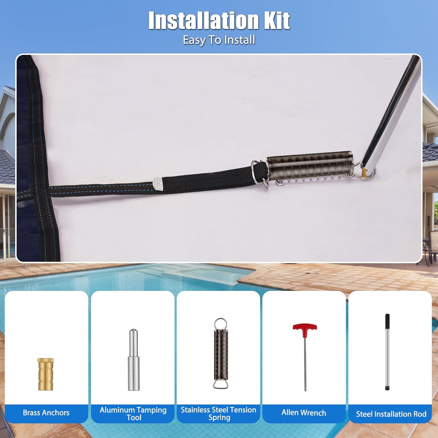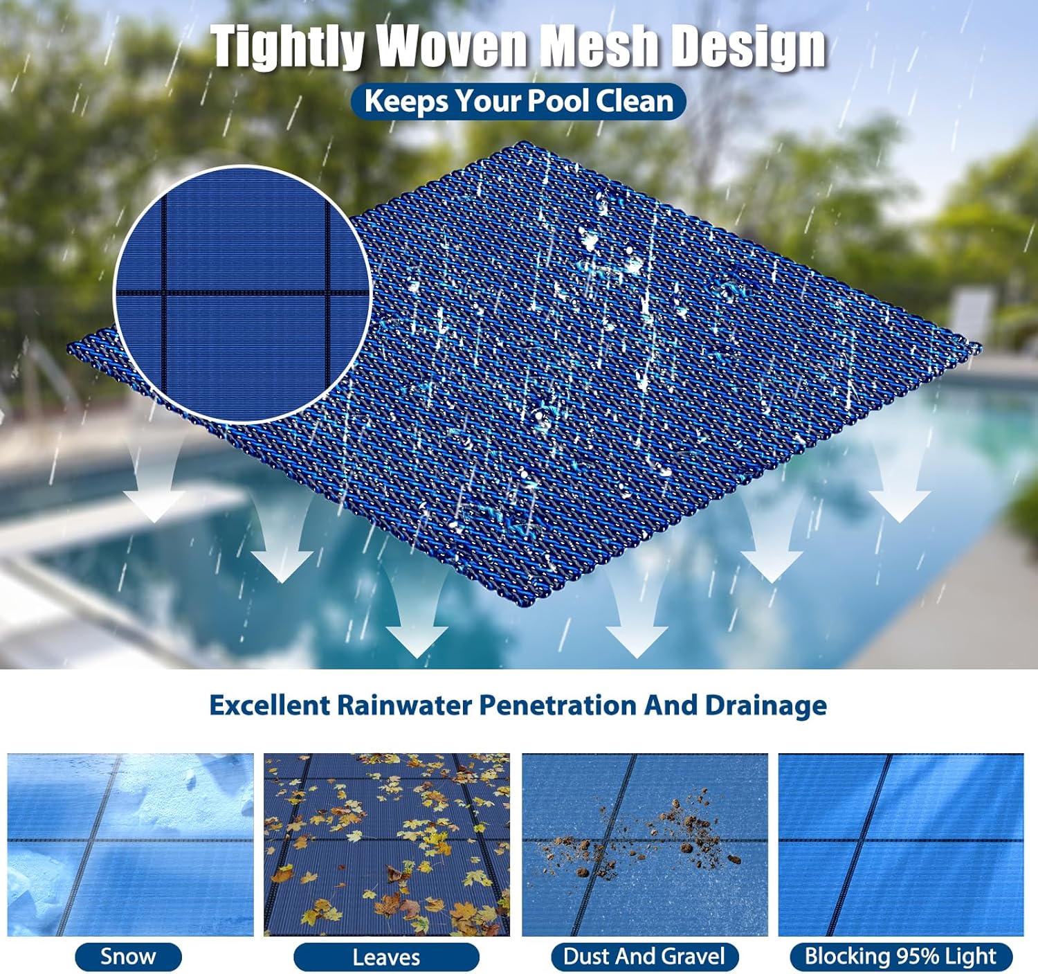 Inground Pool Safety Covers, Fits 18x36ft Rectangle Swimming Pool, High Strength Mesh Safety Pool Cover, Winter Pool Safety Covers with Installation Tools (Blue, Fit 18x36ft Pool)
