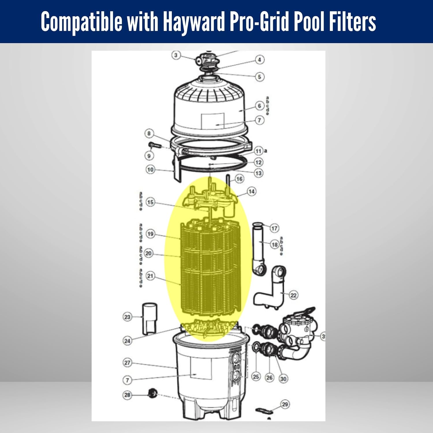 DEX3600DC Filter Element Cluster Assembly Compatible with Hayward 36 Sq Ft. Pro-Grid DE Filter | For Models DE3620, DE3600 Filters (DEX3600DC Cluster Assembly)