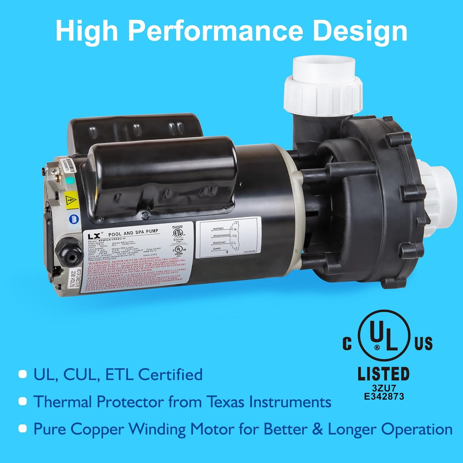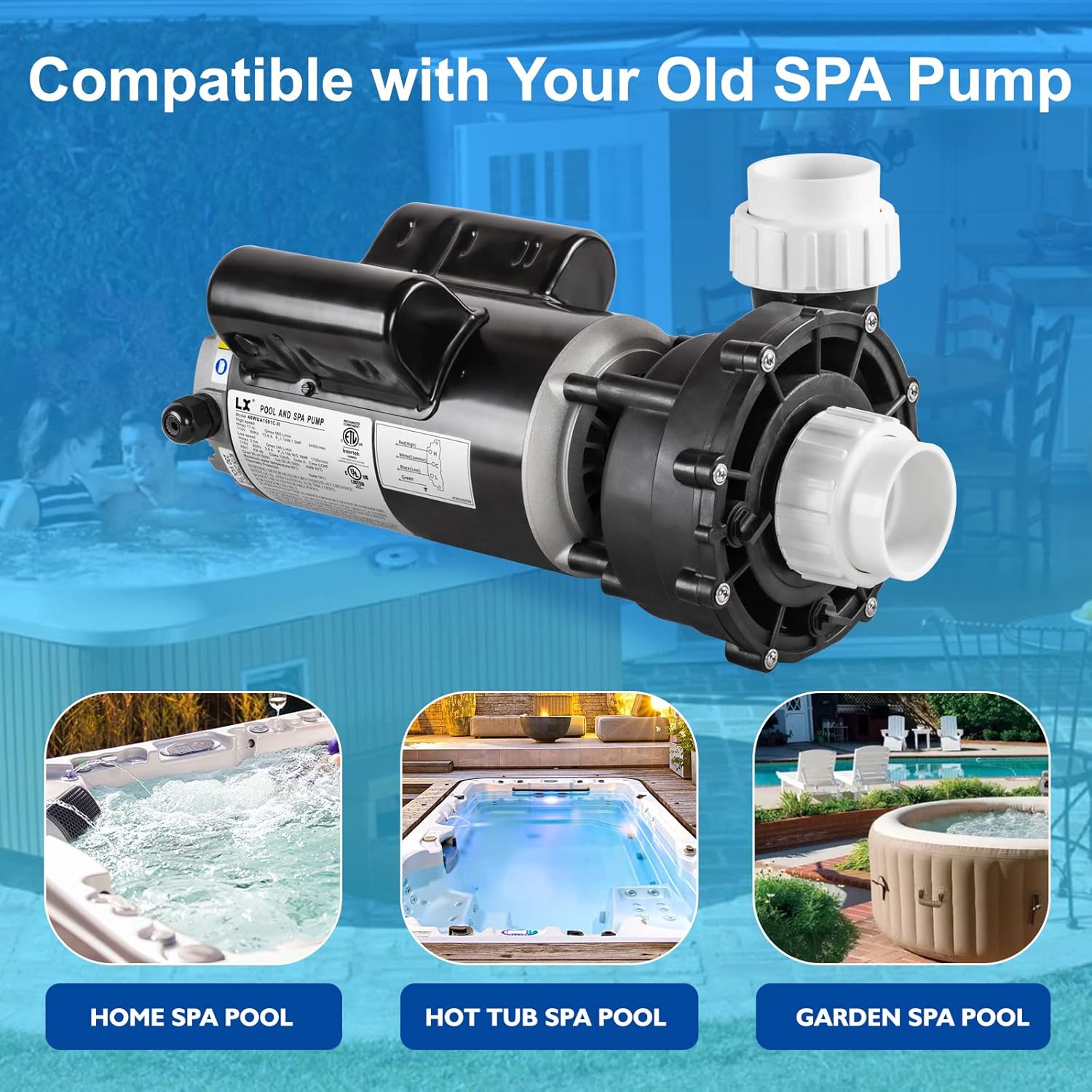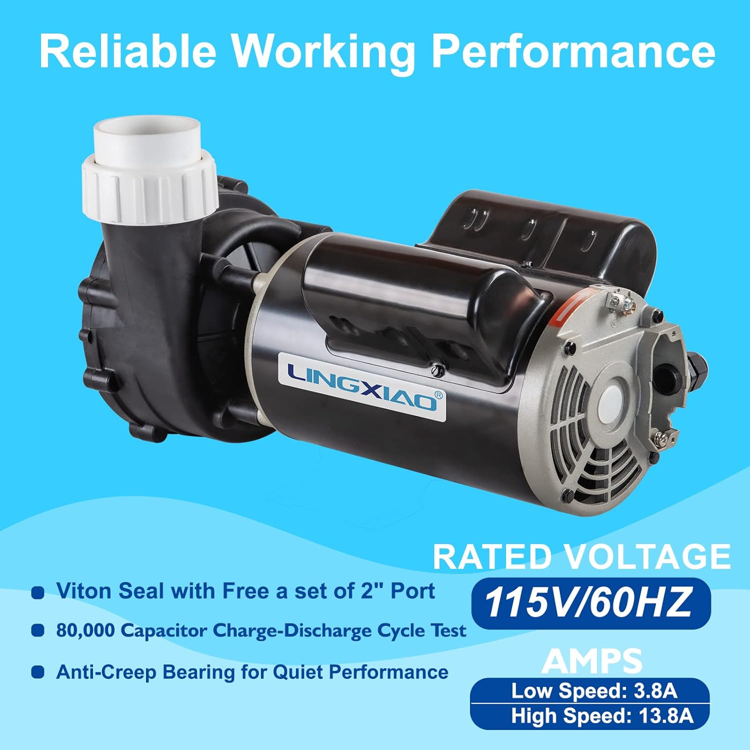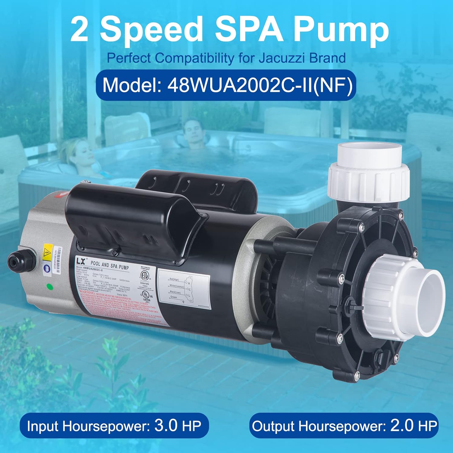 SPA Pump, 2HP Hot Tub Pump for Jacuzzi 6500-345, 48Y LX Pump Motor 2 Speed, 115V/60HZ, 2" Port, No Base - Model: 48WUA1501C-II(NF)