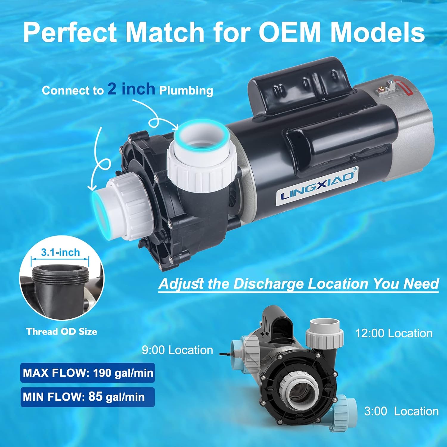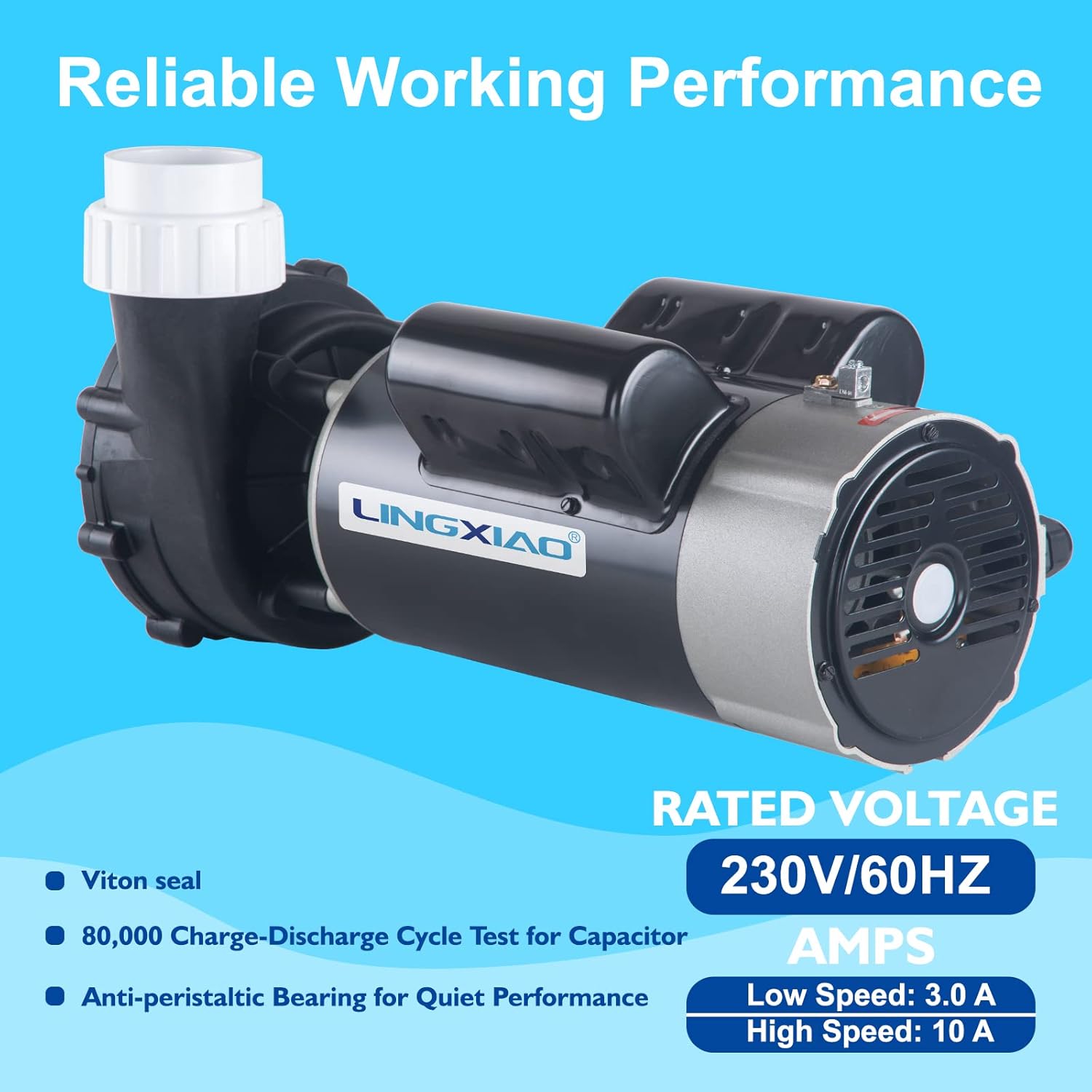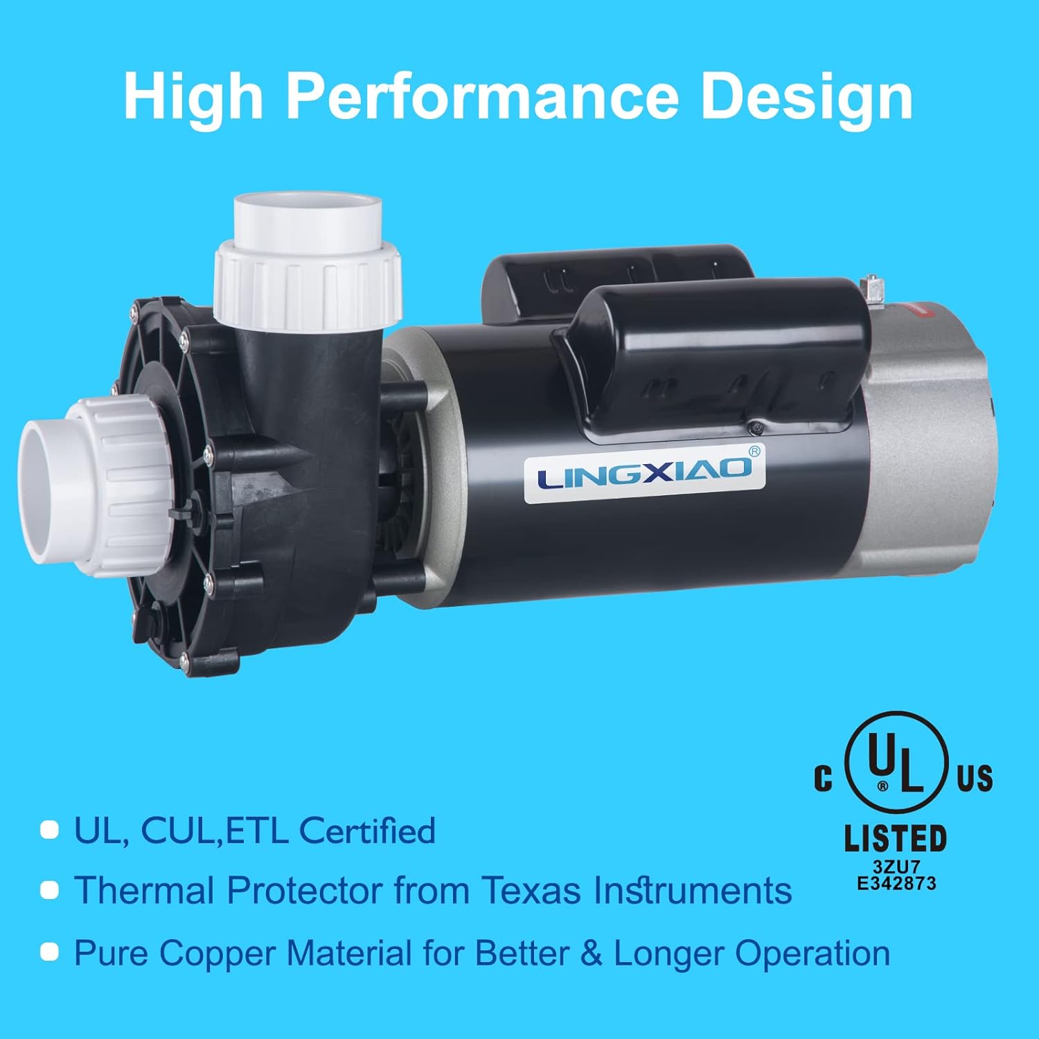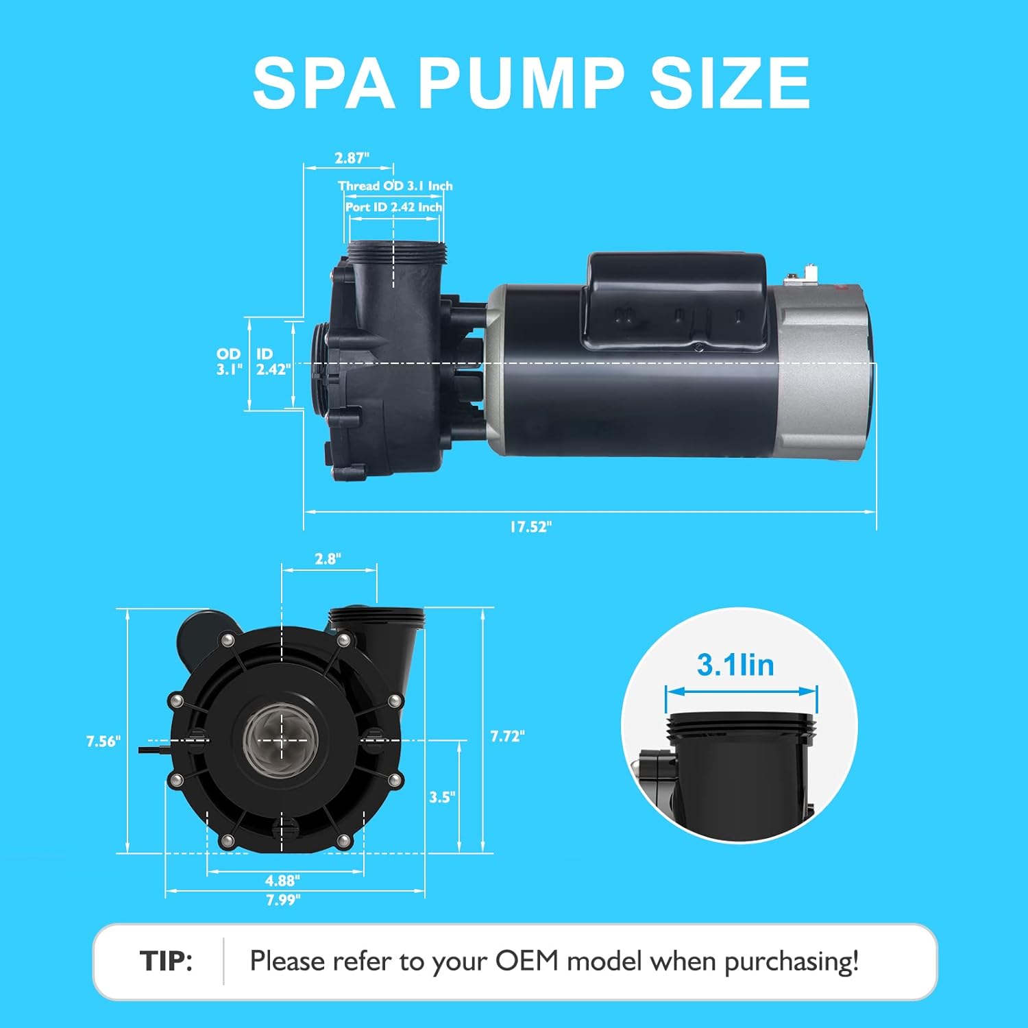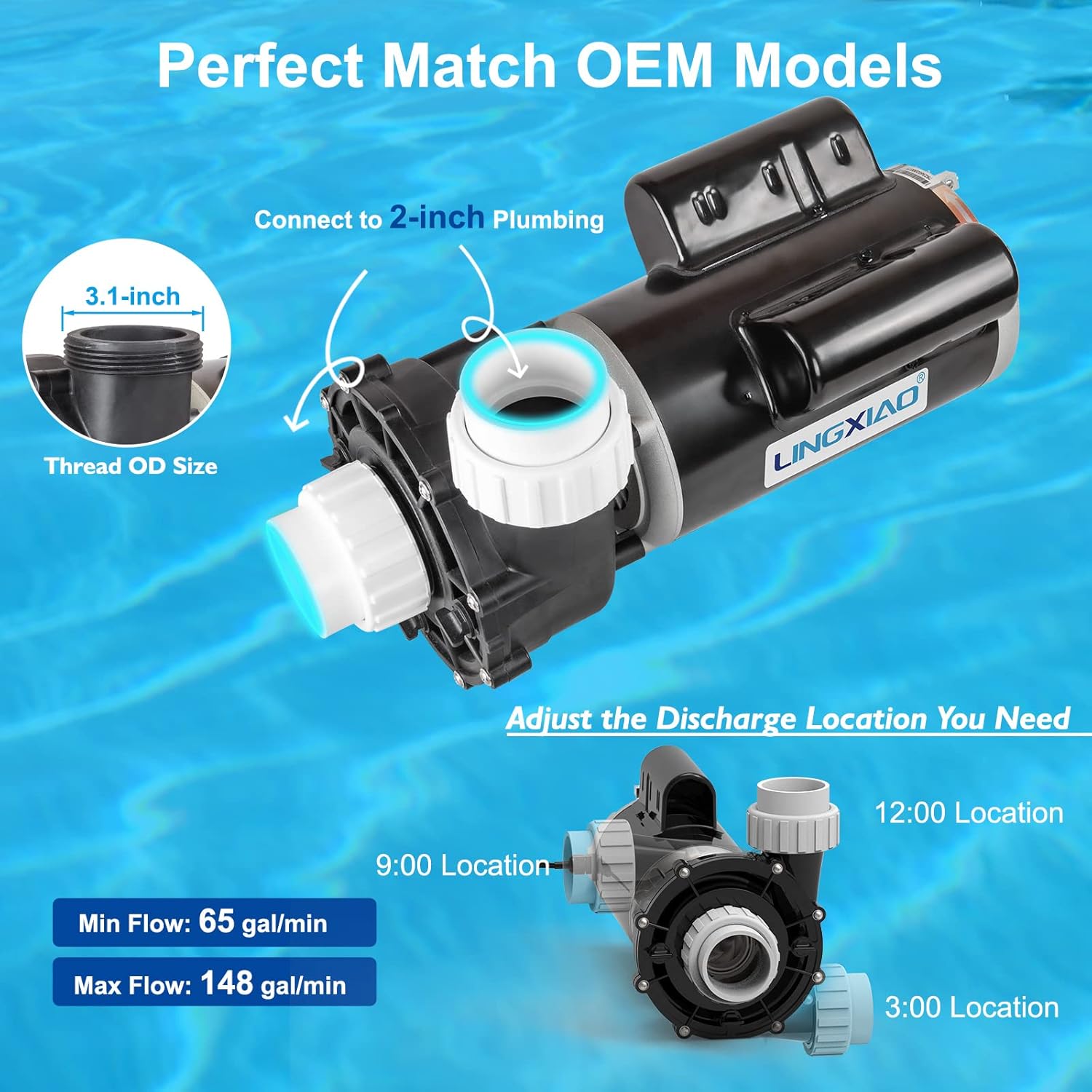 SPA Pump, 2HP Hot Tub Pump for Jacuzzi 6500-345, 48Y LX Pump Motor 2 Speed, 115V/60HZ, 2" Port, No Base - Model: 48WUA1501C-II(NF)