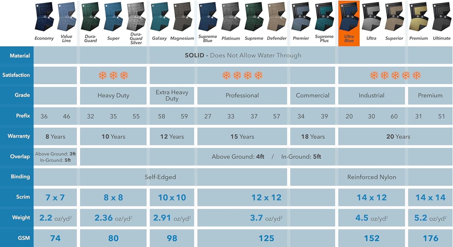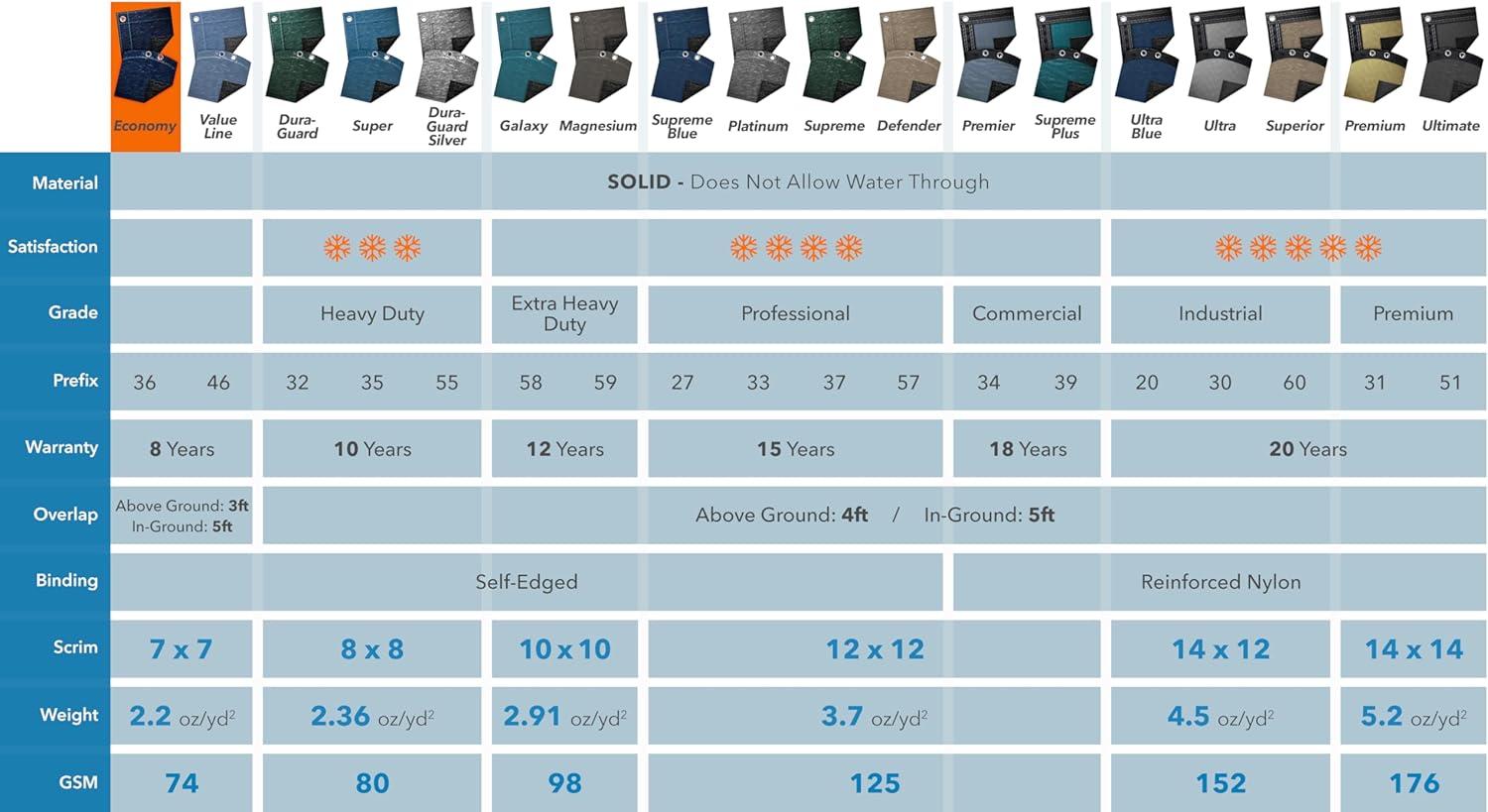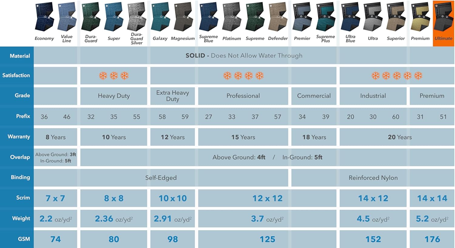 Robelle 20 x 40 ft Ultimate Charcoal Winter Pool Cover for Inground Pools, 5 ft Overlap (25 x 45 ft Cover Size), Solid 14 x 14 Scrim, 5.2 oz/yd2, 20-Year Warranty, Style: 512040R