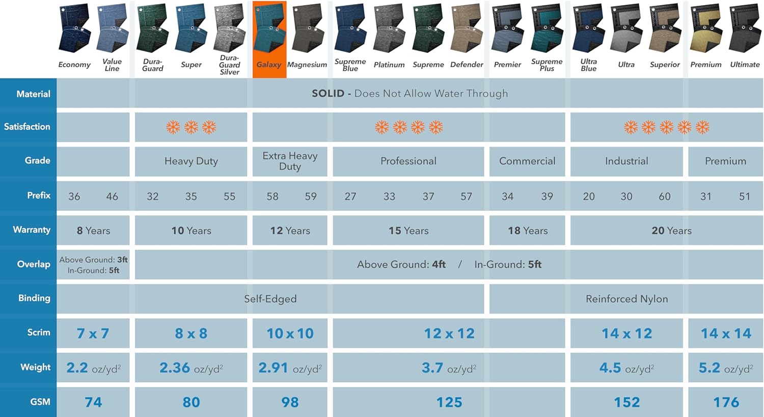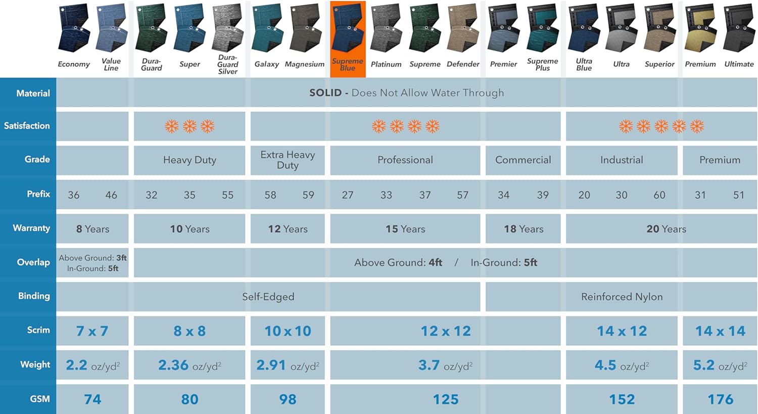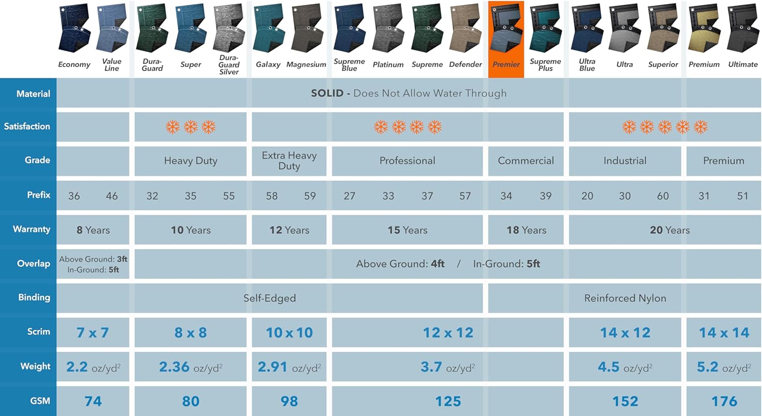 Robelle 20 x 40 ft Ultimate Charcoal Winter Pool Cover for Inground Pools, 5 ft Overlap (25 x 45 ft Cover Size), Solid 14 x 14 Scrim, 5.2 oz/yd2, 20-Year Warranty, Style: 512040R
