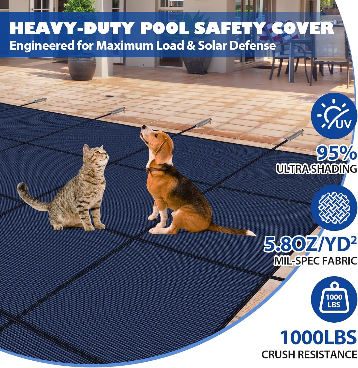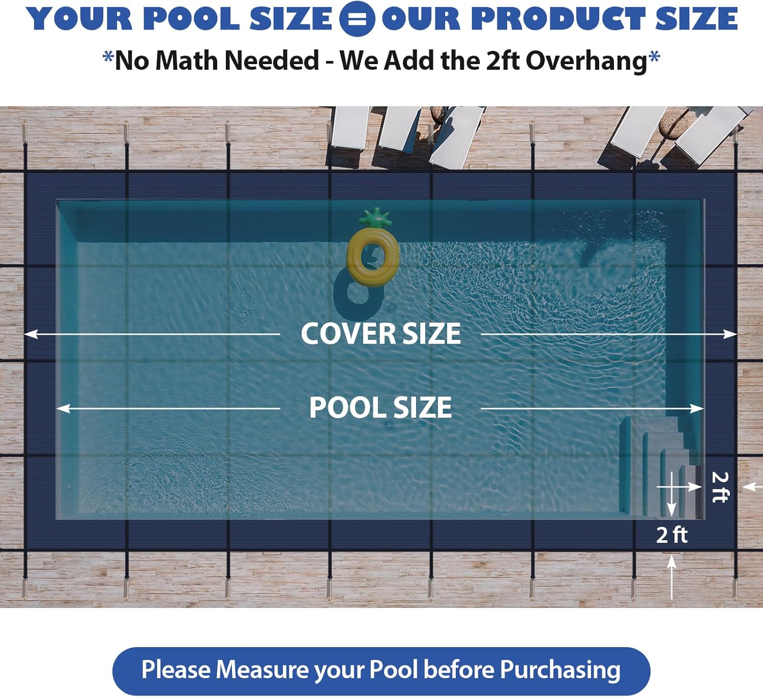 Pool Safety Cover for Inground Pools, Heavy-Duty Winter Pool Cover, Rectangle Mesh/Solid Swimming Pool Covers, Triple Stitched for High Strength & UV Protection,Blue