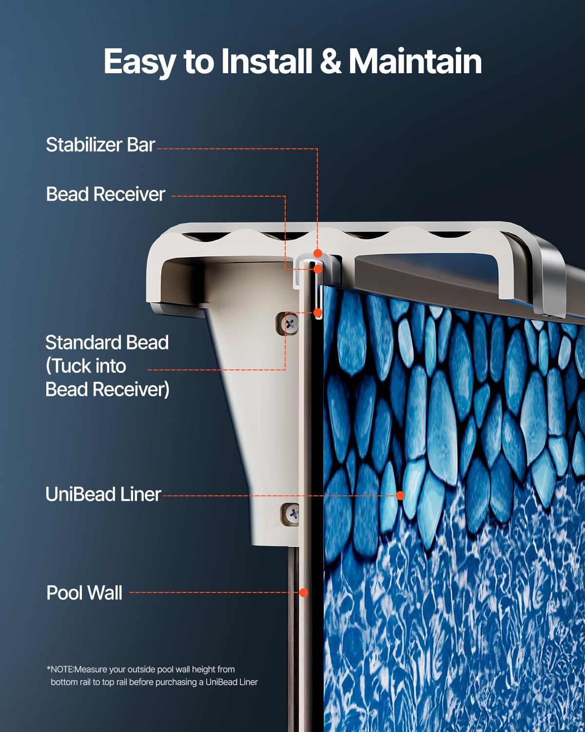 VEVOR 24-ft Round Above Ground Pool Liner, Unibead Pool Liners, Standard Gauge, 52inch Wall Height, Designed for Steel Sided Above-Ground Swimming Pools