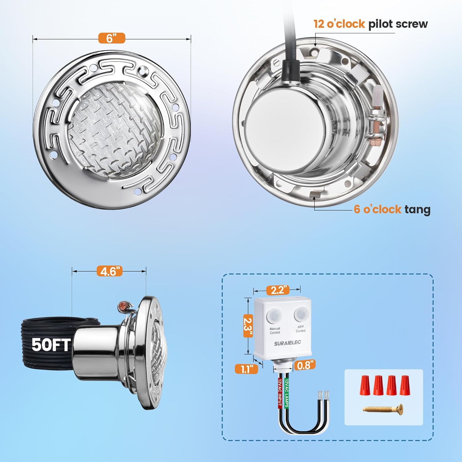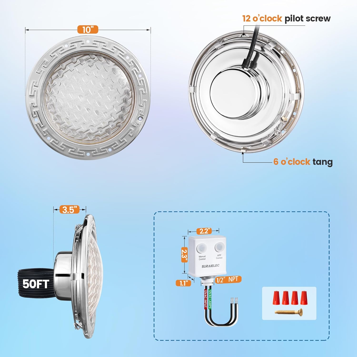 Pool Lights for Inground Pool, Direct Replacement for Pentair GloBrite, 1.5 Inch LED Color Inground Pool & Spa Light, IP68 Waterproof, AC12V, 100 ft Cord