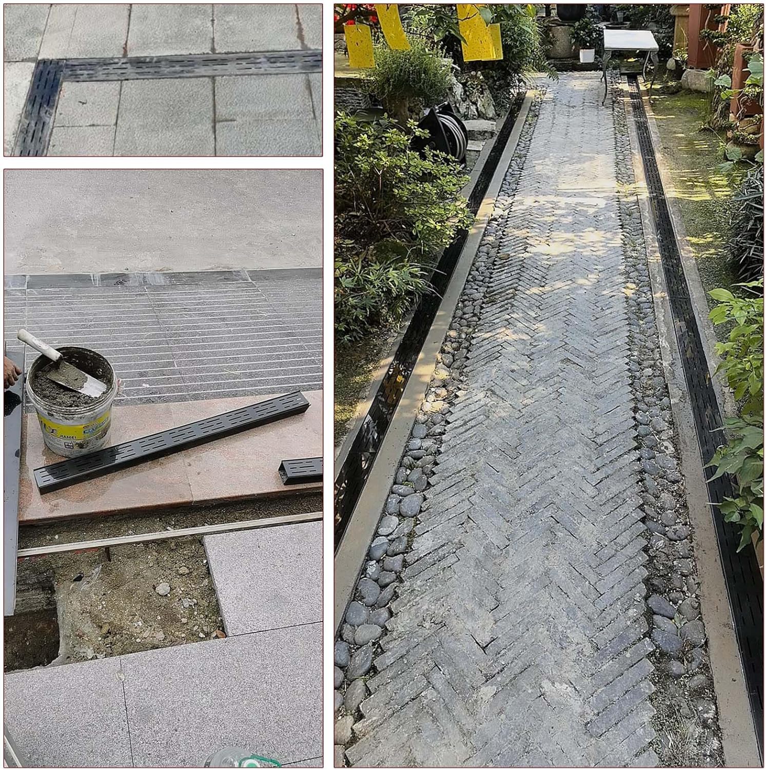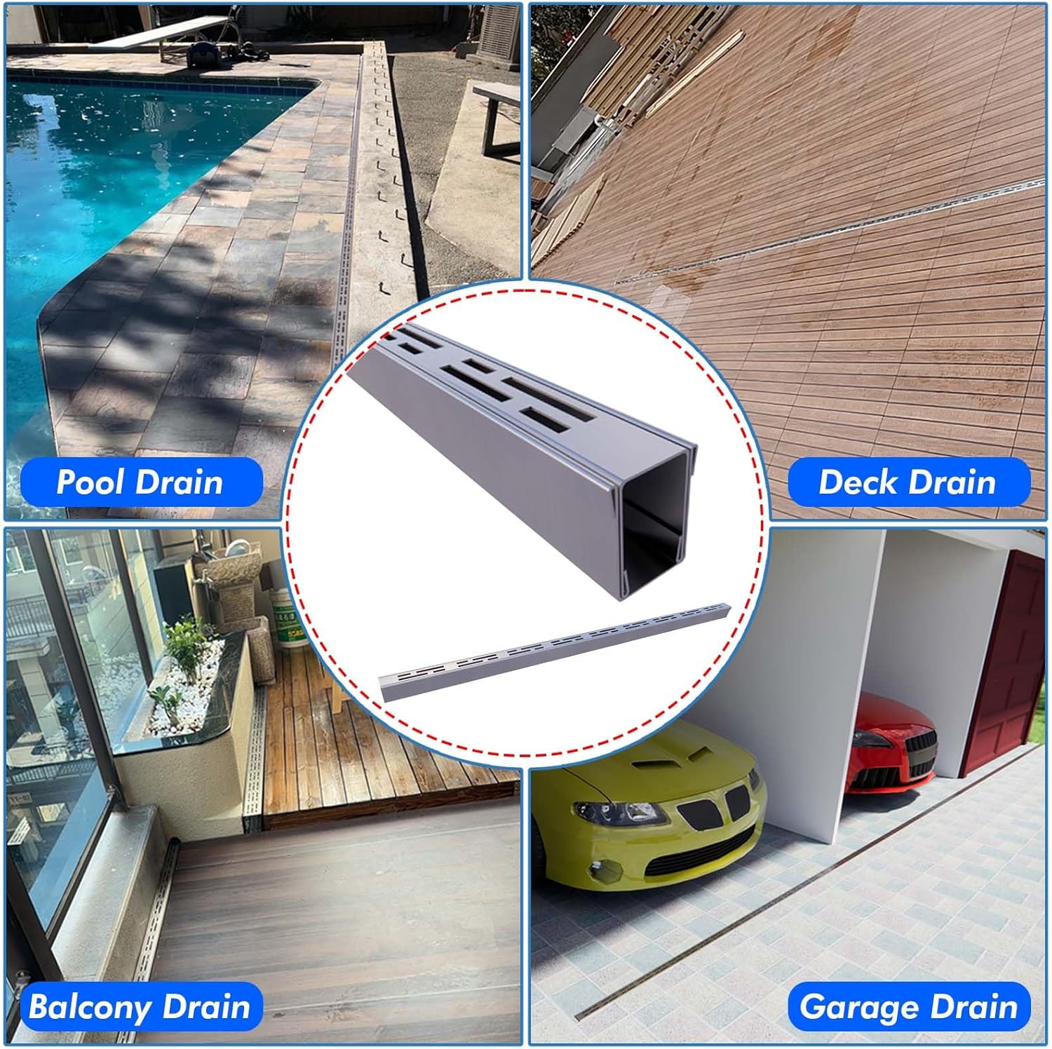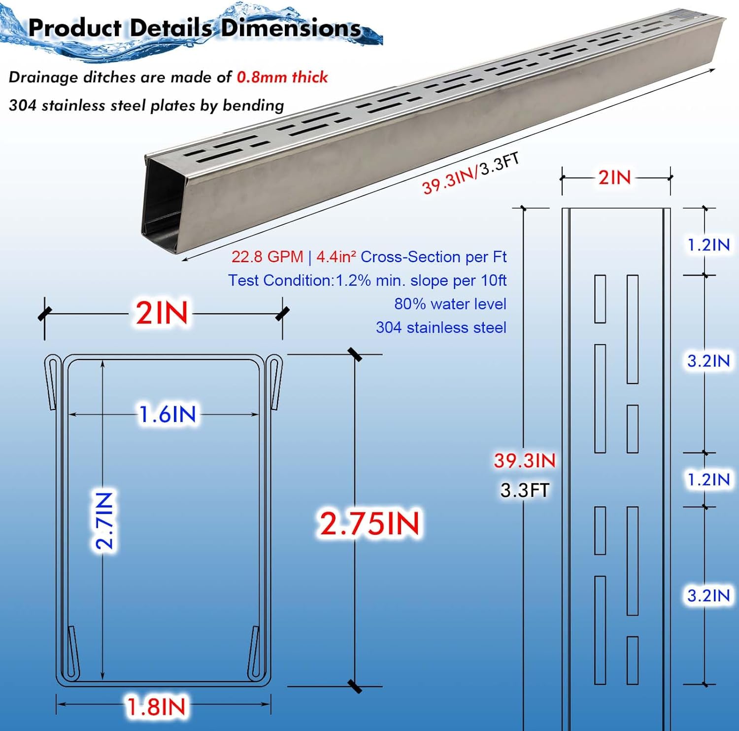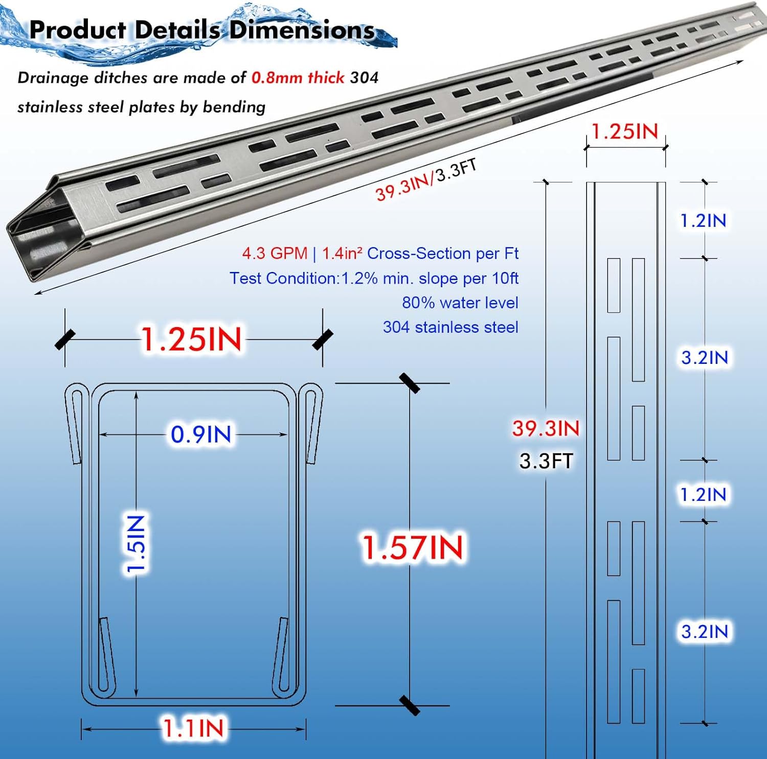 Pool Deck Drain 1.25-Inch Wide X 19.6-Feet Long,Silver Outdoor Deck Drainage System 304 Stainless Steel with Coupling,Channel Drain for Concrete/Paver/Patios/Walkways