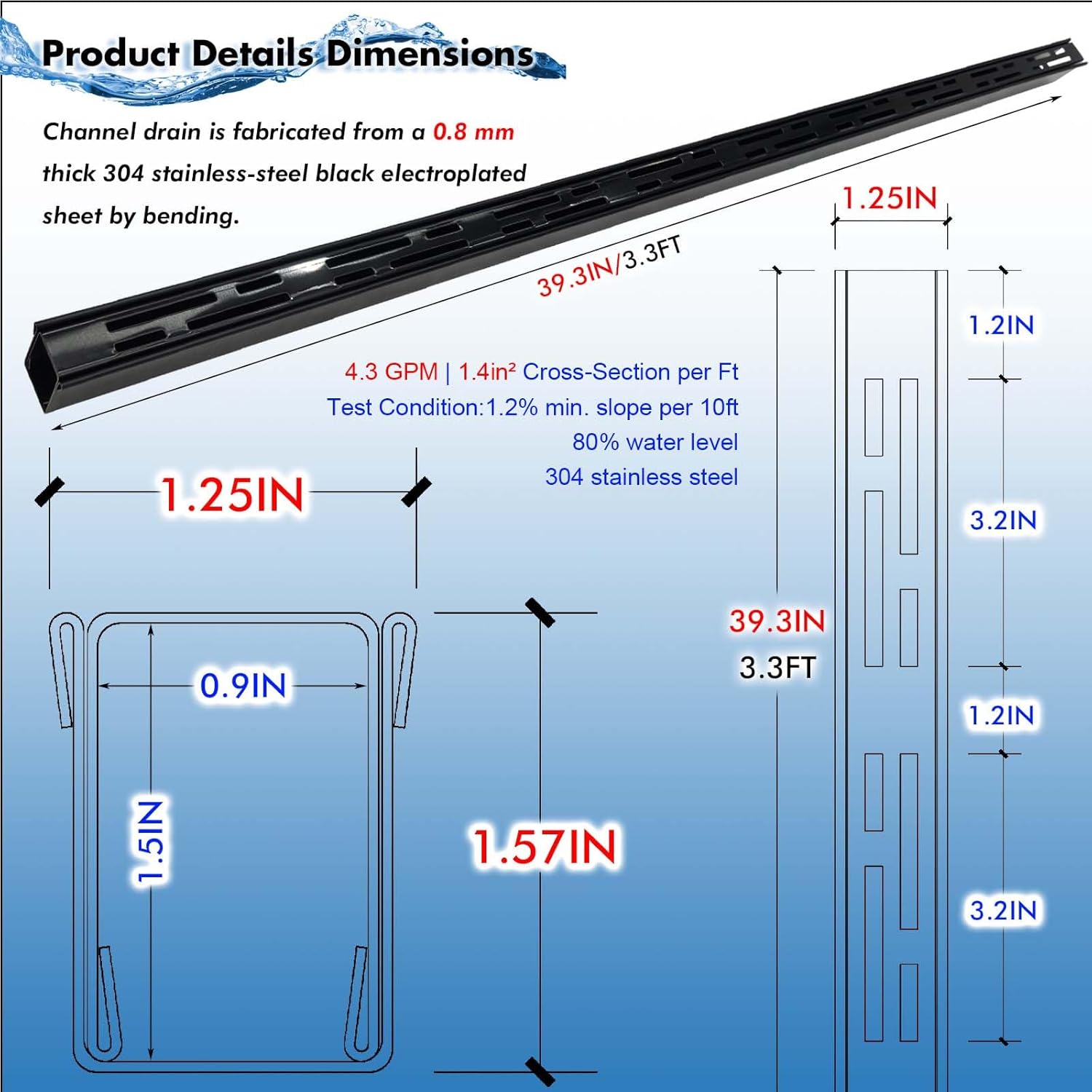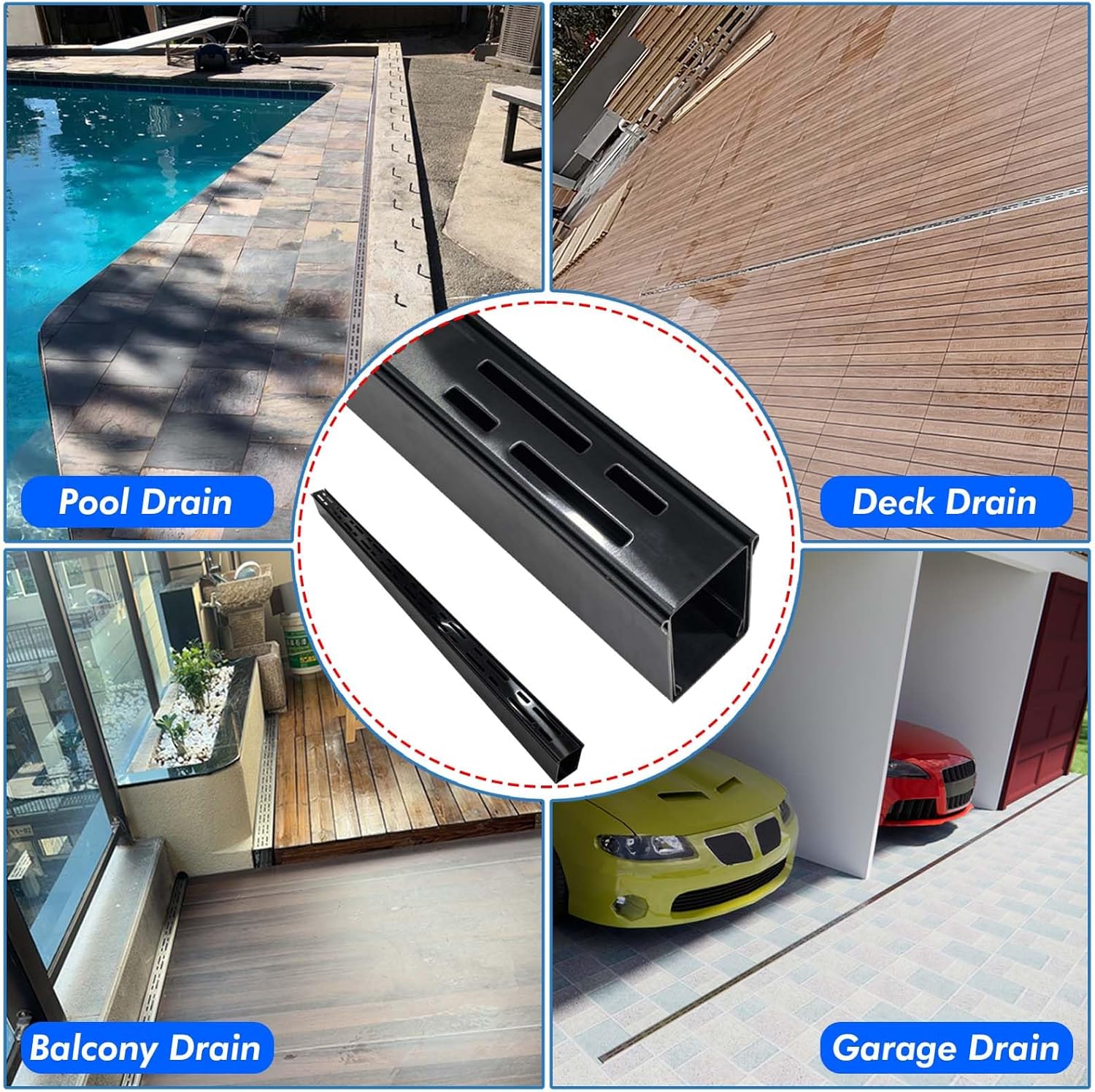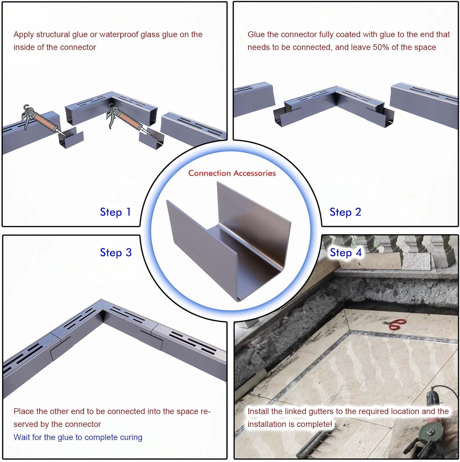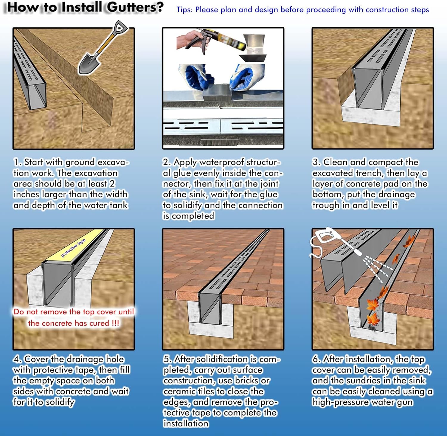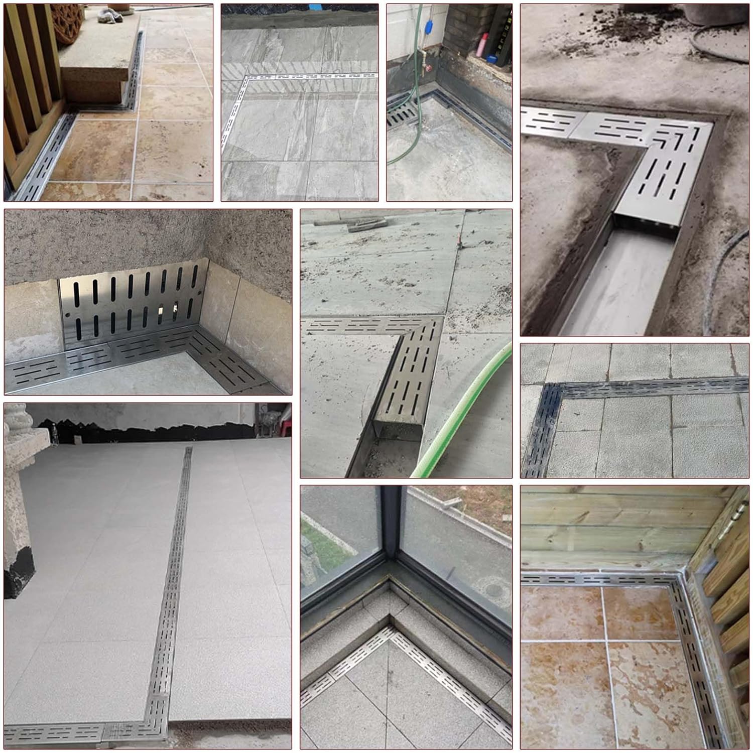 Pool Deck Drain 1.25-Inch Wide X 19.6-Feet Long,Silver Outdoor Deck Drainage System 304 Stainless Steel with Coupling,Channel Drain for Concrete/Paver/Patios/Walkways