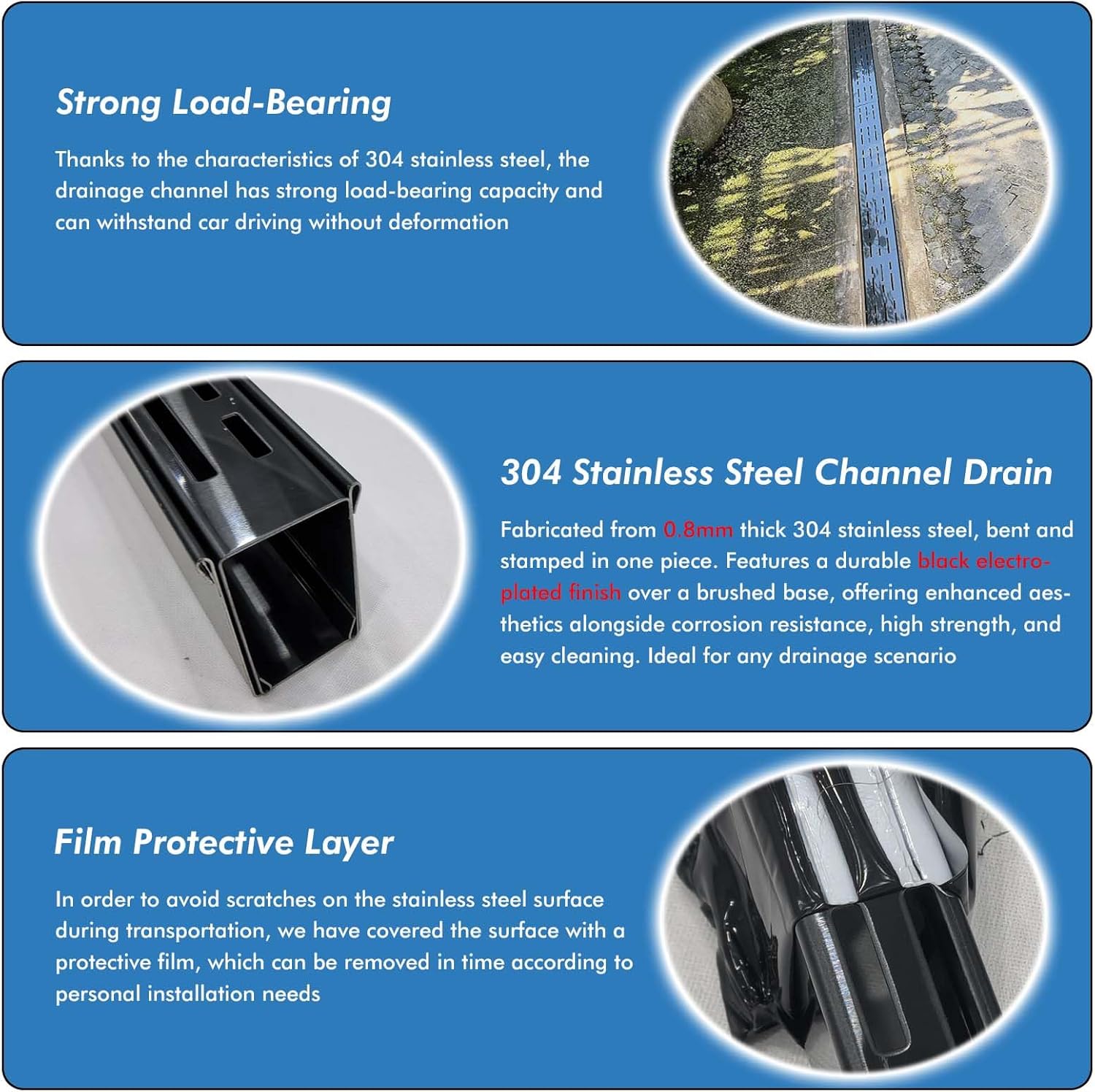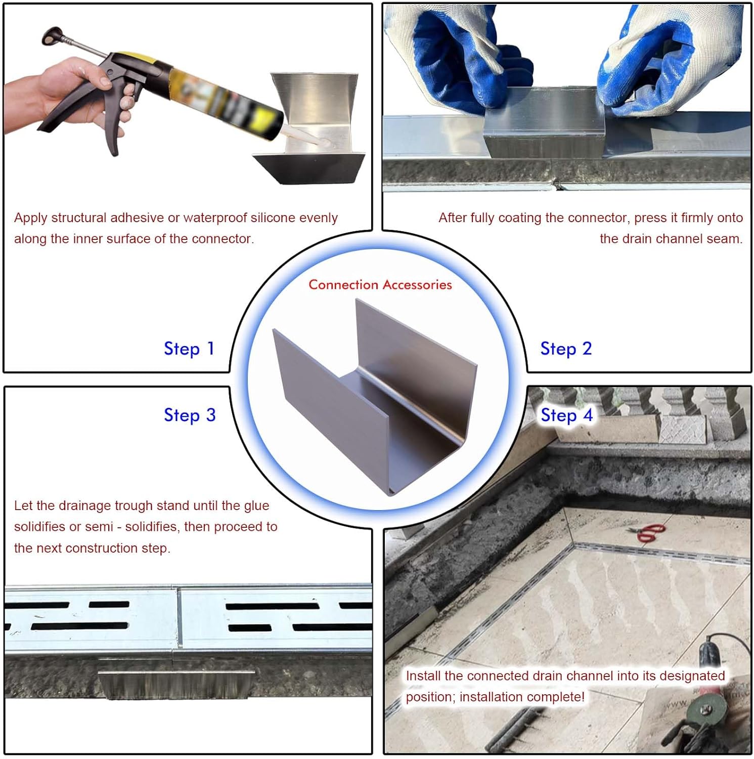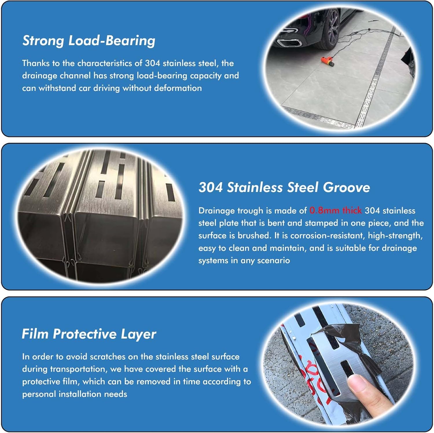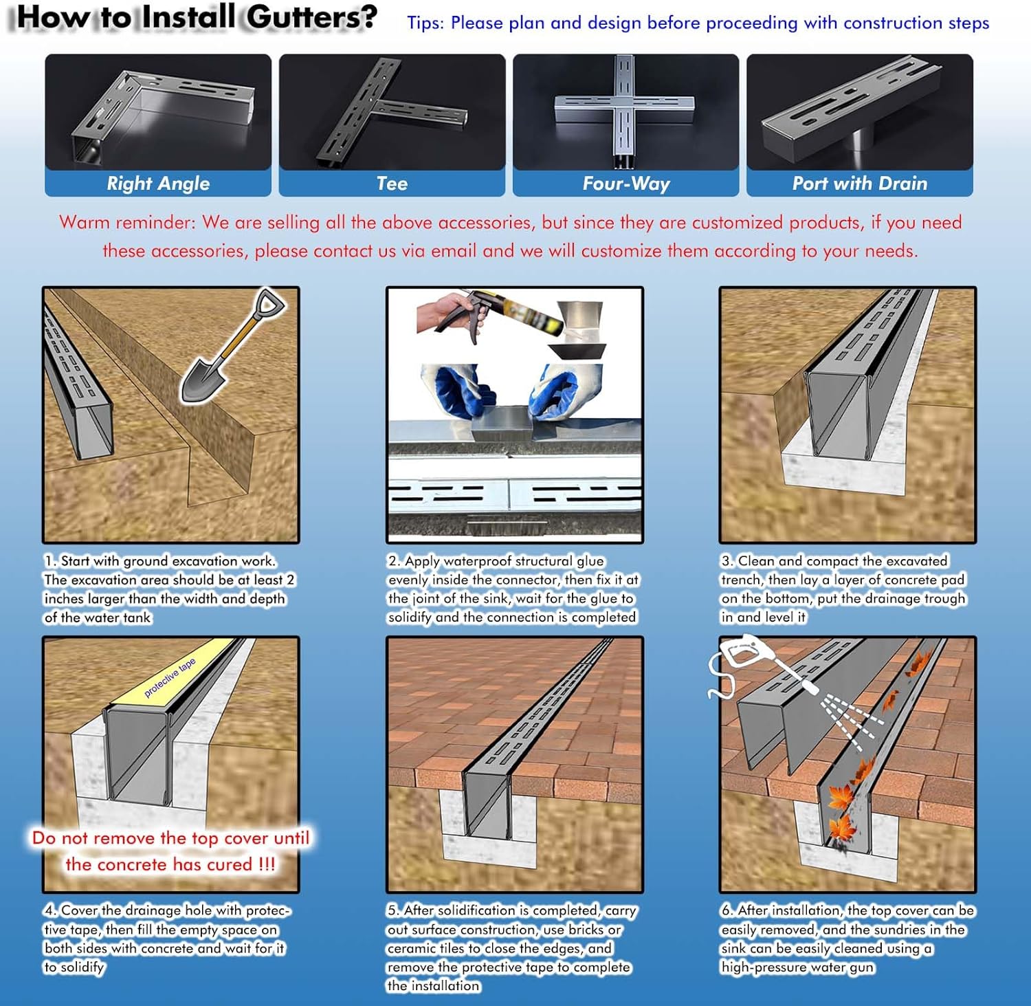 Pool Deck Drain 1.25-Inch Wide X 19.6-Feet Long,Silver Outdoor Deck Drainage System 304 Stainless Steel with Coupling,Channel Drain for Concrete/Paver/Patios/Walkways