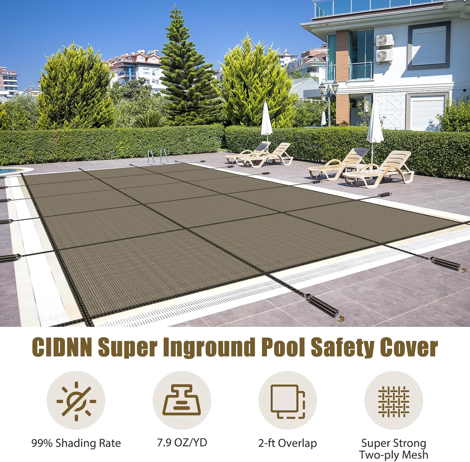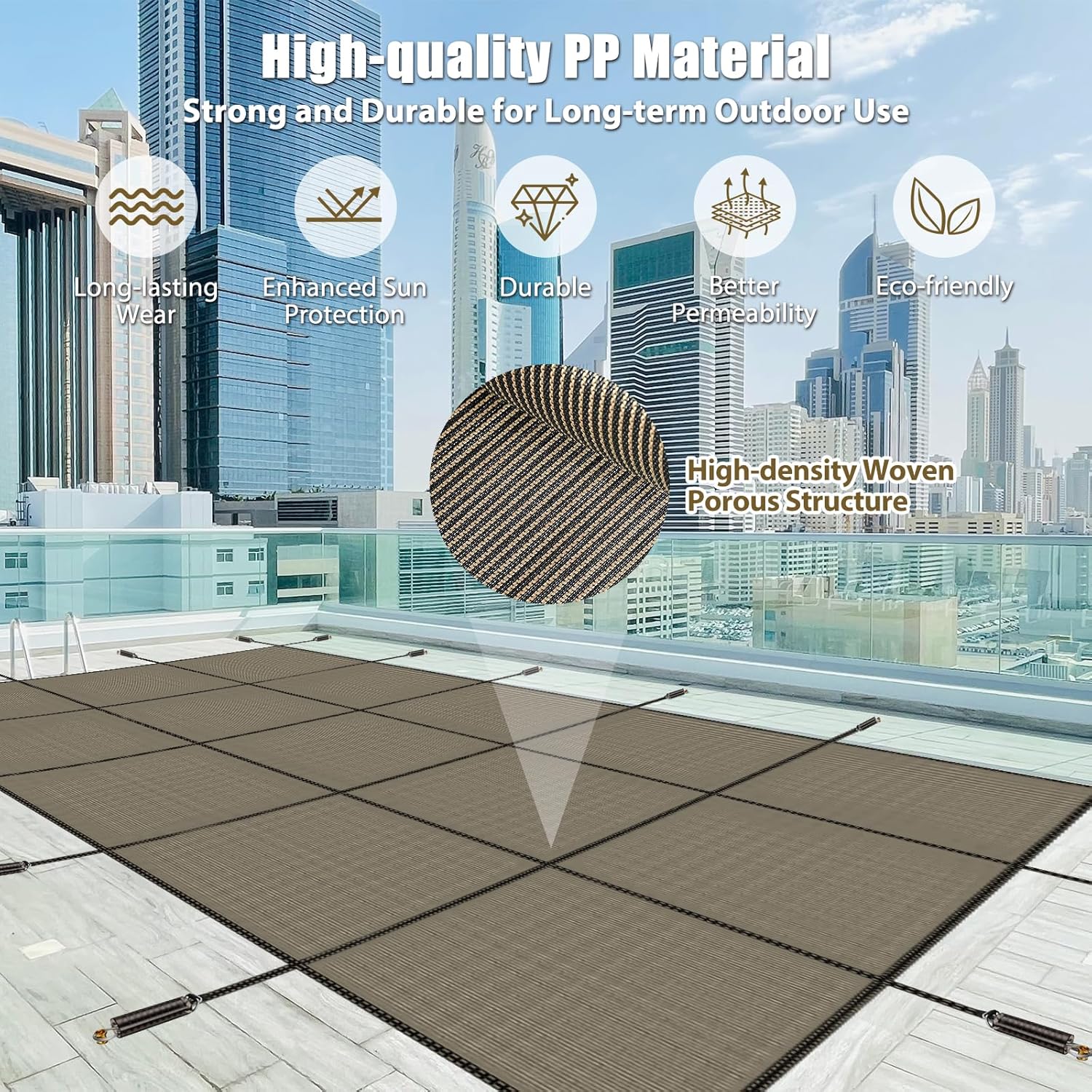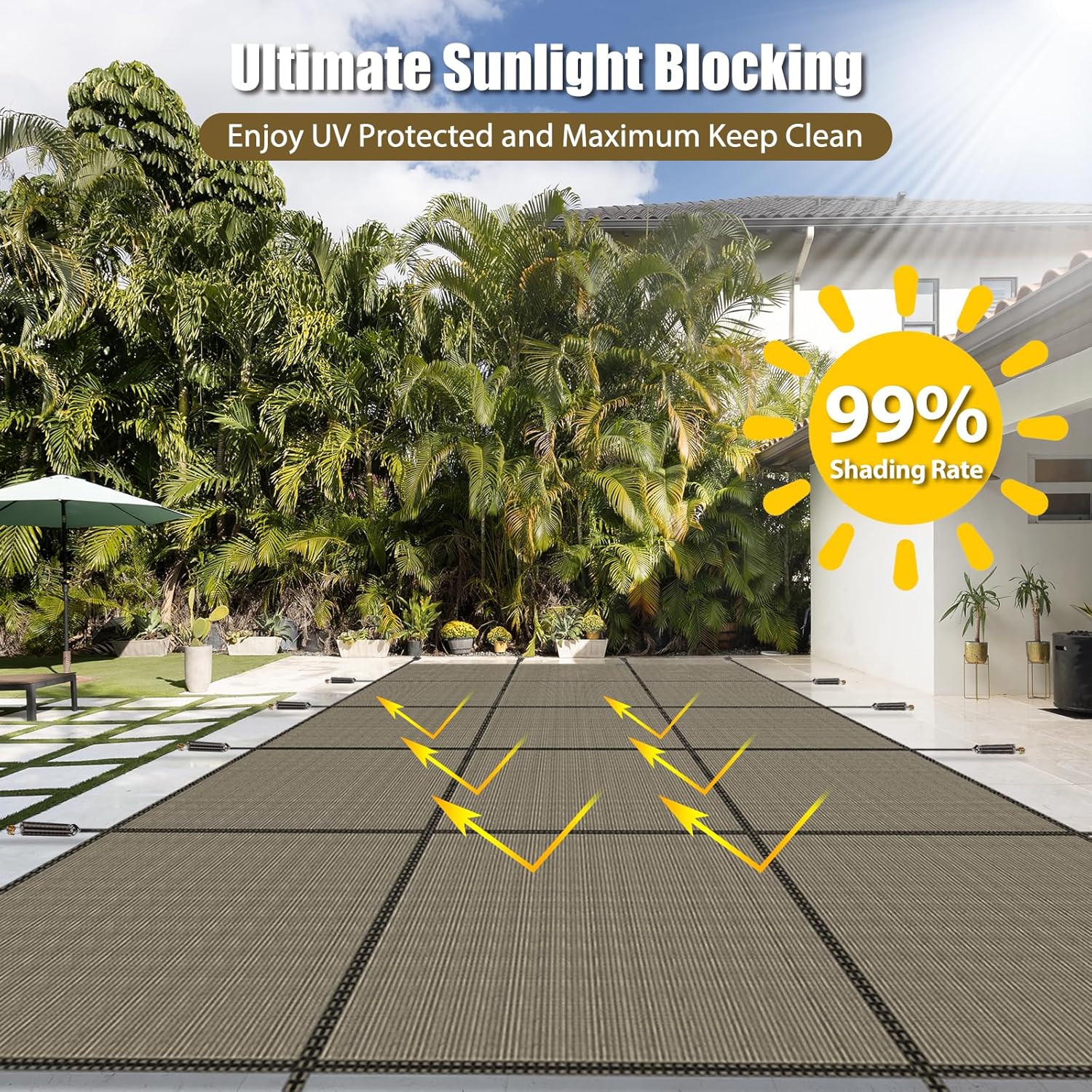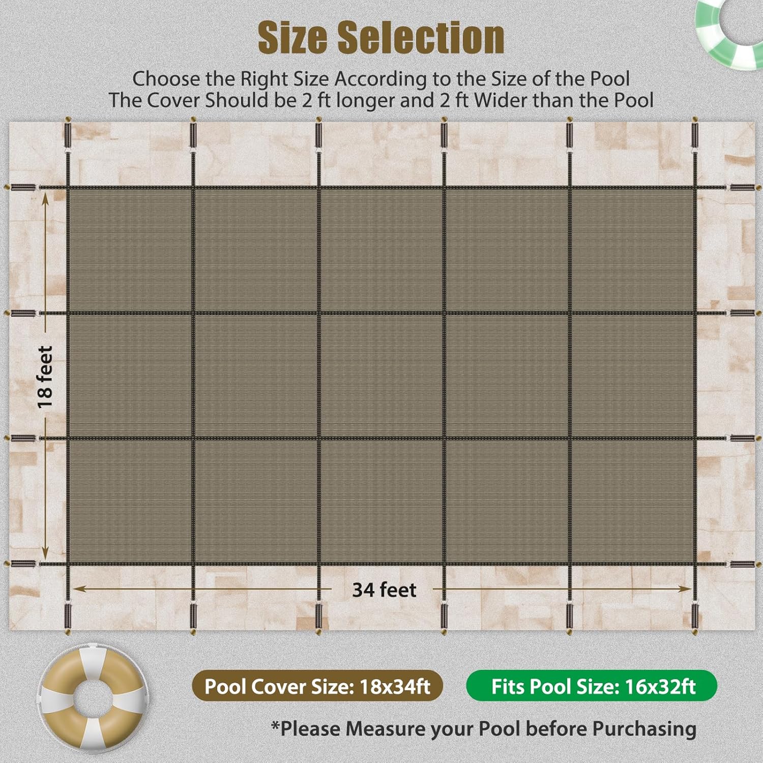 Superior 99% Shading Rate Inground Pool Safety Cover,Fits 16x32ft Rectangle Swimming Pool,Mesh Pool Cover for Inground Pools,Winter Inground Pool Cover with Safety Net and Installation Tools - Tan