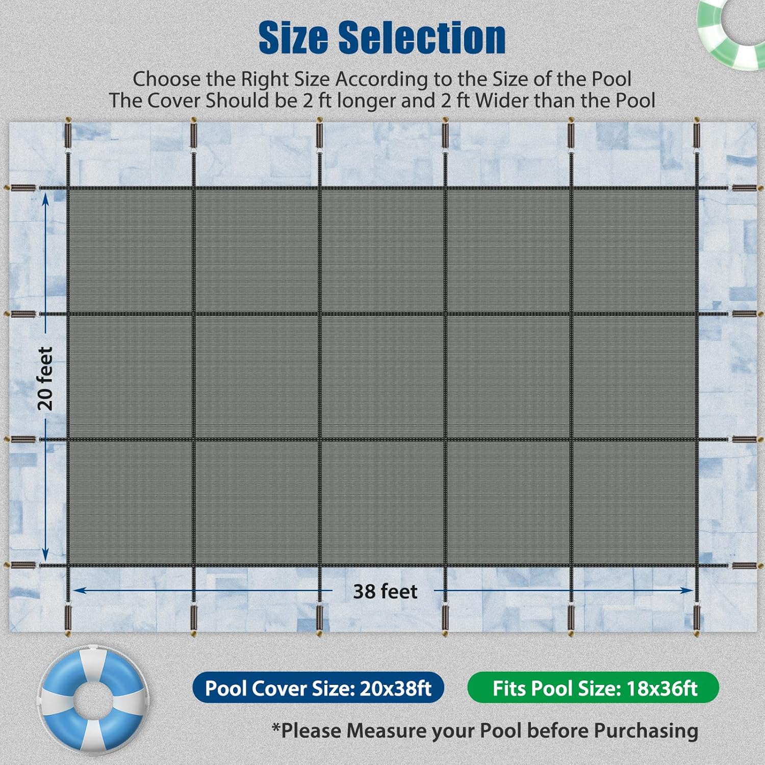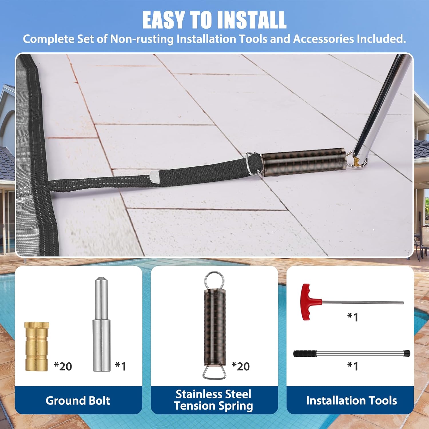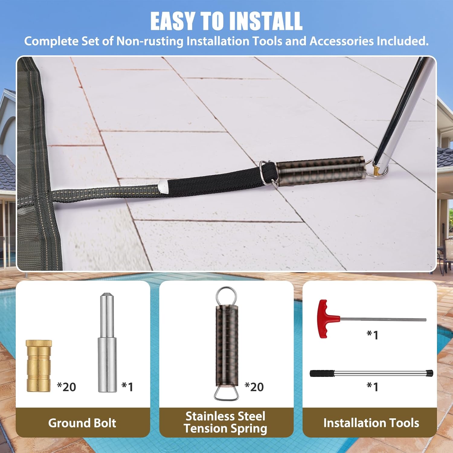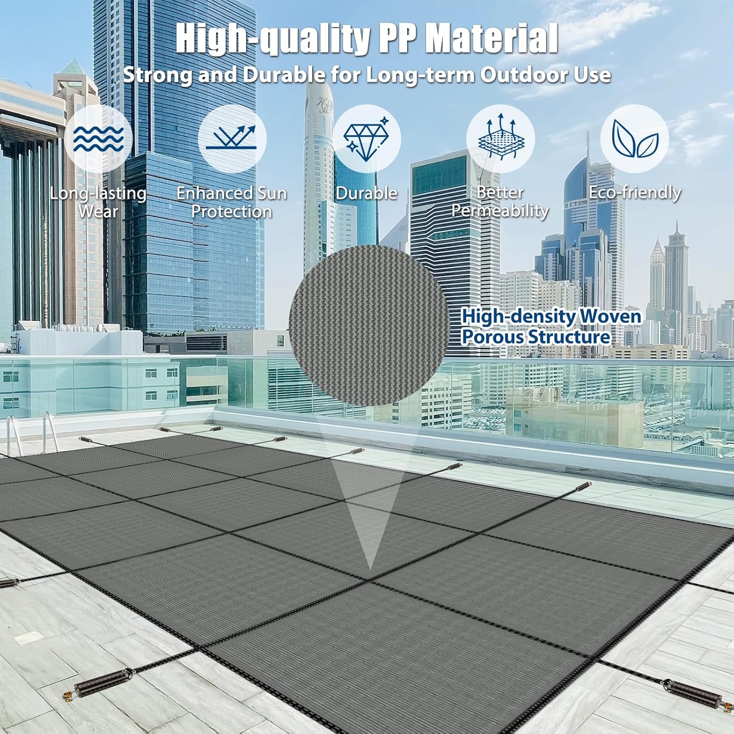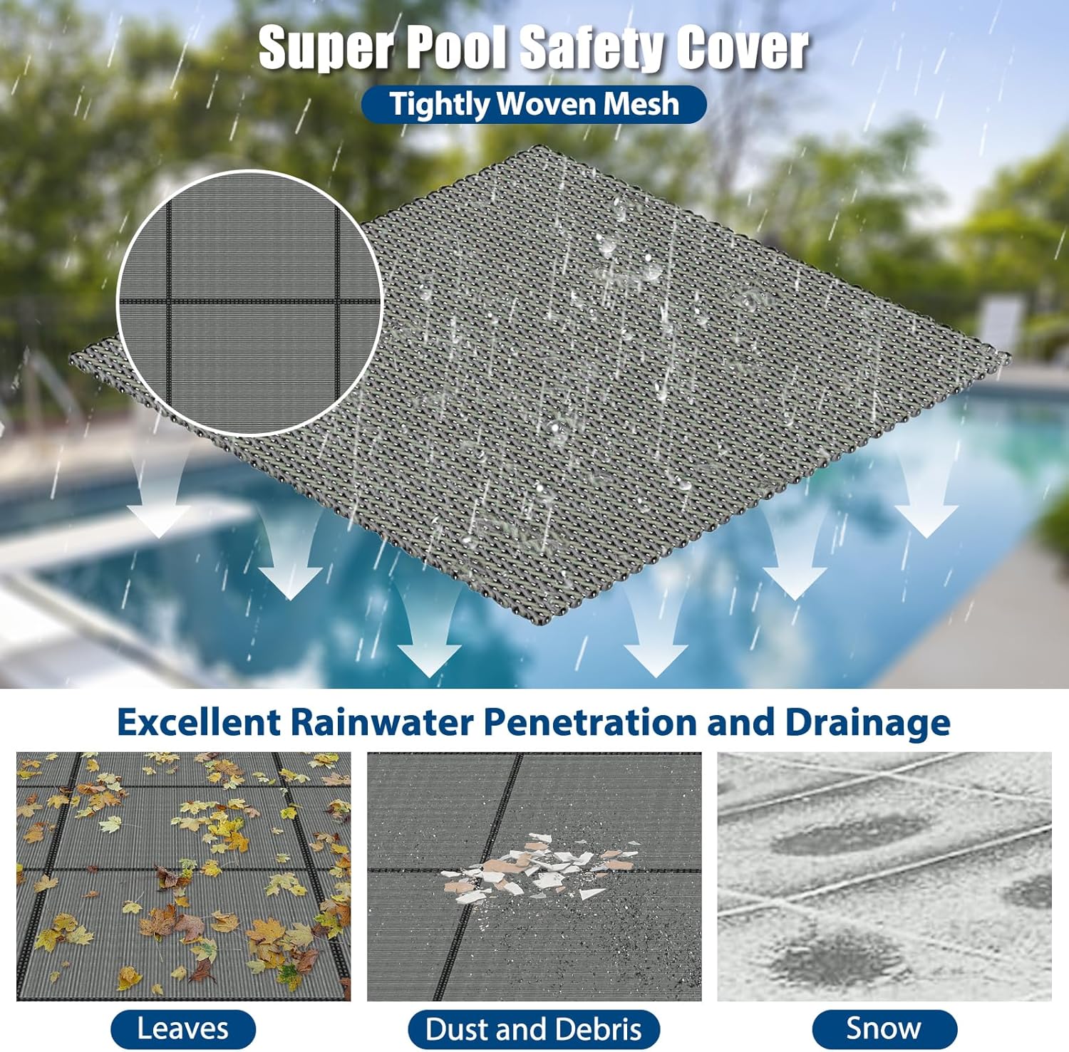 Superior 99% Shading Rate Inground Pool Safety Cover,Fits 16x32ft Rectangle Swimming Pool,Mesh Pool Cover for Inground Pools,Winter Inground Pool Cover with Safety Net and Installation Tools - Tan