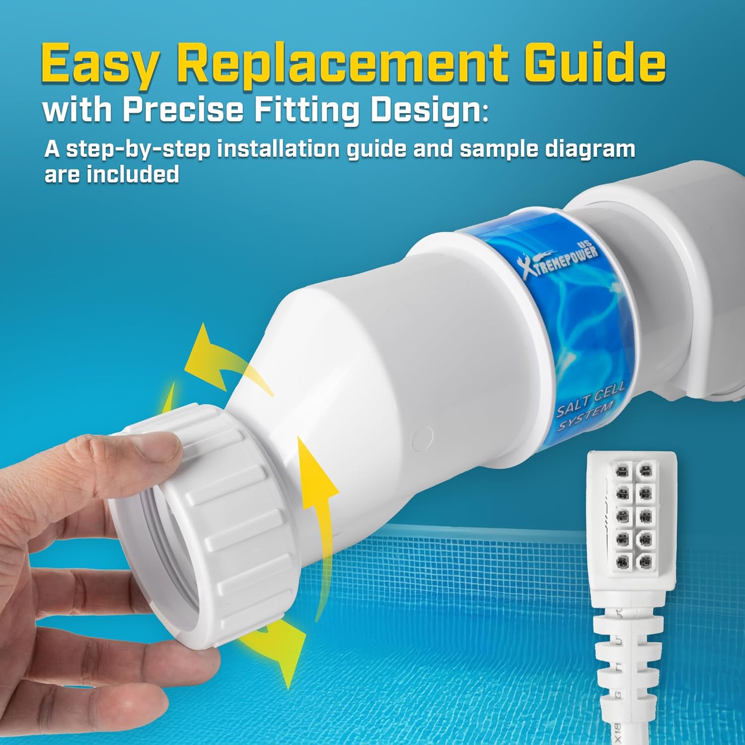 XtremepowerUS Salt Cell up to 40,000 Gallons Salt Generator Chlorinator Pools Temp. Sensor Compatible with Hayward W3AQR3, BLH20-AY, Cleaning Stand