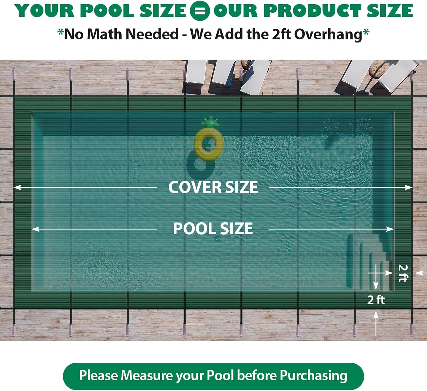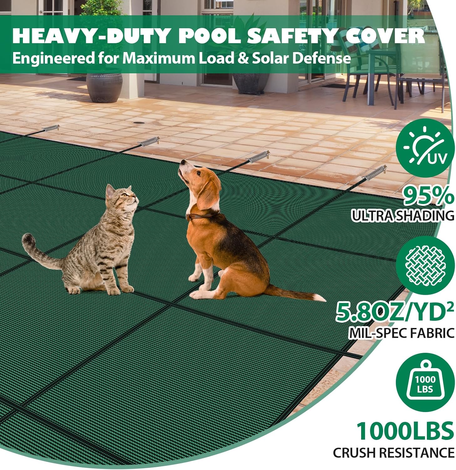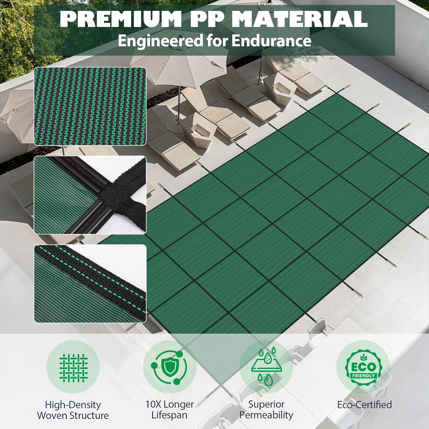 Pool Safety Cover for Inground Pools, Heavy-Duty Winter Pool Cover, Rectangle Mesh/Solid Swimming Pool Covers, Triple Stitched for High Strength & UV Protection,Green