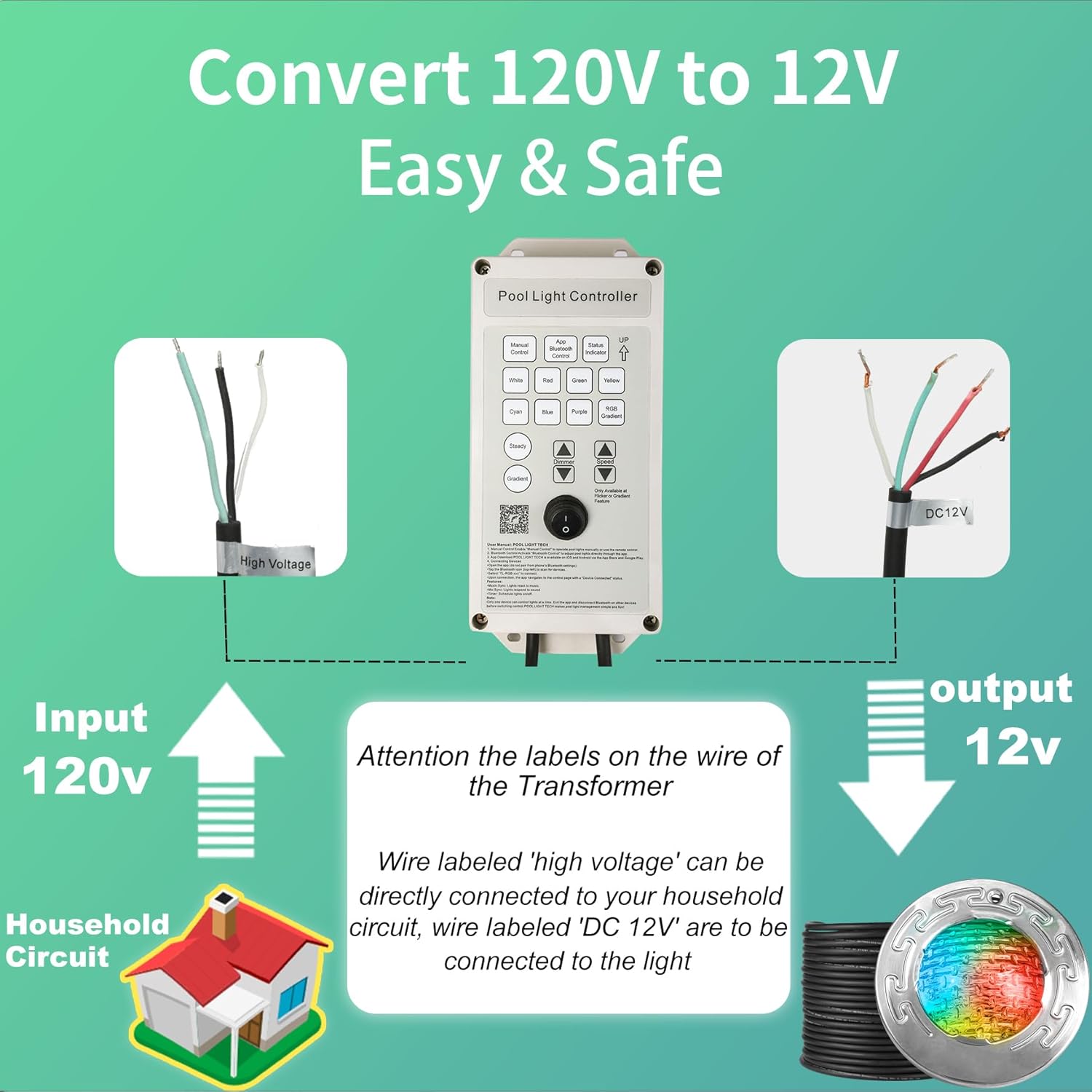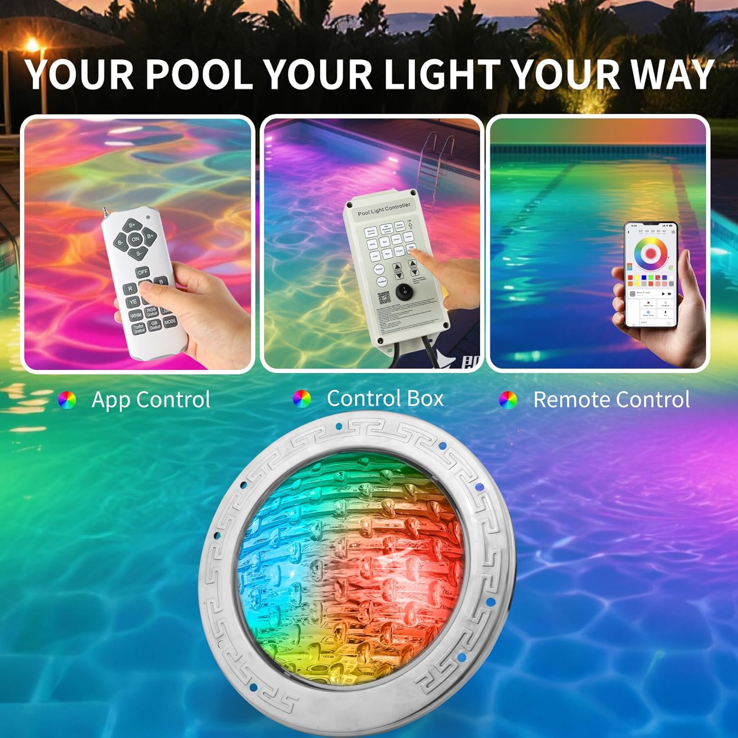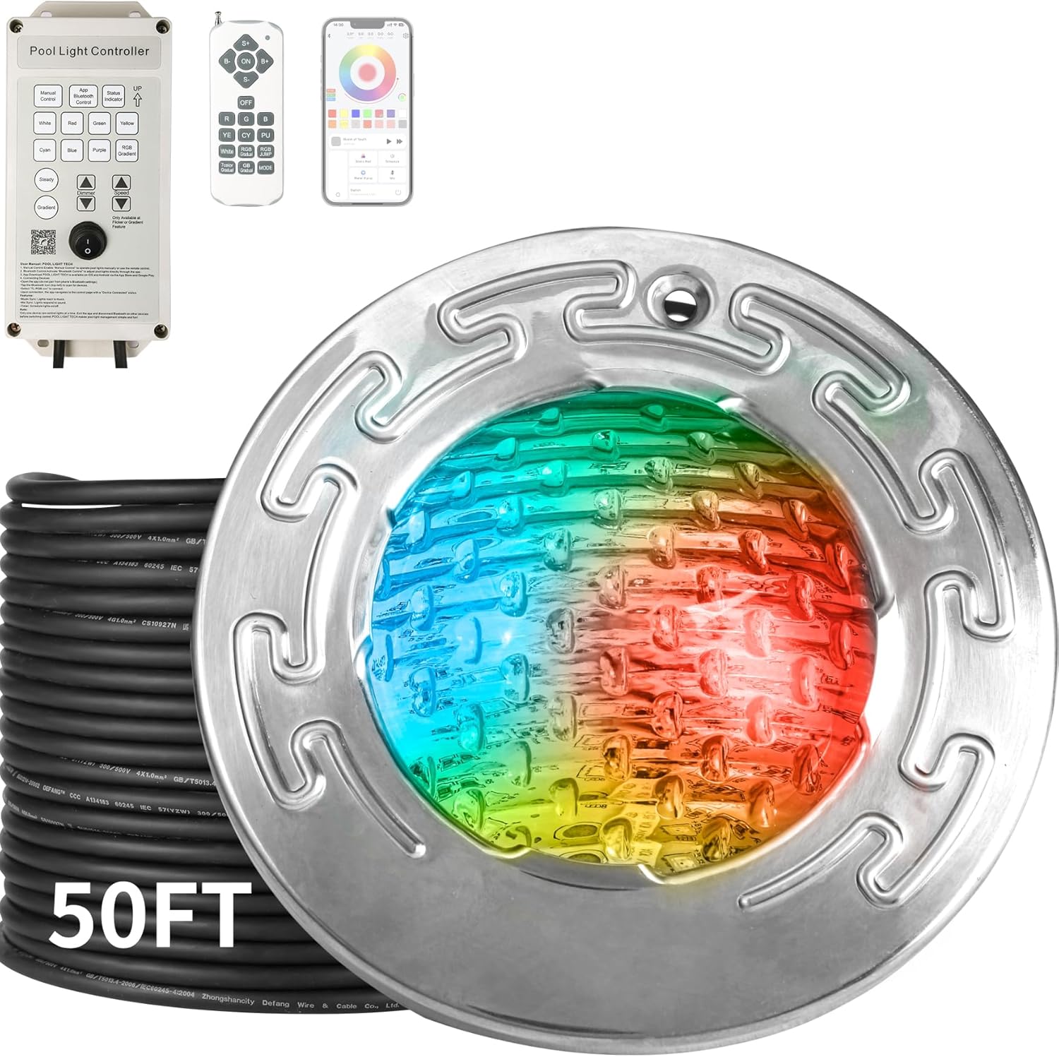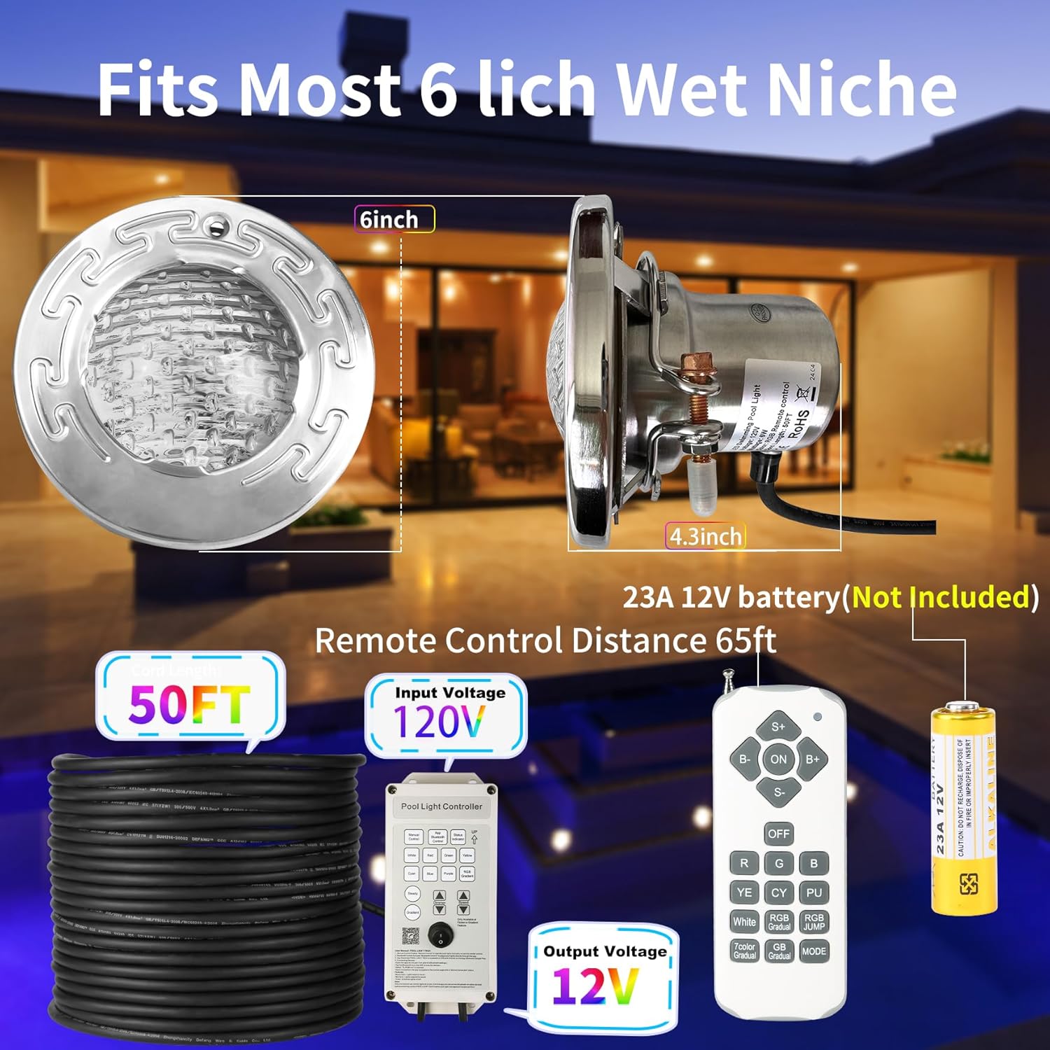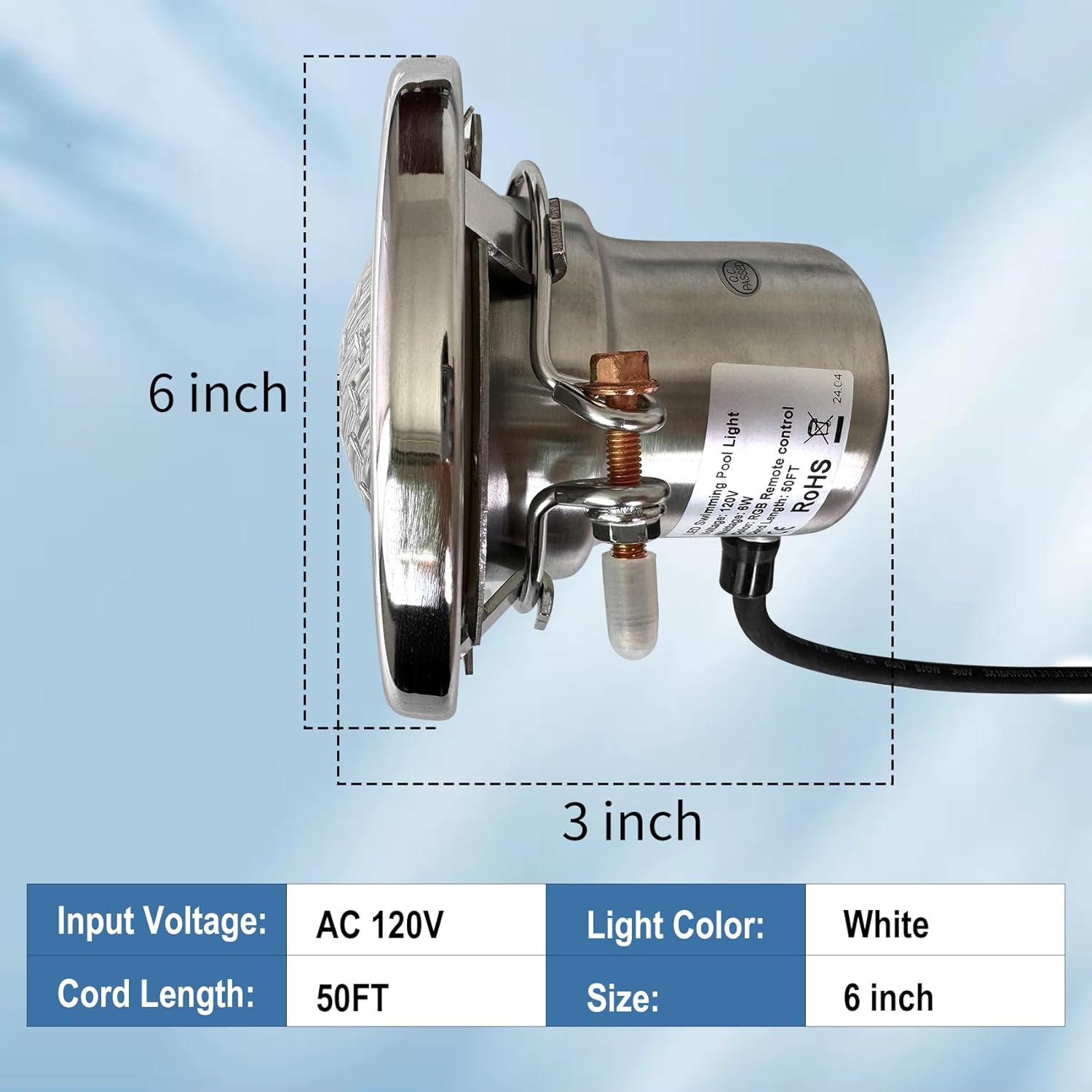 6 Inch Led Pool Lights for Inground Pool, Swimming Pool Spa Light, Suitable for Most 6 Inch Wet Niche, Ac120v to 12V, Ip68 Waterproof, 50ft, 3 Way Control RGB