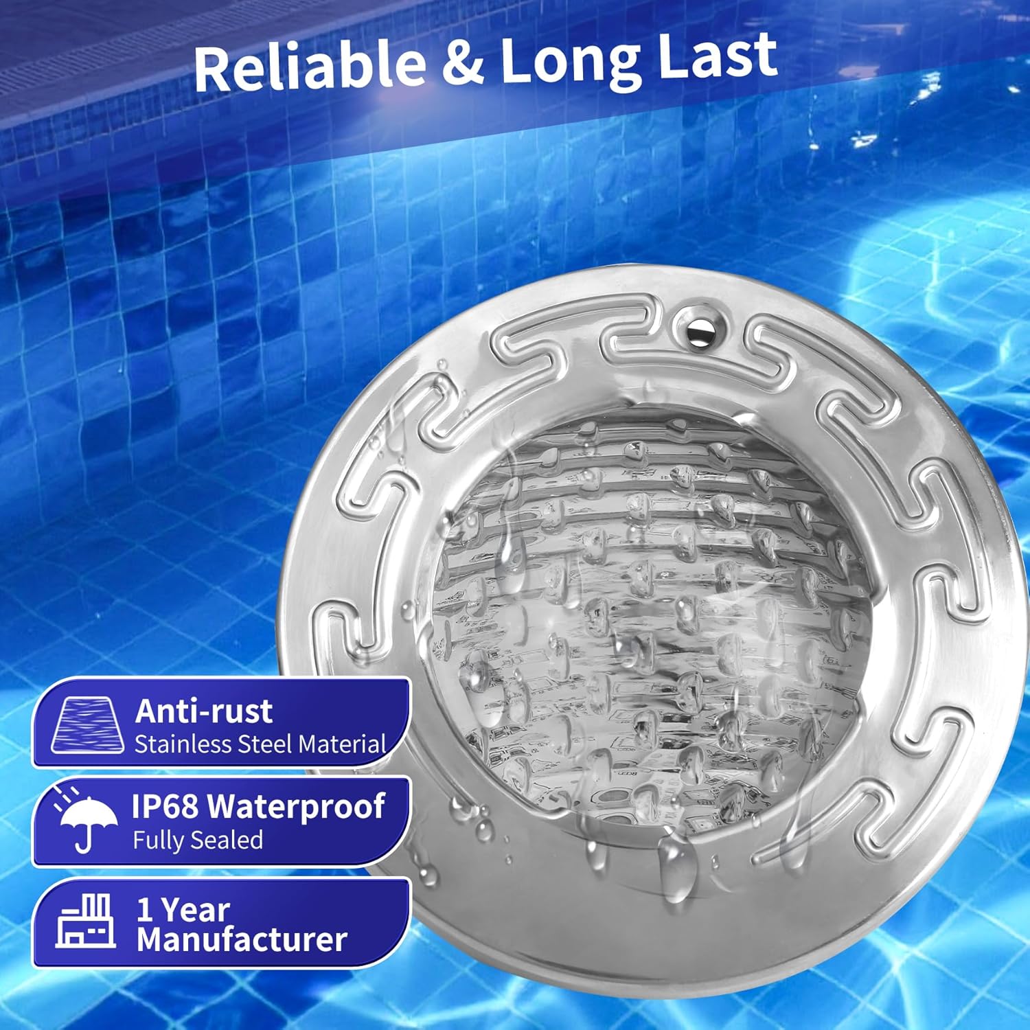 SURAIELEC Pool Lights for Inground Pool, 10 Inch 120V LED Underwater Light, 35W (300W Equivalent), 4000LM, Cool White 6000K, Fits 10" Large Wet Niches, Stainless Steel Housing, 100FT Cord