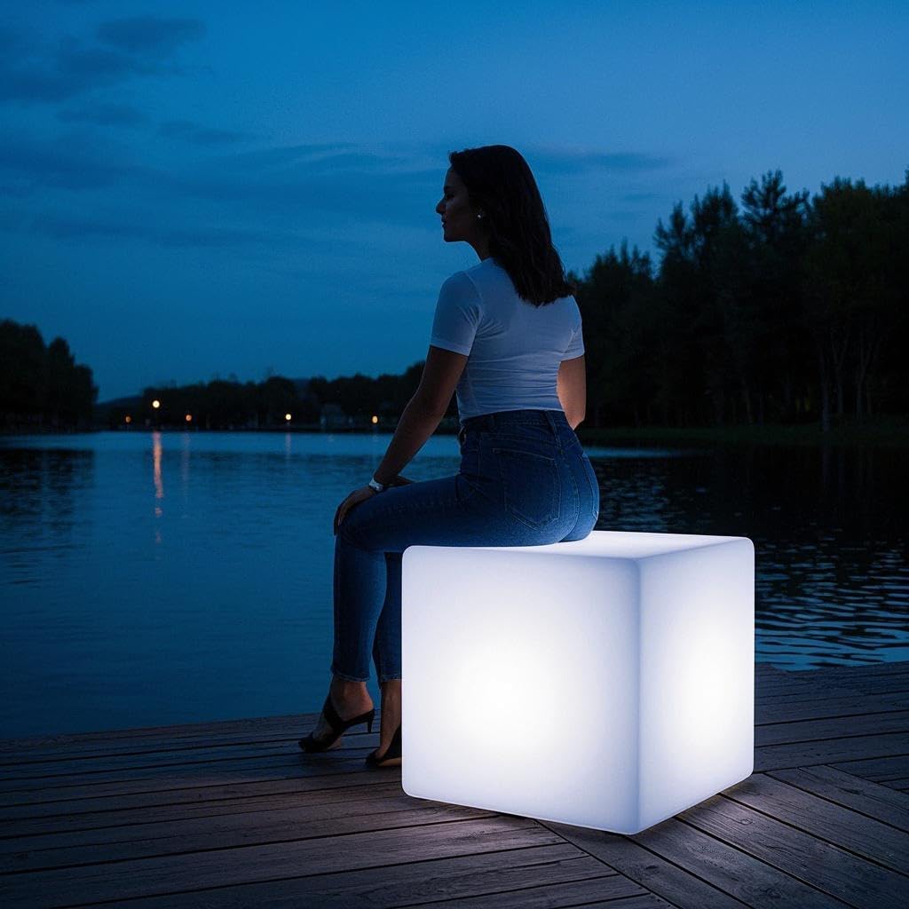 Mr.Go 20-inch LED Lighted Cube Table, Large LED Cube Chair Light, 16 RGB Colors Glowing Cube Seat w/Remote - Rechargeable - Waterproof - Home Outdoor Patio Pool Bar Stage Party Lighting Decoration