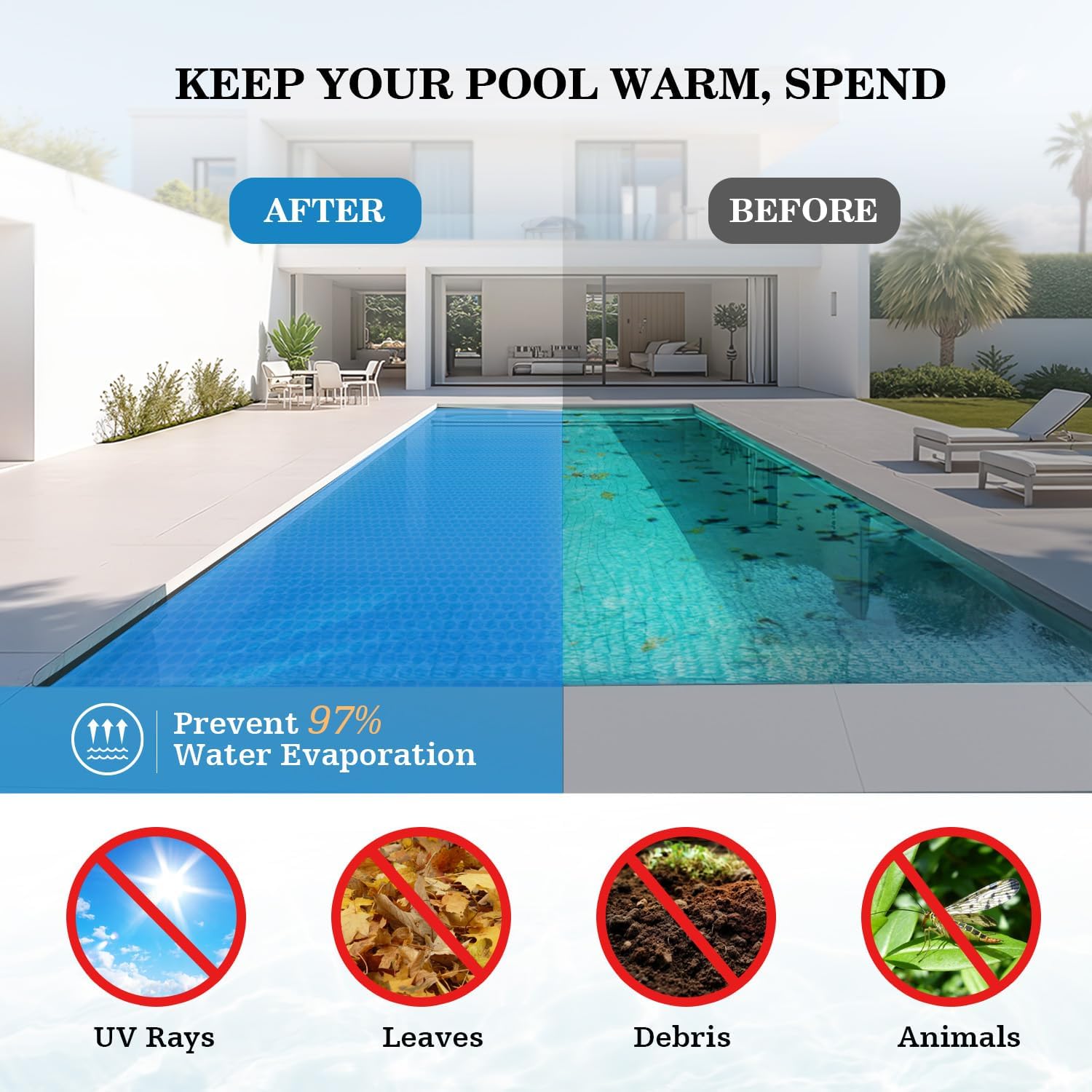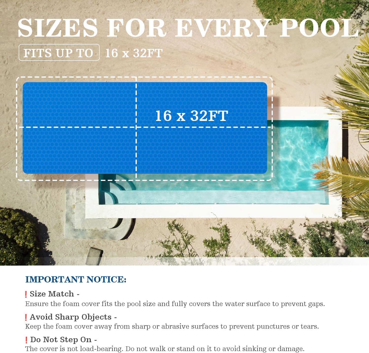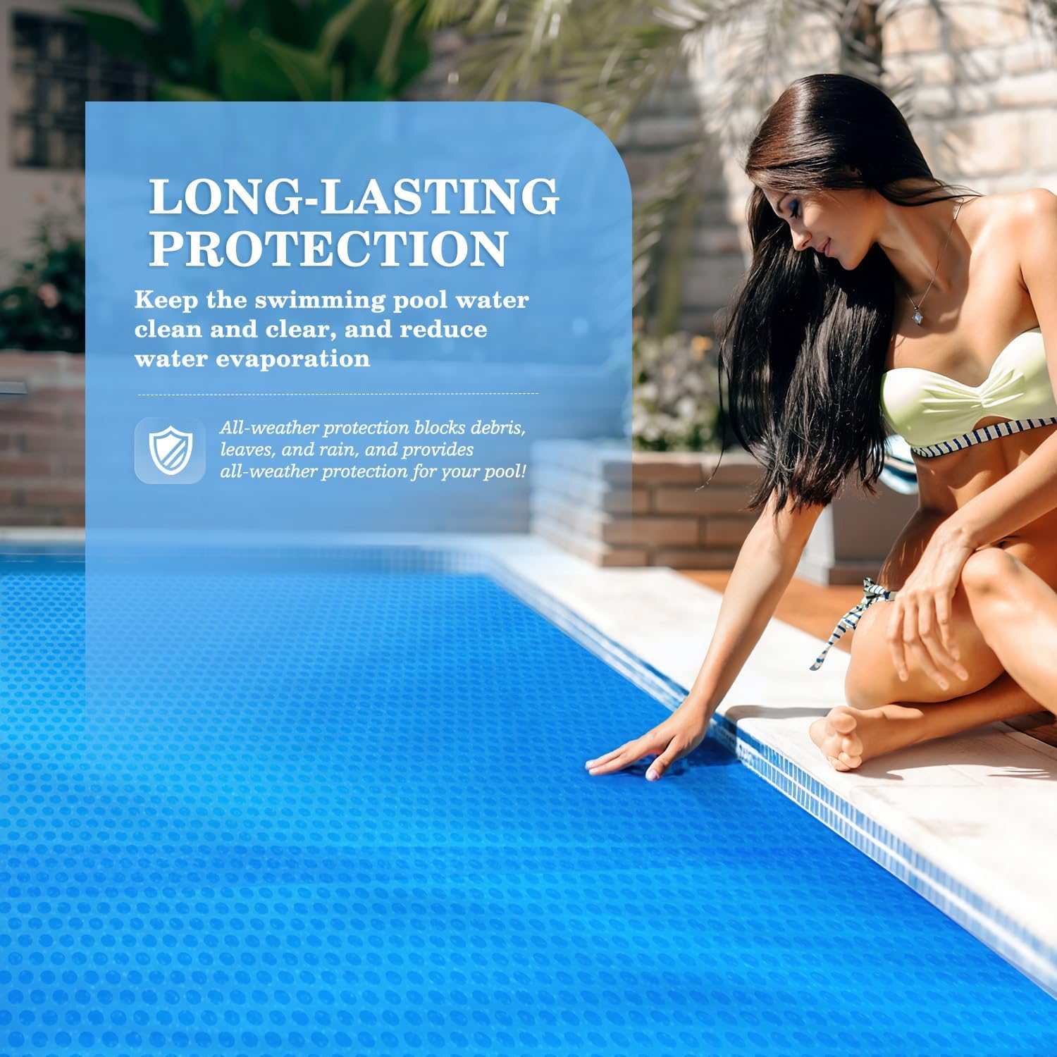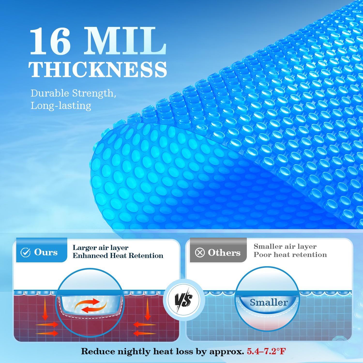 UIRWAY 16 Mil Premium Solar Pool Cover – 16 x 32 ft Blue Bubble Solar Blanket for Inground and Above Ground Pools – Ultra Thick, Long-Lasting, High Heat Retention, Customizable Fit