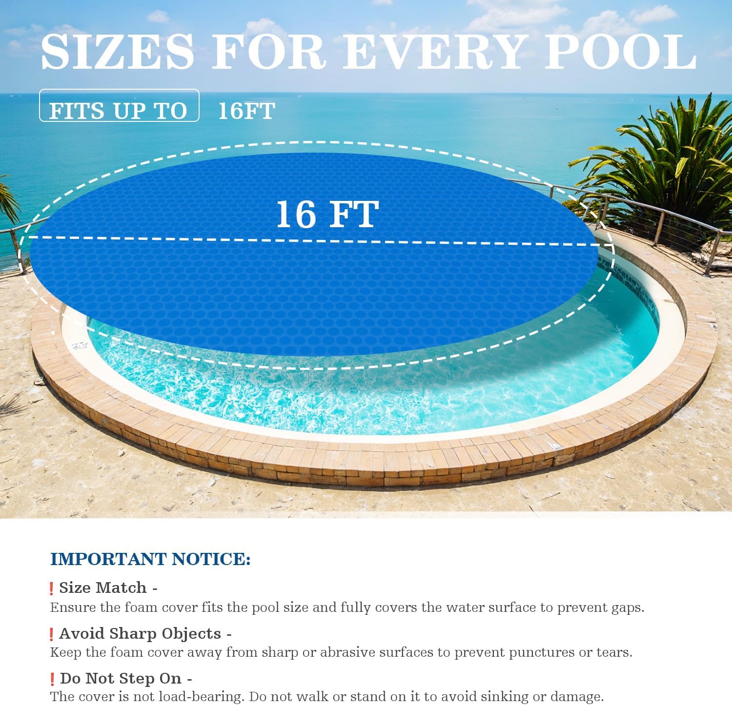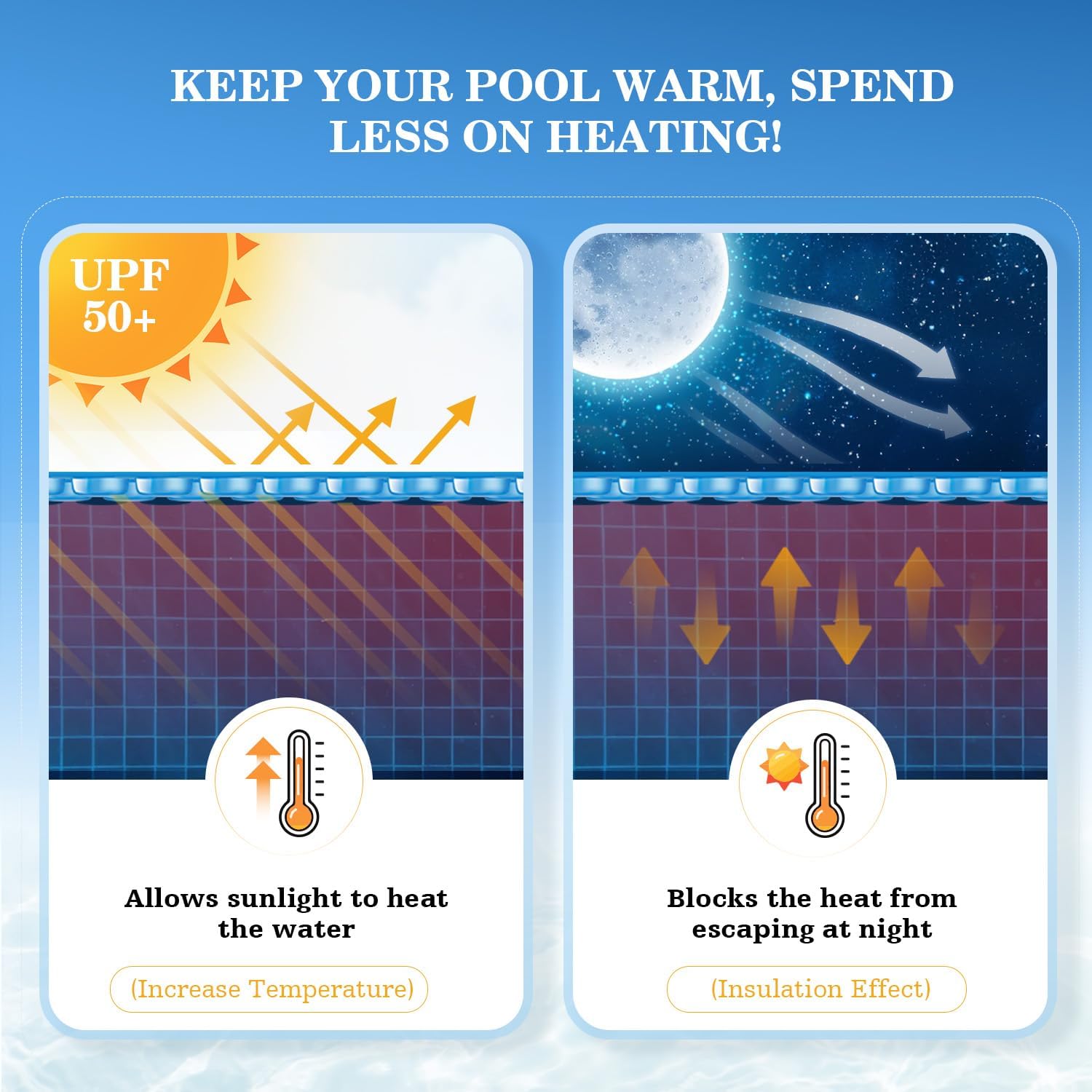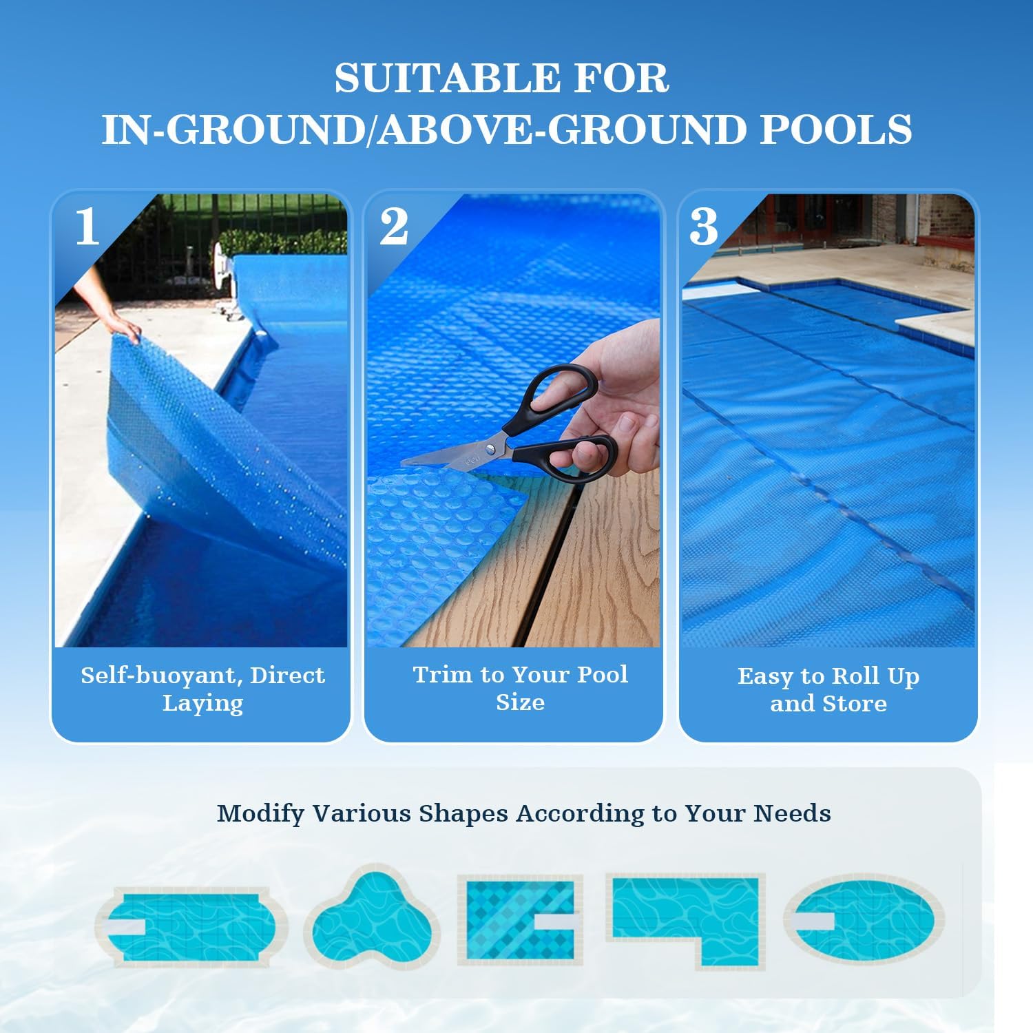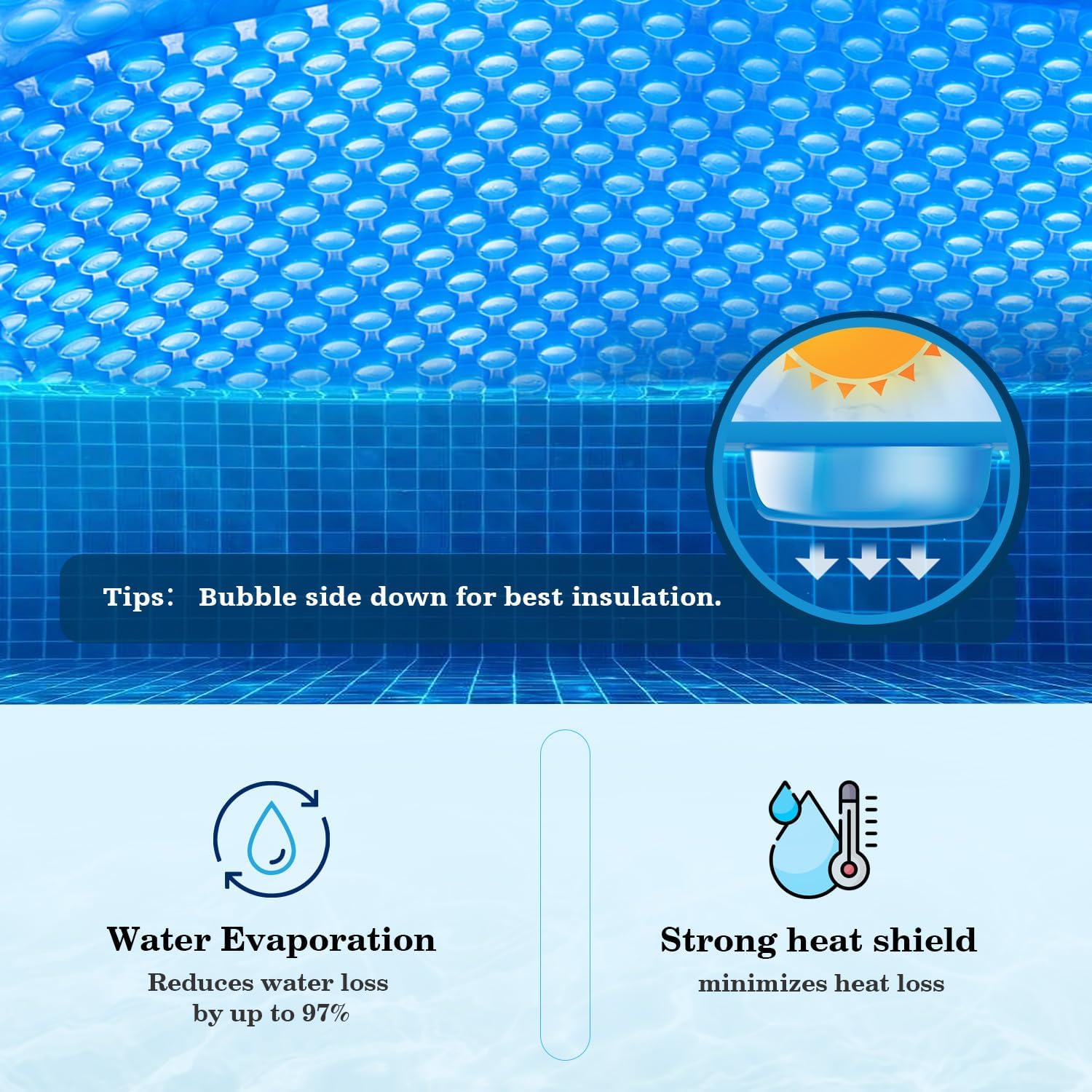 UIRWAY 16 Mil Premium Solar Pool Cover – 16 x 32 ft Blue Bubble Solar Blanket for Inground and Above Ground Pools – Ultra Thick, Long-Lasting, High Heat Retention, Customizable Fit