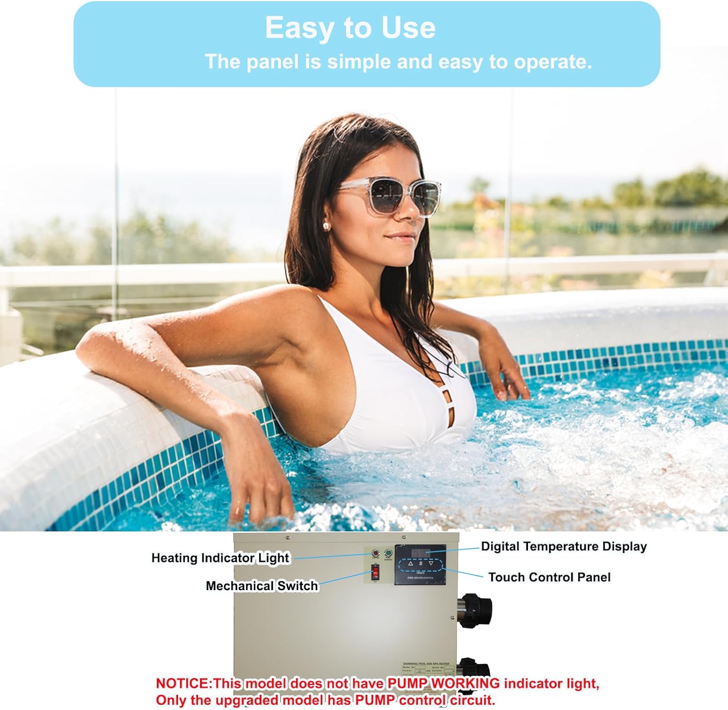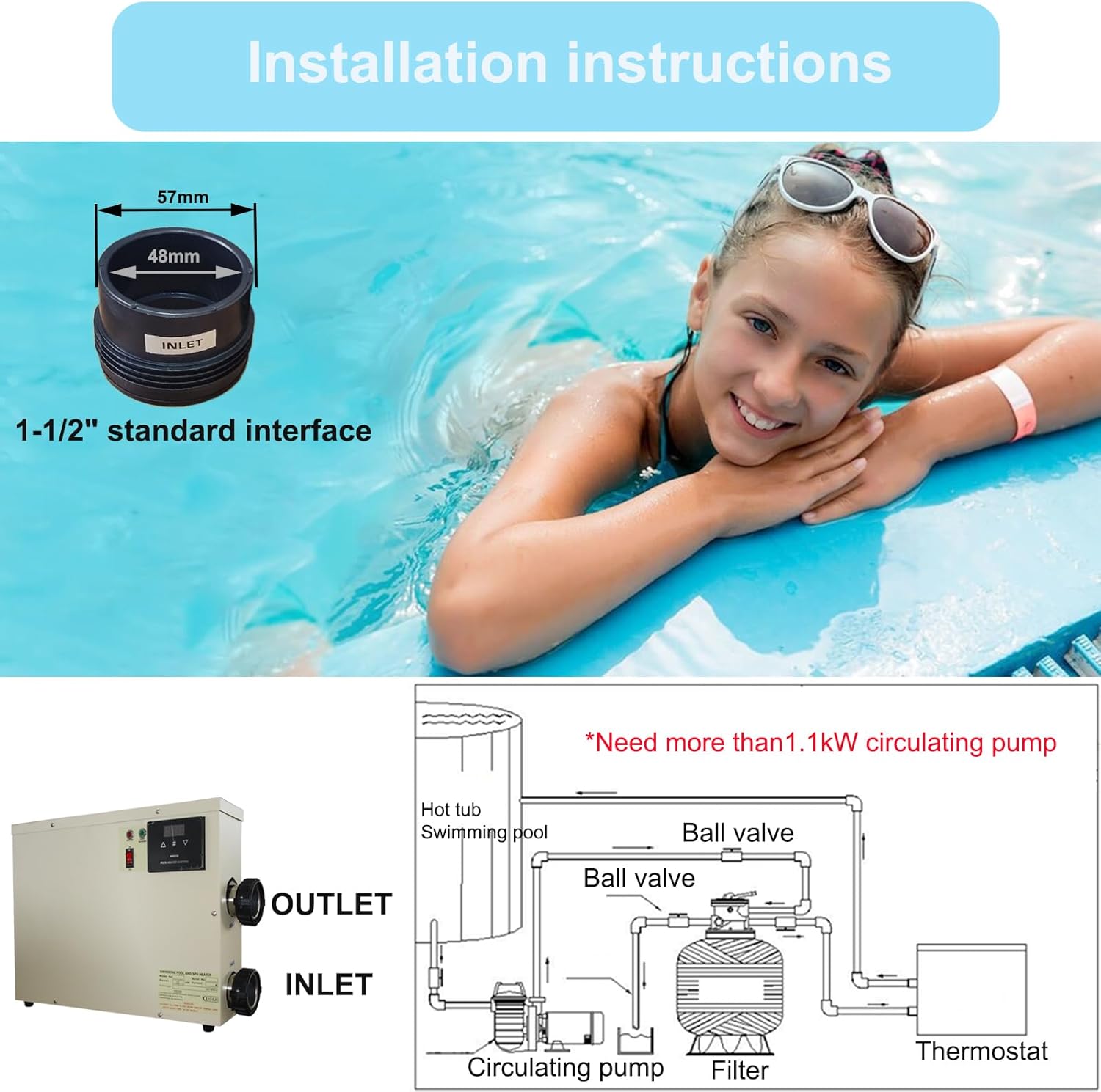ECO POOLTECH EU50 Electric Pool Heater for Above Ground Pools Up to 5000gallons, Max16184BTU Swimming Pool Heat Pumps, 110V-120V/60Hz Plug-in Pool Warmer, High Efficiency