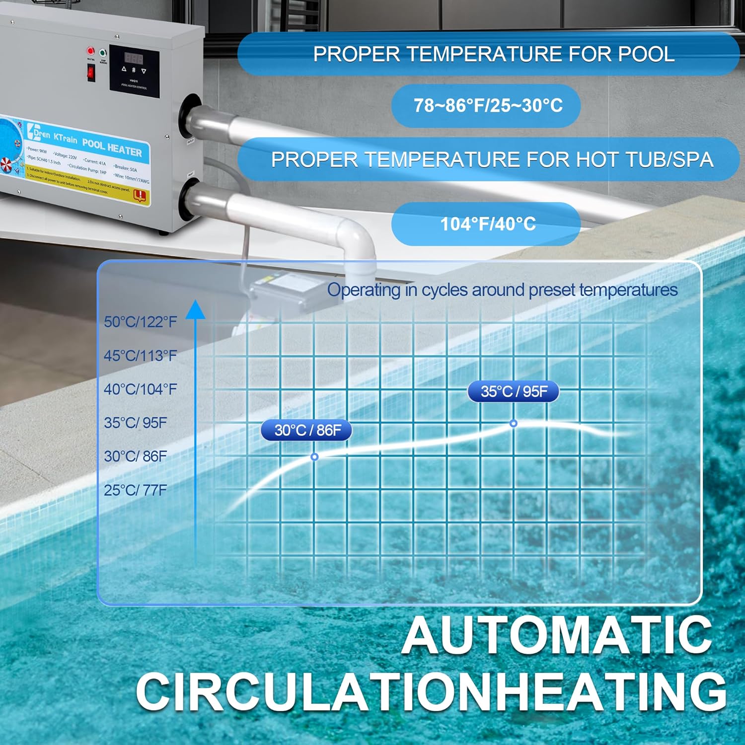 Pool Heater 15KW 220V, Upgrade Electric Swimming Pool Heaters Hot Tub Water Thermostat with Touchscreeen for Above Ground Inground Pool, Spa, Bathtub (15KW)