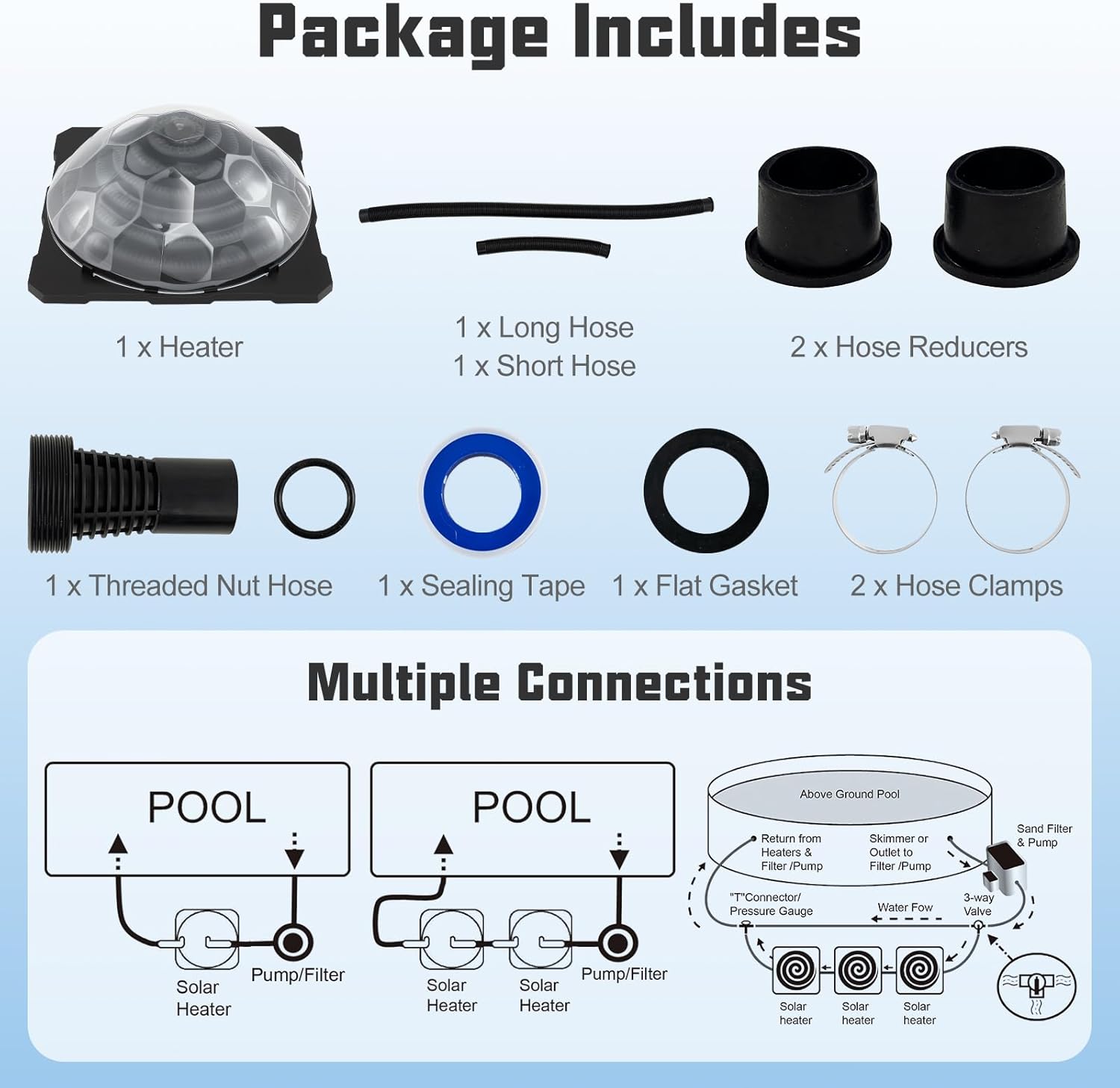 Curve Solar Pool Heater, Made for Above-Ground and Inground Pools, Includes 2 Adapters, 2 Hoses & Clamps