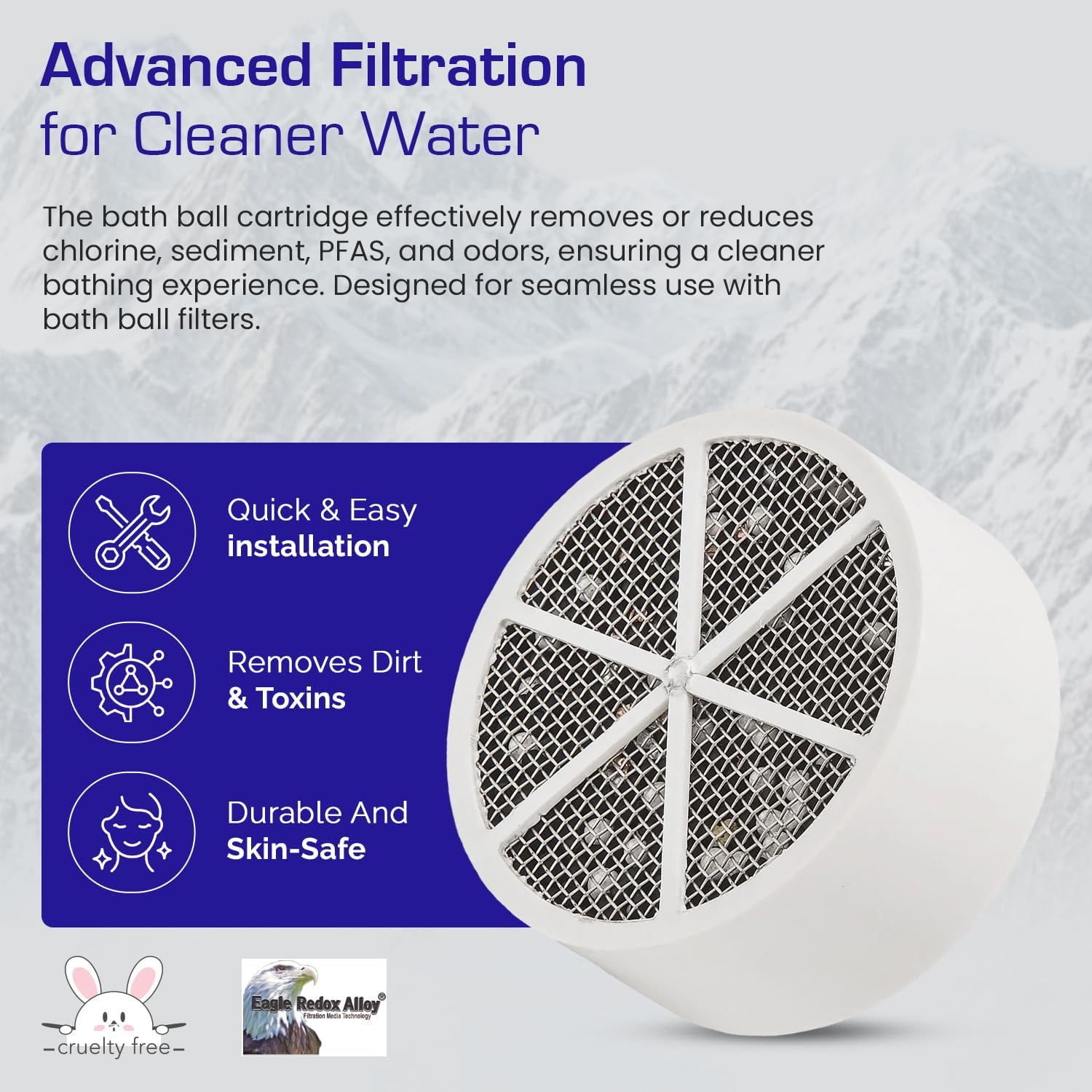 Crystal Quest Bath Ball Replacement Cartridge – Removes Chlorine, PFAS & Odors – Easy-to-Install Water Filter – Eco-Friendly, Durable & Skin-Safe – Built in the USA [6 Pack]