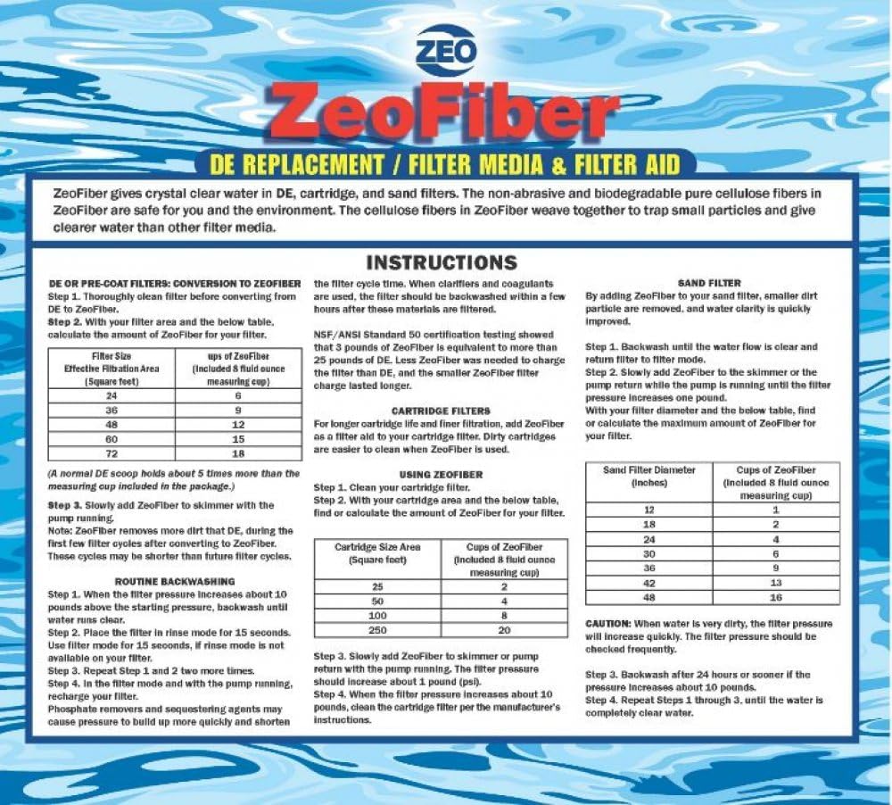 ZeoFiber 60 lb. DE Filter Replacement | Swimming Pool Green Filtration Media | Sand/Cartridge Filter Aid | Diatomaceous Earth (D.E.) Alternative for Swimming Pools | 20 Pack (Total of 60 Pounds)