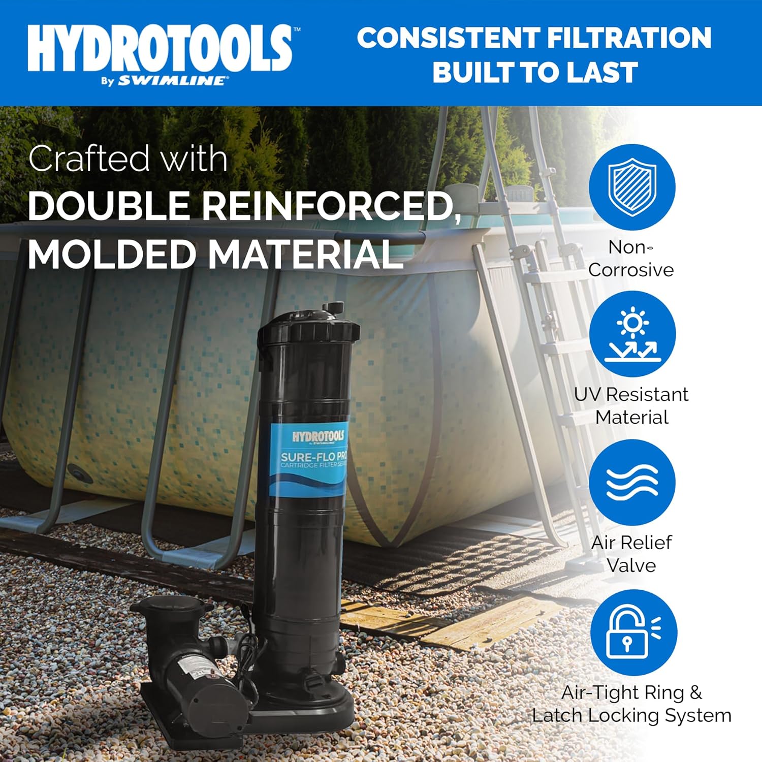 Doheny's Pool Pro | 24" Sand Filter w/Valve | High-Tech Inground Pool Filter for Clear & Fresh Water | 6-Position Dial Valve | Easy Maintenance | for Pools Up to 24,000 Gallons