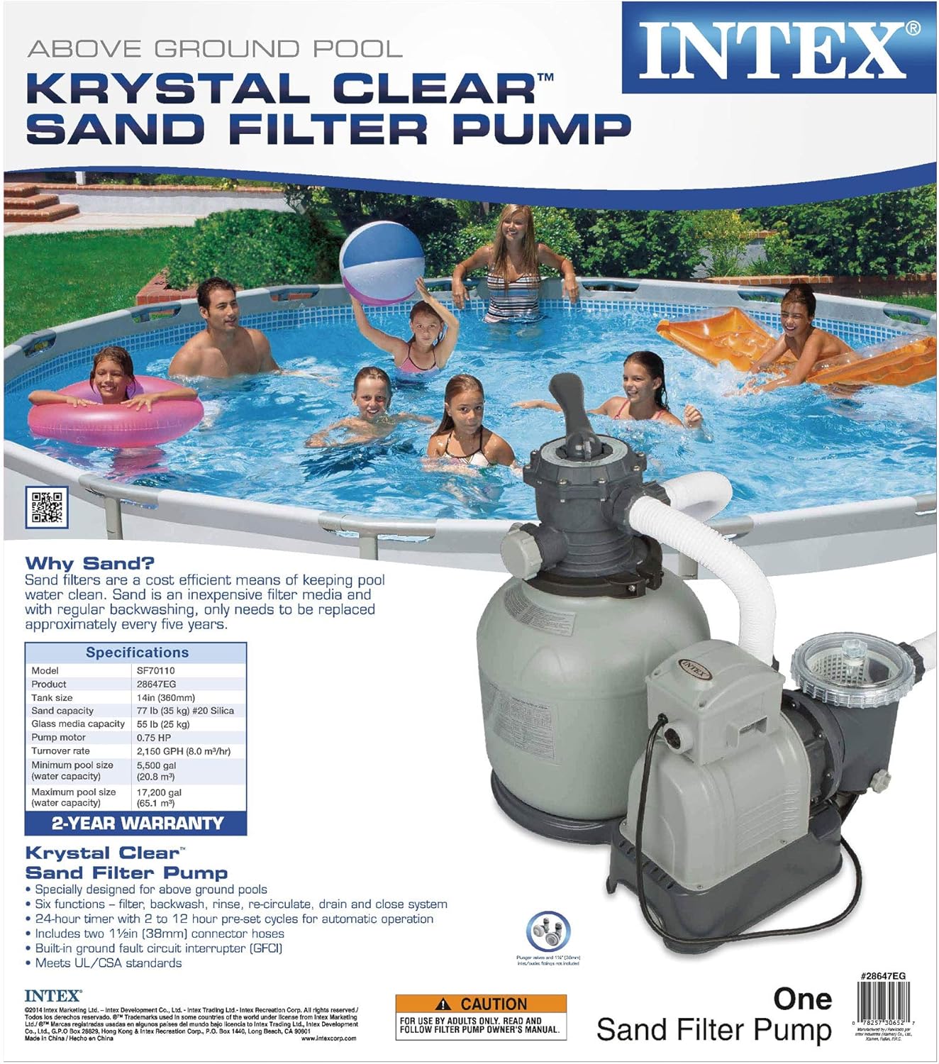 Intex Krystal Clear Sand Filter Pump for Above Ground Pools, 2800 GPH Pump Flow Rate, 110-120V with GFCI