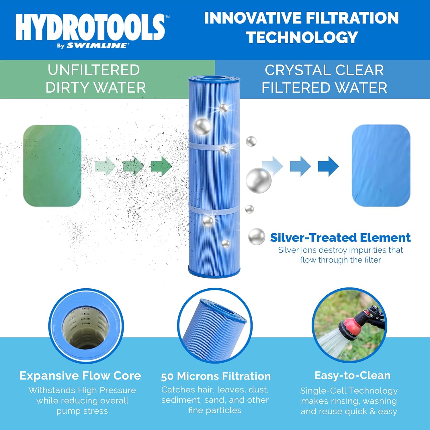 Rx Clear Replacement Pool Filter Cartridges for 425 Square Foot Quad Cartridge Filter System | Pleated Filtration & Support Band Helps Prevent Clogs | Above Ground & Inground Swimming Pools | 4-Pack